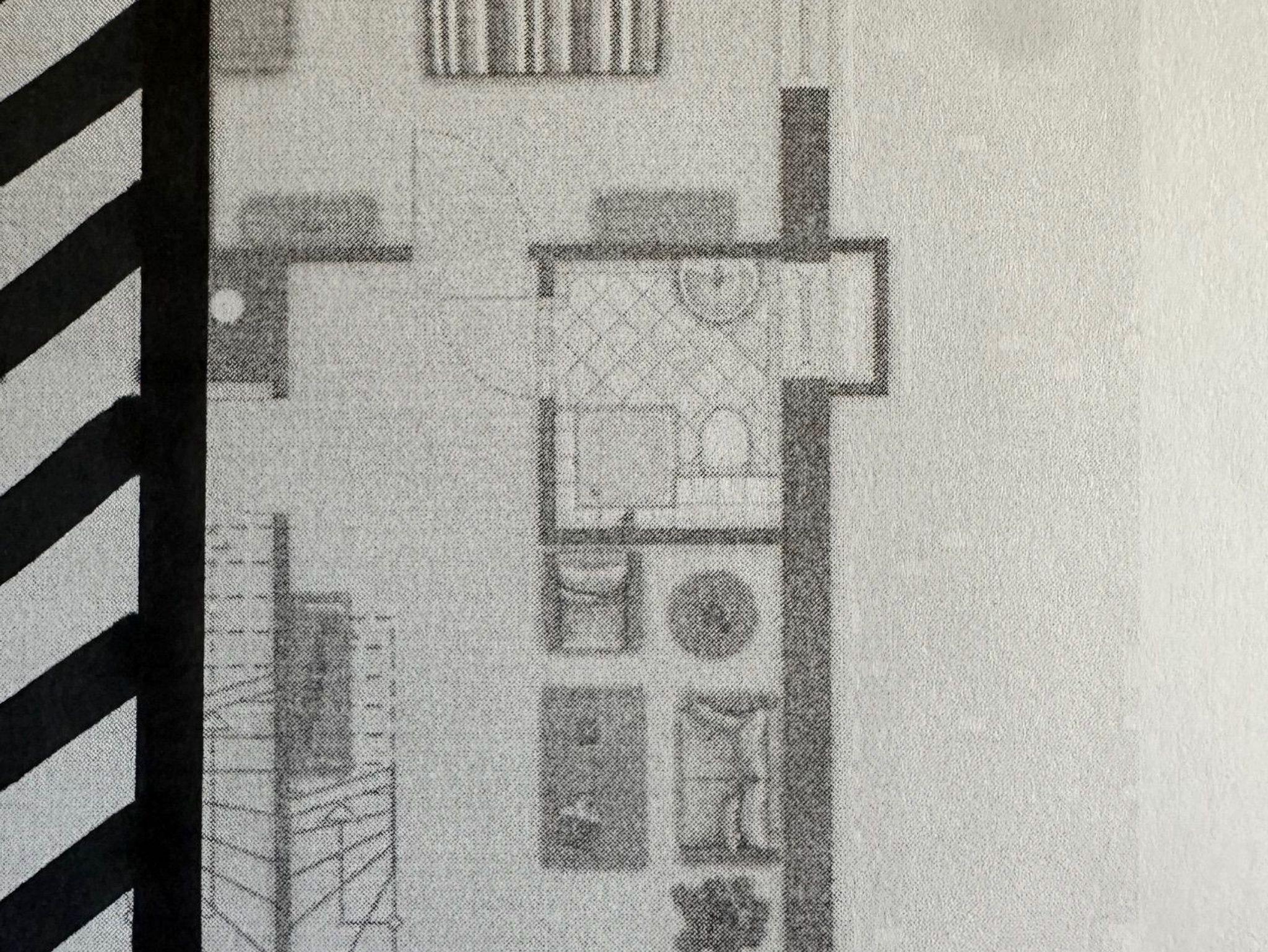 • Das Bad ist mit WC, Waschbecken, Handtuchheizkörper und Dusche ausgestattet.