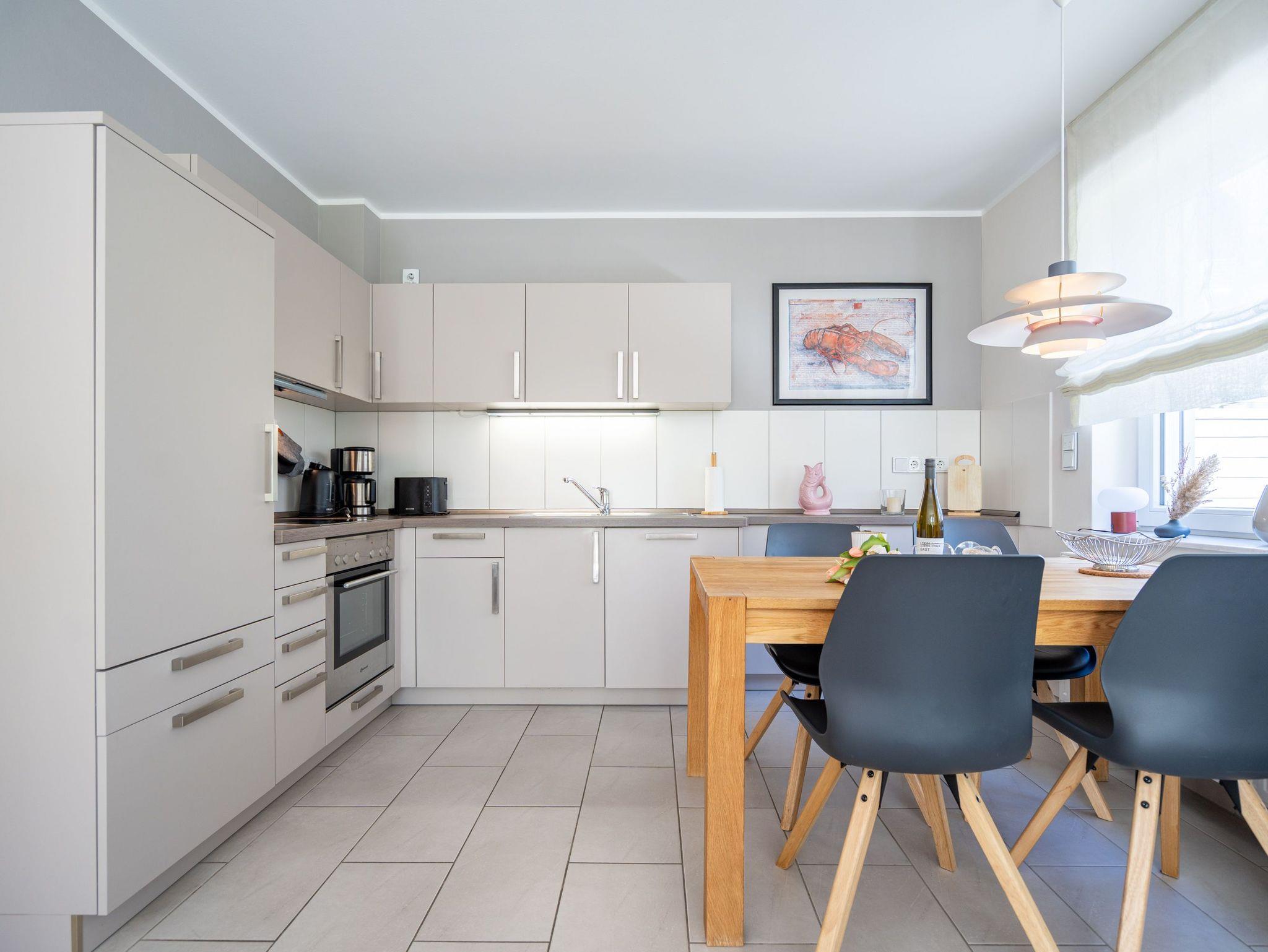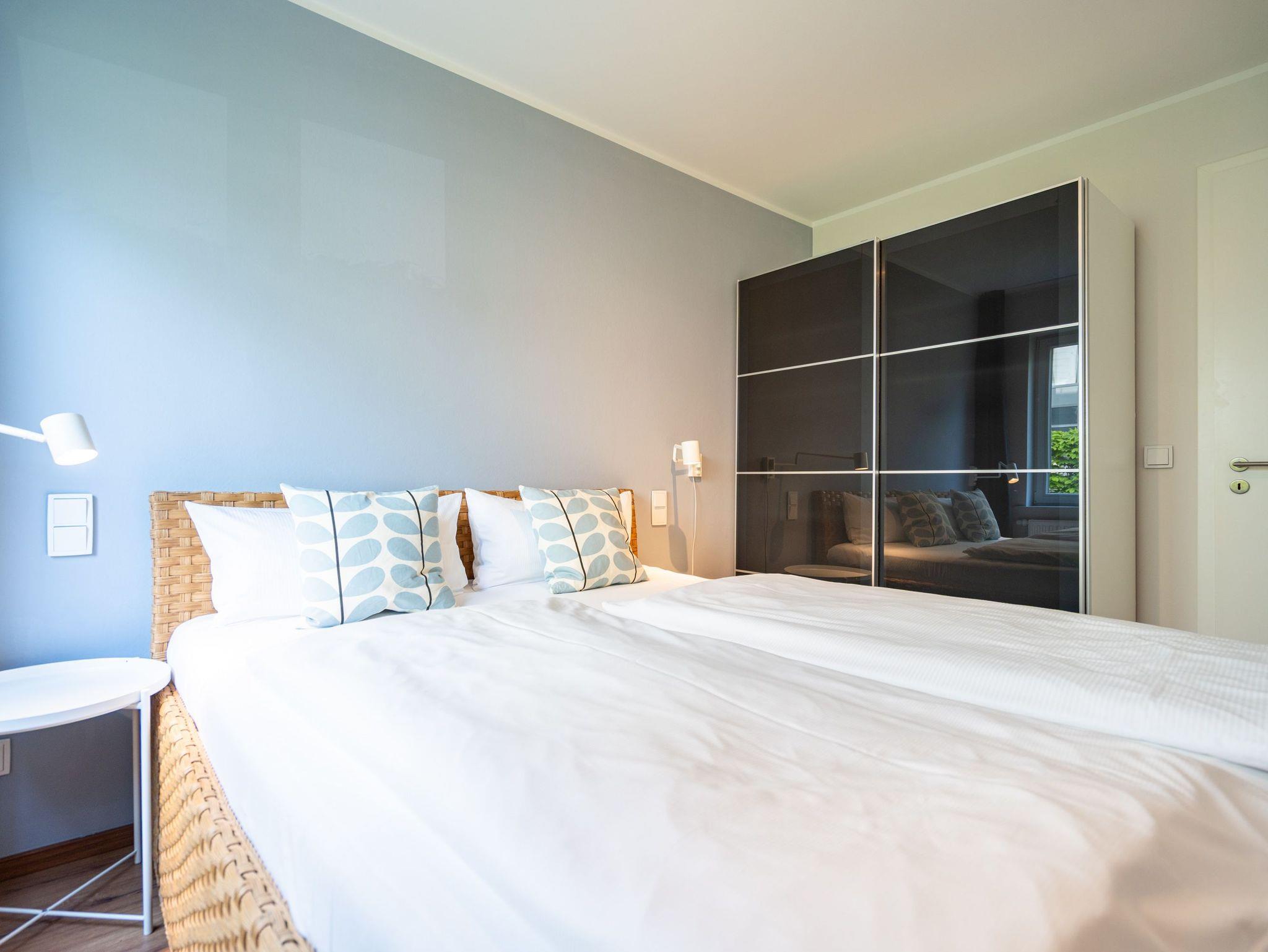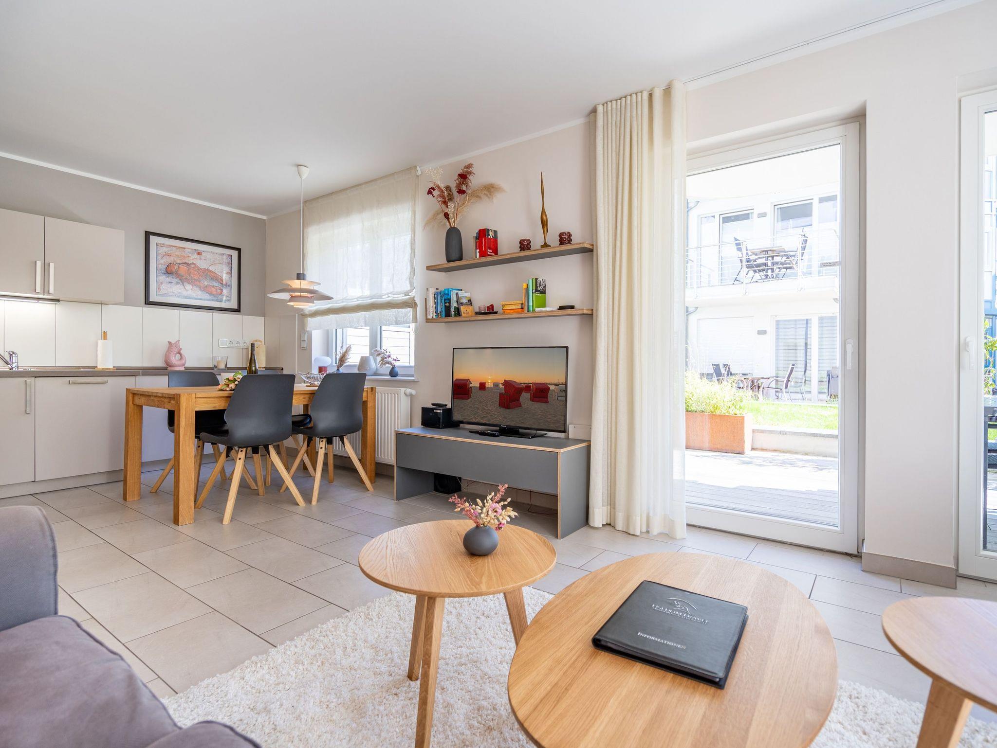 Wenn morgens die Sonne auf die 18 Quadratmeter große Nord-Ost-Terrasse scheint und die Ostsee vom nahegelegenen Strand leise rauscht, wähnt man sich in diesem Drei-Zimmer-Appartement glatt im Paradies. Denn das ist das wunderschöne und helle Urlaubsdomizil ganz sicher. Genießen Sie mit bis zu vier Personen auf 65 Quadratmetern eine entspannte Ostsee-Auszeit. Ganz gleich ob beim Lümmeln auf der bequemen Sitzlandschaft oder beim Schlemmen am rustikalen Esstisch ? Wohlfühlen steht hier an erster Stelle. Mit einem Händchen für modernes und stilvolles Interieur wurden das große Wohn-Ess-Zimmer und die beiden Schlafzimmer eingerichtet. Ein Flat-TV sorgt im Wohnzimmer für Unterhaltung. Das WLAN ist kostenfrei nutzbar. Die offene Wohnküche ist mit allem Nötigen ausgestattet. Bei Geschirrspüler, Herd oder anderem Küchenequipment wurde viel Wert auf Qualität gelegt. Auch mit Geschirr und Töpfen ist die Küche voll ausgestattet. Jedes der beiden Schlafzimmer besitzt ein bequemes Doppelbett (1,60 m x 2,00 m) und einen großen Schrank für die Urlaubsgarderobe. Es gibt ein innenliegendes Bad mit Dusche und WC sowie ein separates Gäste-WC. Die Handtücher liegen bei Ihrer Anreise bereit und auch die Betten sind bezogen. Für das Appartement ist der Außenstellplatz Nr. F07 reserviert.