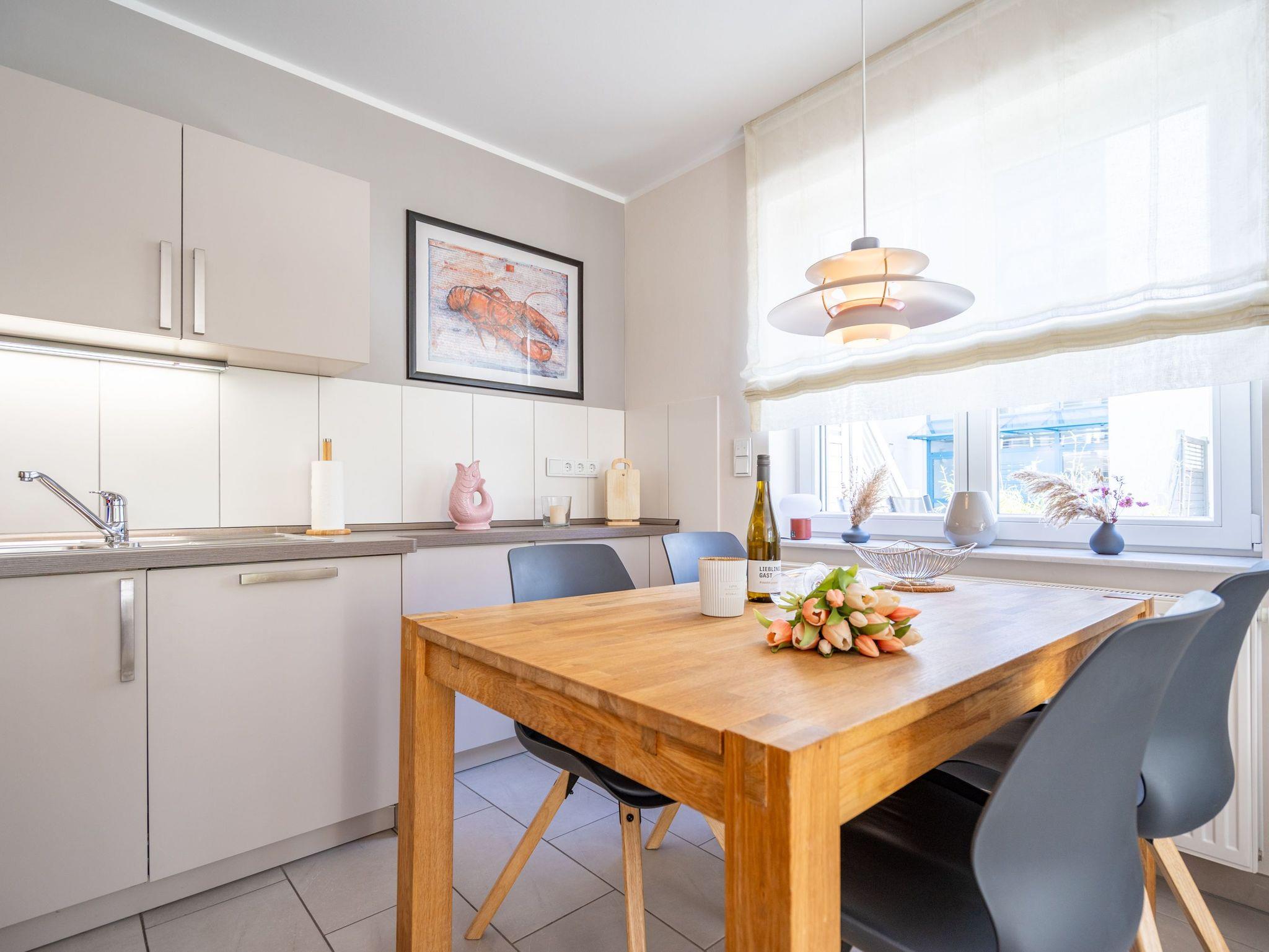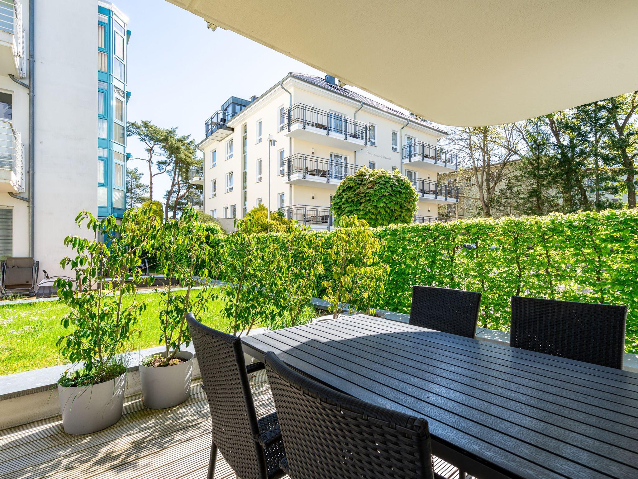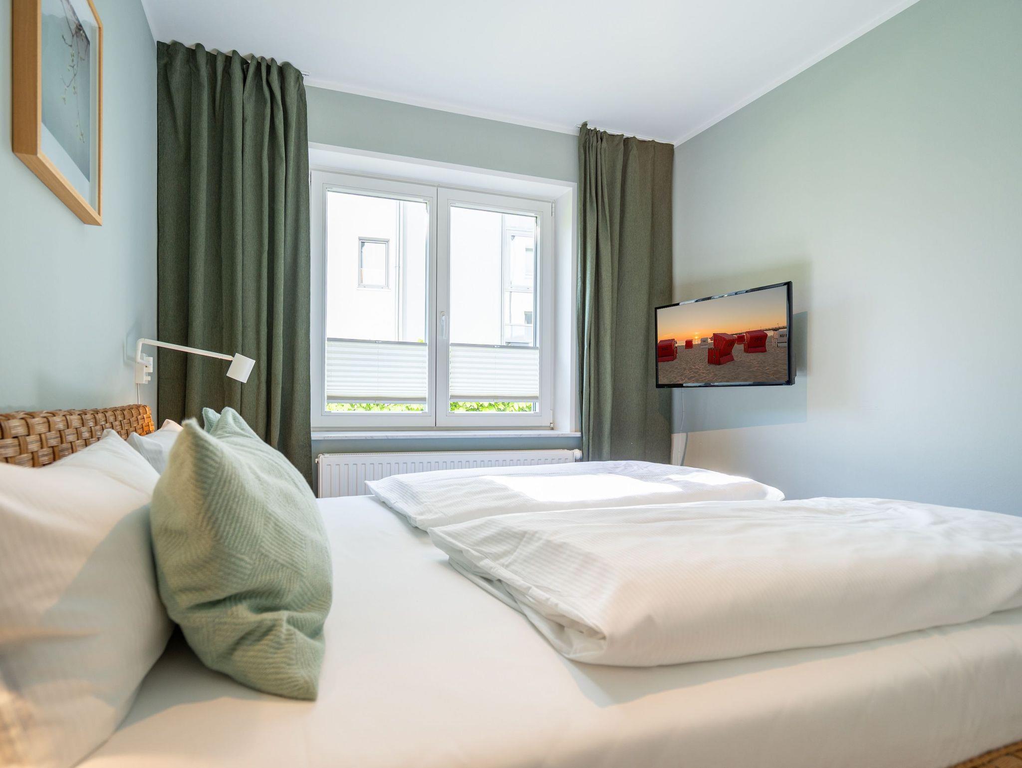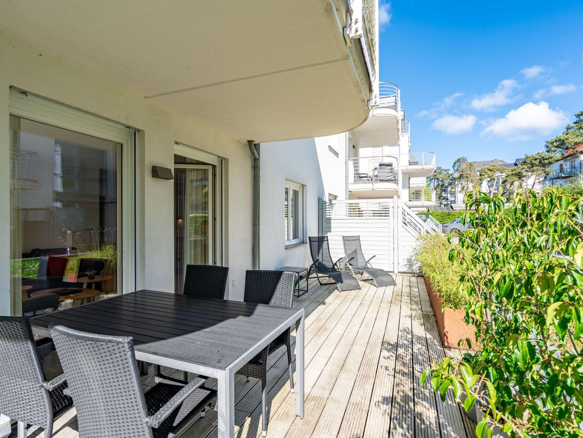 Wenn morgens die Sonne auf die 18 Quadratmeter große Nord-Ost-Terrasse scheint und die Ostsee vom nahegelegenen Strand leise rauscht, wähnt man sich in diesem Drei-Zimmer-Appartement glatt im Paradies. Denn das ist das wunderschöne und helle Urlaubsdomizil ganz sicher. Genießen Sie mit bis zu vier Personen auf 65 Quadratmetern eine entspannte Ostsee-Auszeit. Ganz gleich ob beim Lümmeln auf der bequemen Sitzlandschaft oder beim Schlemmen am rustikalen Esstisch ? Wohlfühlen steht hier an erster Stelle. Mit einem Händchen für modernes und stilvolles Interieur wurden das große Wohn-Ess-Zimmer und die beiden Schlafzimmer eingerichtet. Ein Flat-TV sorgt im Wohnzimmer für Unterhaltung. Das WLAN ist kostenfrei nutzbar. Die offene Wohnküche ist mit allem Nötigen ausgestattet. Bei Geschirrspüler, Herd oder anderem Küchenequipment wurde viel Wert auf Qualität gelegt. Auch mit Geschirr und Töpfen ist die Küche voll ausgestattet. Jedes der beiden Schlafzimmer besitzt ein bequemes Doppelbett (1,60 m x 2,00 m) und einen großen Schrank für die Urlaubsgarderobe. Es gibt ein innenliegendes Bad mit Dusche und WC sowie ein separates Gäste-WC. Die Handtücher liegen bei Ihrer Anreise bereit und auch die Betten sind bezogen. Für das Appartement ist der Außenstellplatz Nr. F07 reserviert.