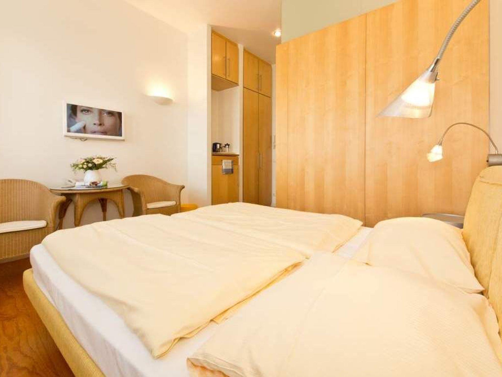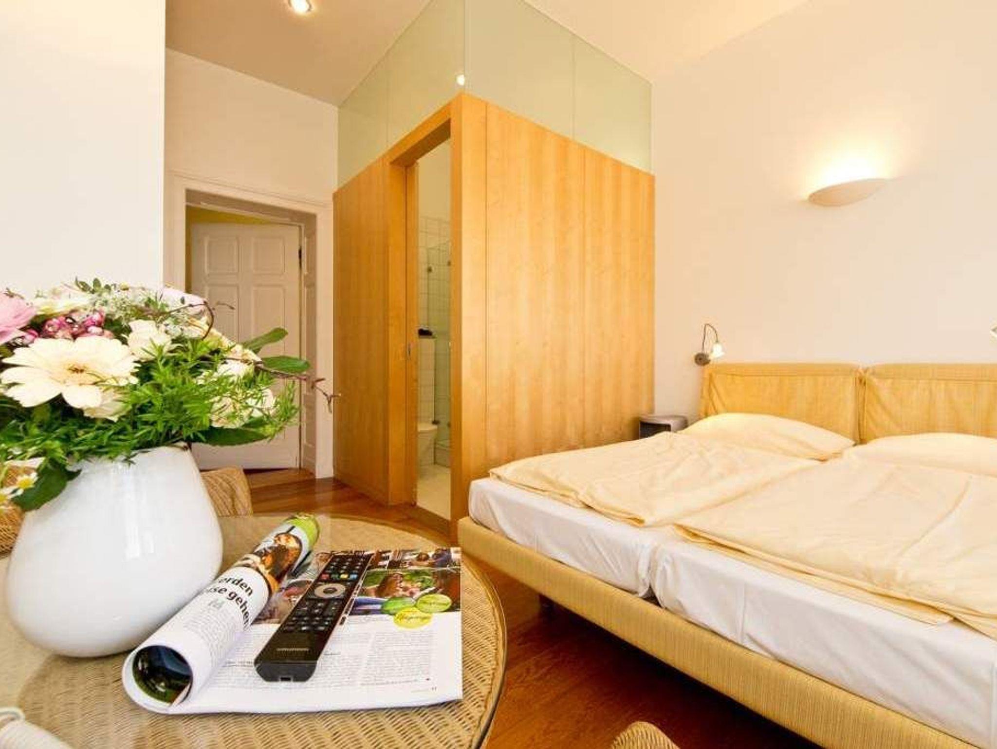 Diese kleinen, im Erdgeschoß gelegenen Zimmer eignen sich wunderbar für einen Kurzurlaub oder können bei Bedarf, zum Beispiel für die Schwiegermutter oder für größere Kinder, zu einer der anderen Wohnungen dazu gemietet werden. Sie verfügen über ein komplettes Bad mit Dusche und WC, zwei Betten, einen Einbauschrank, in dem ein integrierter Kühlschrank für kalte Getränke sorgt. Eine kleine Frühstücksgrundausstattung ( Tassen, Teller u. Besteck) sind vorhanden. Wer keinen Wert auf eine eigene Kochmöglichkeit legt, sondern sowieso lieber essen geht, findet hier eine günstige Alternative.