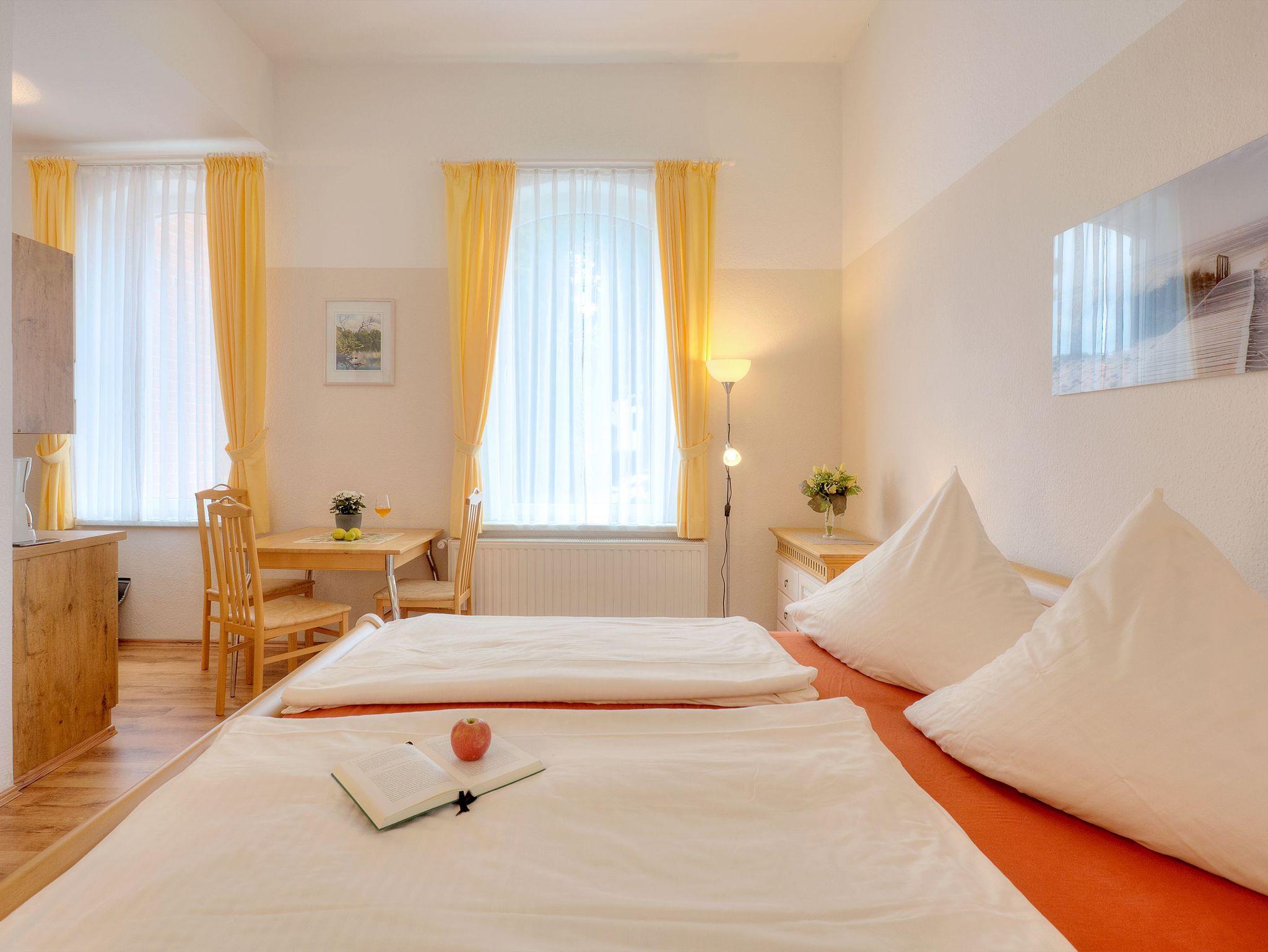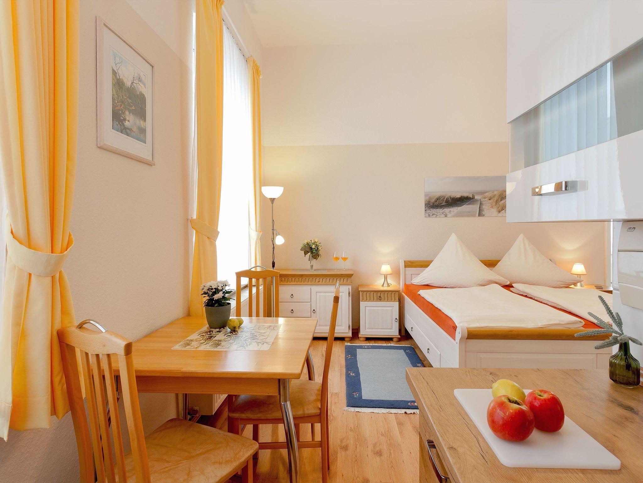 Einen angenehmen Aufenthalt bieitet die Räumlichkeit mit Sitzgelegenheit, Komfortbett und separat integierter Küchenzeile.