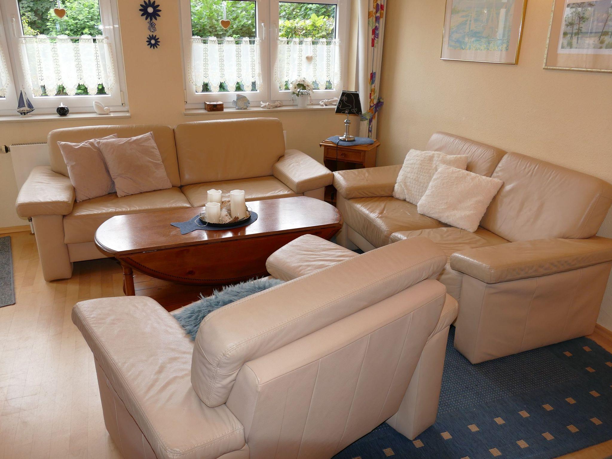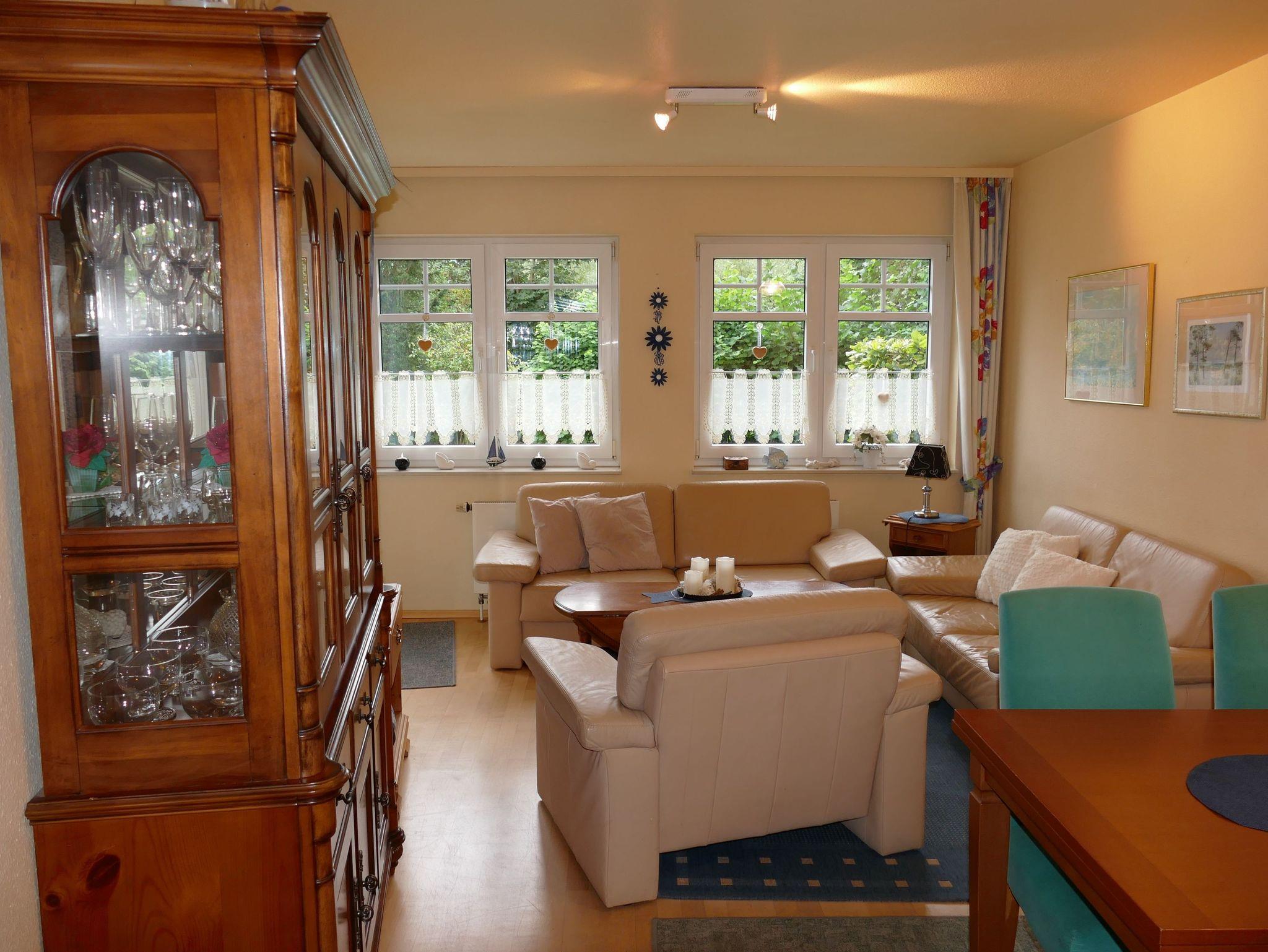 Diese ca. 60 qm große gemütliche Erdgeschosswohnung mit Terrasse im Seepark Bansin bietet alles, was Sie für einen entspannten Urlaub brauchen und bietet Platz für bis zu 4 Personen. Sie verfügt über zwei Schlafzimmer - eines mit einem bequemen Doppelbett und zusätzlichem Flachbild-TV und das andere mit zwei Einzelbetten ? sowie ein gemütliches Wohnzimmer mit Sofas, Sessel und einem Essplatz mit 4 Stühlen. Die voll ausgestattete separate Küche mit Geschirrspüler, Backofen, Gefrier- und Kühlkombination lädt zum Kochen und Genießen ein. Zur Ausstattung gehören außerdem Kabel-TV, ein Radio mit CD-Player sowie ein Duschbad mit WC.