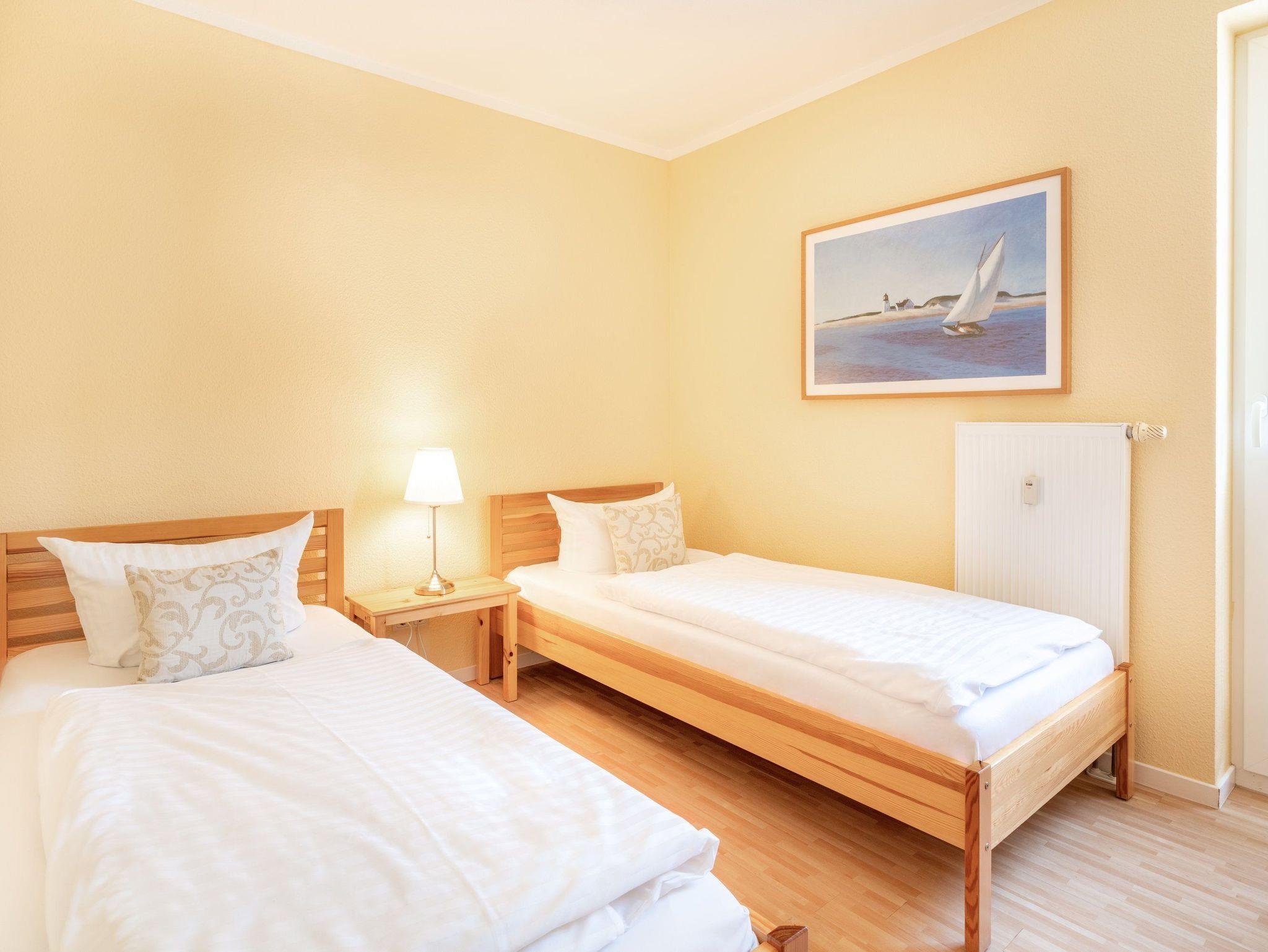Auf dem angrenzenden Balkon Richtung Südwest können Sie die Seele so richtig baumeln und den Urlaubstag ausklingen lassen. Im ersten Schlafzimmer lädt ein bequemes Doppelbett (180 x 200cm / zwei getrennte Matratzen) zur Nachtruhe ein. Das zweite Schlafzimmer ist mit zwei Einzelbetten (je 90 x 200cm) ausgestattet.