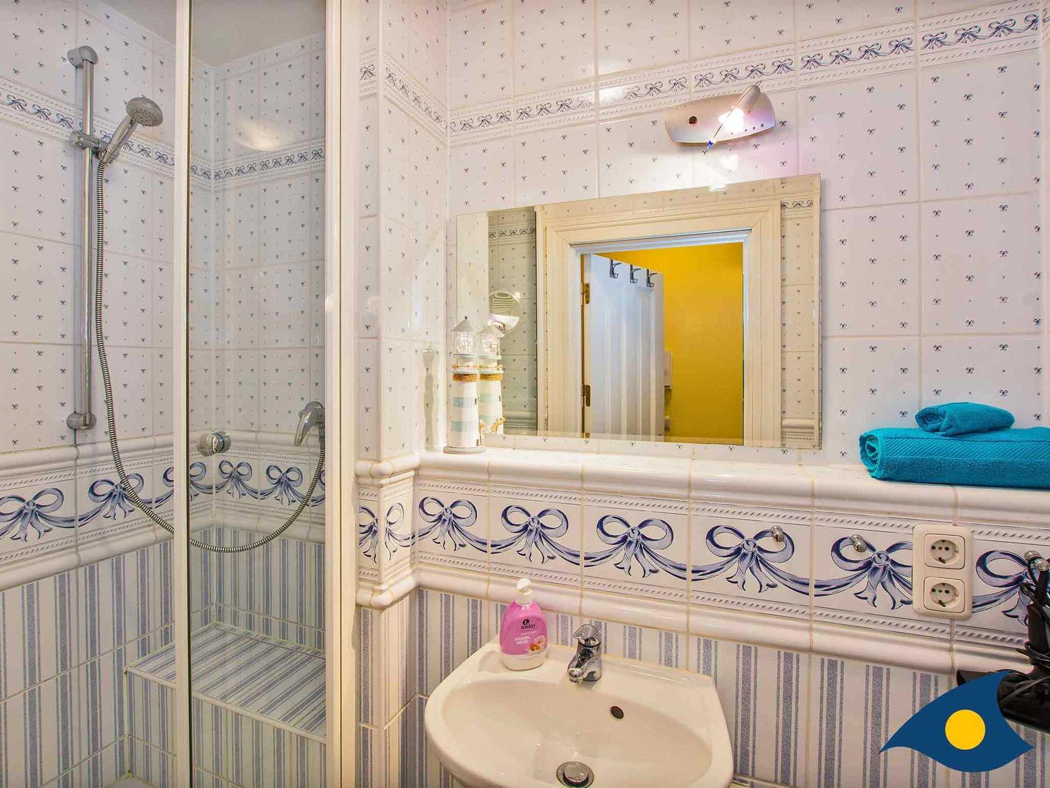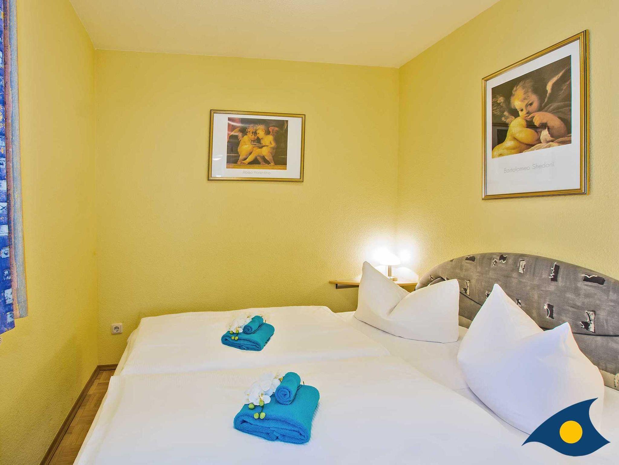 Das kleine Schlafzimmer mit dem gemütlichen Doppelbett ist ein wahres Kuschelnest. Das Badezimmer ist mit WC, Waschbecken und Dusche ausgestattet.
