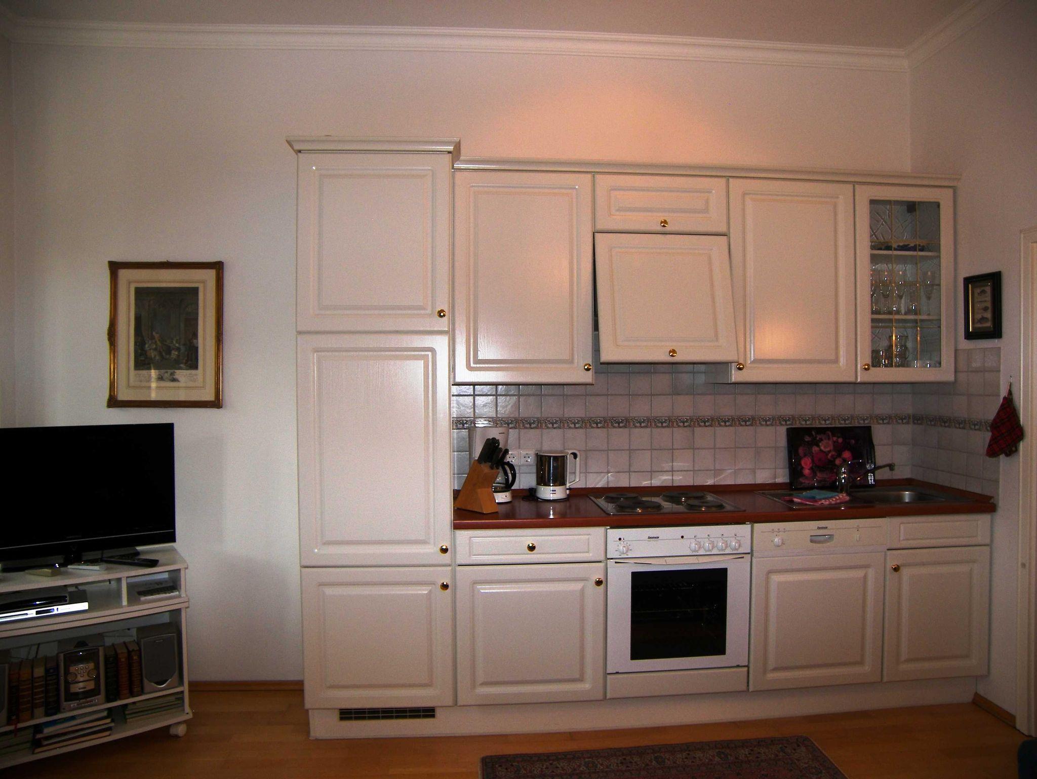 Die Wohnung ist exklusiv mit Stilmöbeln in Kirschbaum und Mahagoni, hochwertigem Bucheparkett, Stuckdecken und Kassettentüren eingerichtet. Der stillvolle Wohnbereich ist mit einer Couch, Flachbild-TV und DVD-Player sowie einer Stereo-Anlage eingericht. Die offene Einbauküche ist mit Backofen, Spülmaschine, Kühlschrank mit Gefrierfach, Kaffeemaschine, Wasserkocher und Toaster ausgestattet. An den Wohnbereich schließt sich die helle Veranda mit Esstisch an. Von dort aus können Sie über die Seestraße bis zum Meer schauen. Das erste der beiden Schlafzimmer ist mit einem Doppelbett ausgestattet, das zweite mit zwei Einzelbetten. Im hochwertigen Bad mit Glasdusche müssen sie außerdem auf Haartrockner und Schminkspiegel nicht verzichten. Die Wohnung besitzt 2 Balkone (einen kleinen zur Ostseite und einen großen zur Südwestseite) mit entsprechenden Möbeln. W-LAN steht Ihnen kostenfrei zur Verfügung.