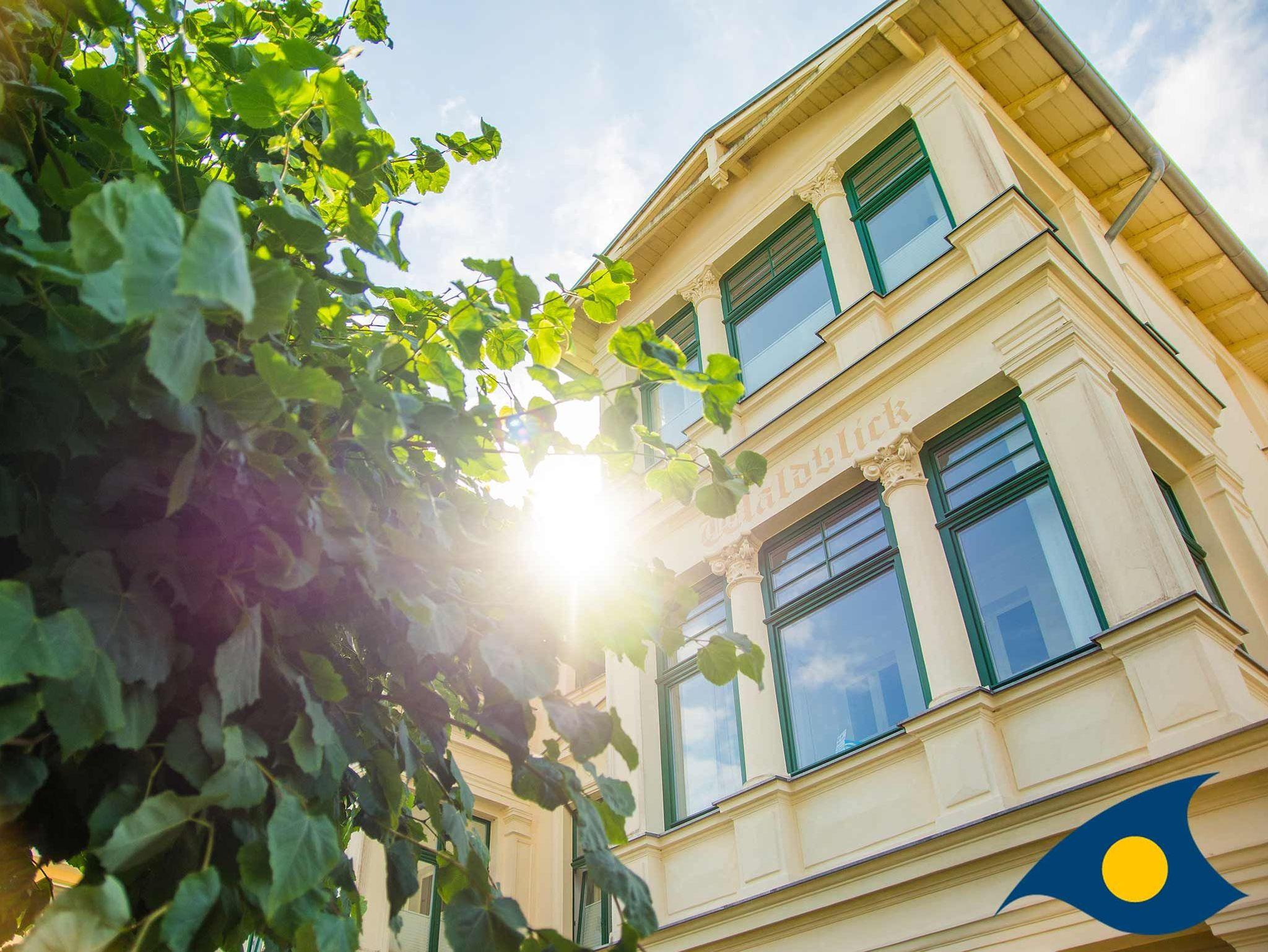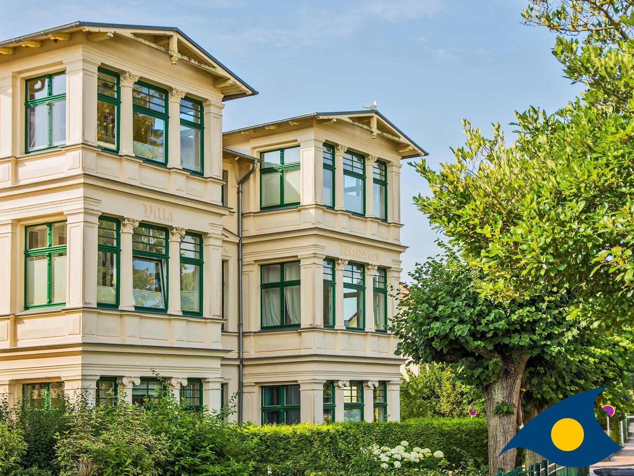 Die Villa Waldblick besticht durch ihre originalgetreu sanierte Fassade im Bäderstil. Fast alle Balkone sind nach Süden ausgerichtet, die Wohnungen sind hell und sonnig, kein Baumbestand verdunkelt die Räume. Die Appartements wurden stilgerecht, liebevoll und hochwertig eingerichtet. Kleine Accessoires sorgen für individuelle Gemütlichkeit. Großzügige Landhausküchen mit Essecken laden in einigen Wohnungen zum Beisammensein ein. Der Grillplatz im Garten kann von allen Mietern genutzt werden. Zu jeder Wohnung gehört ein kostenloser PKW-Stellplatz direkt am Objekt.