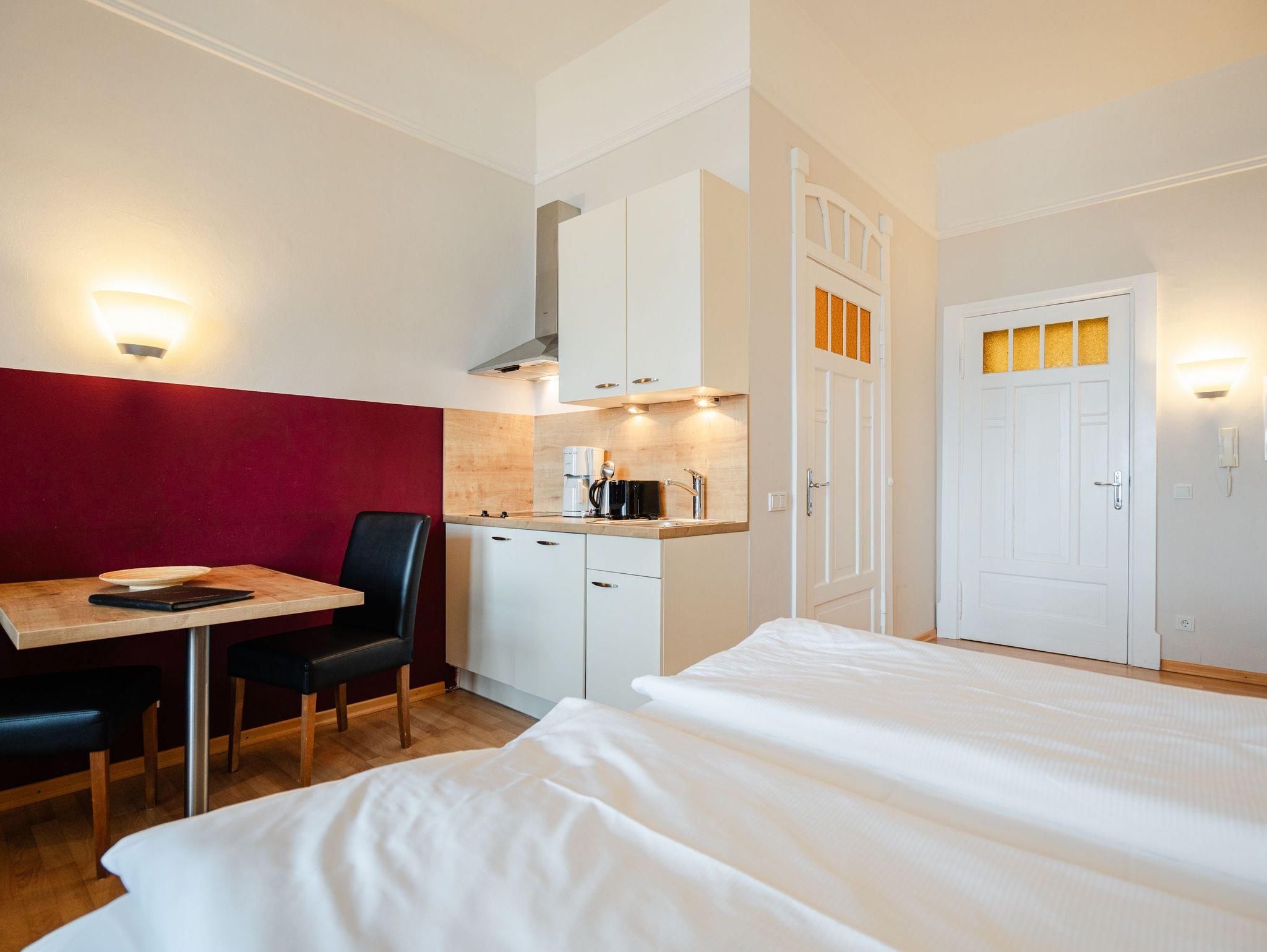 Traumhafter Meerblick, erste Reihe, 4-Sterne-Komfort-Wohnungen. Gibt es nicht? Doch! In der Villa Dora, eine stilvolle Villa der Kaiserzeit. Hier wird Ihr Urlaub zu einem besonderen Erlebnis, denn die Ostsee ist quasi vor der Tür. Komfortabel und ansprechend gestaltete Domizile, vom 1-Raum-Appartement mit verglaster Veranda bis hin zum Dachstudio mit 100 qm, bieten Ihnen zu zweit oder in Familie erholsame Urlaubstage. Für jedes Appartement in der Villa Dora steht ein Stellplatz zur Verfügung. Sie haben die Möglichkeit Ihre Fahrräder in einem separaten Raum unterzustellen. Eine Waschmaschine und ein Trockner im Haus sind gegen eine Gebühr nutzbar. Das WLAN-Netz steht kostenfrei zur Verfügung.