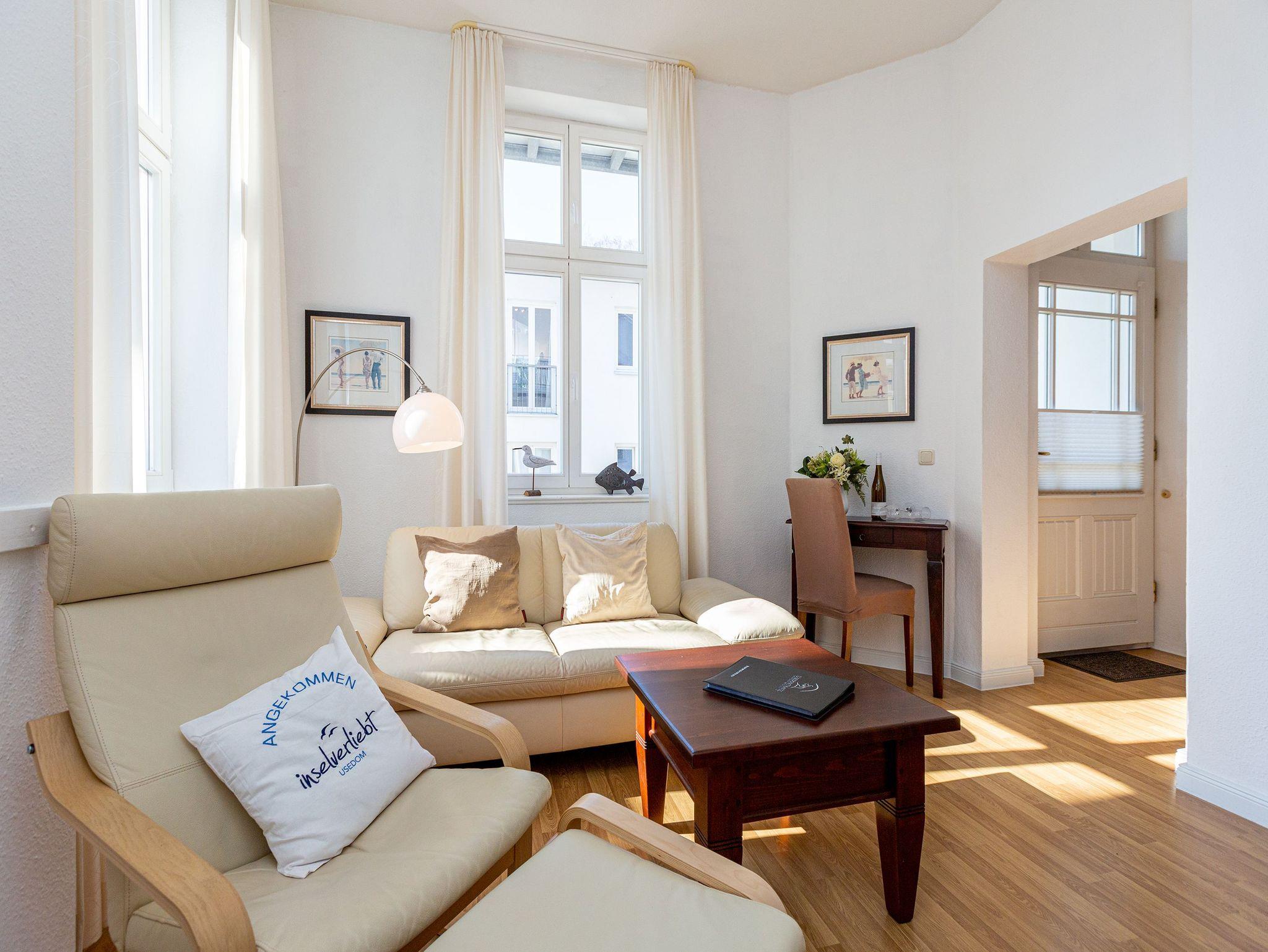 Die stilvoll eingerichtete Ferienwohnung ( für max. 2 Personen [&] 1 Kleinkind bis 3 Jahre im Kinderreisebett) im Hochparterre der Villa Belvedere gestaltet Ihren Urlaub vom Moment Ihrer Ankunft komfortabel und erholsam zugleich. Es verfügt über einen Wohnbereich mit gemütlicher Sitzgruppe [&] Flat-TV, eine komplett ausgestattete separate Küche, ein Schlafzimmer mit Doppelbett (1,60 m) und ein Bad mit Dusche. Auf dem Südbalkon genießen Sie die Nachmittagssonne. Auf Wunsch stellen wir für unsere kleinen Gäste ein Kinderreisebett (ohne zusätzliche Matratze [&] Bettzeug) und einen Kinderhochstuhl ( gegen einen Aufpreis) zur Verfügung. Für Ihren Komfort sind die Betten bei der Anreise bezogen und Handtücher liegen bereit (Erstausstattung).
