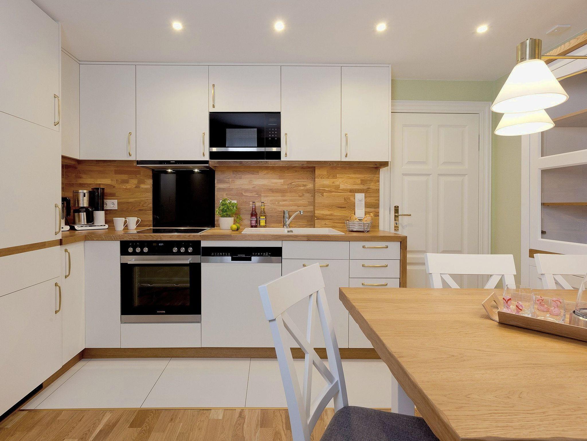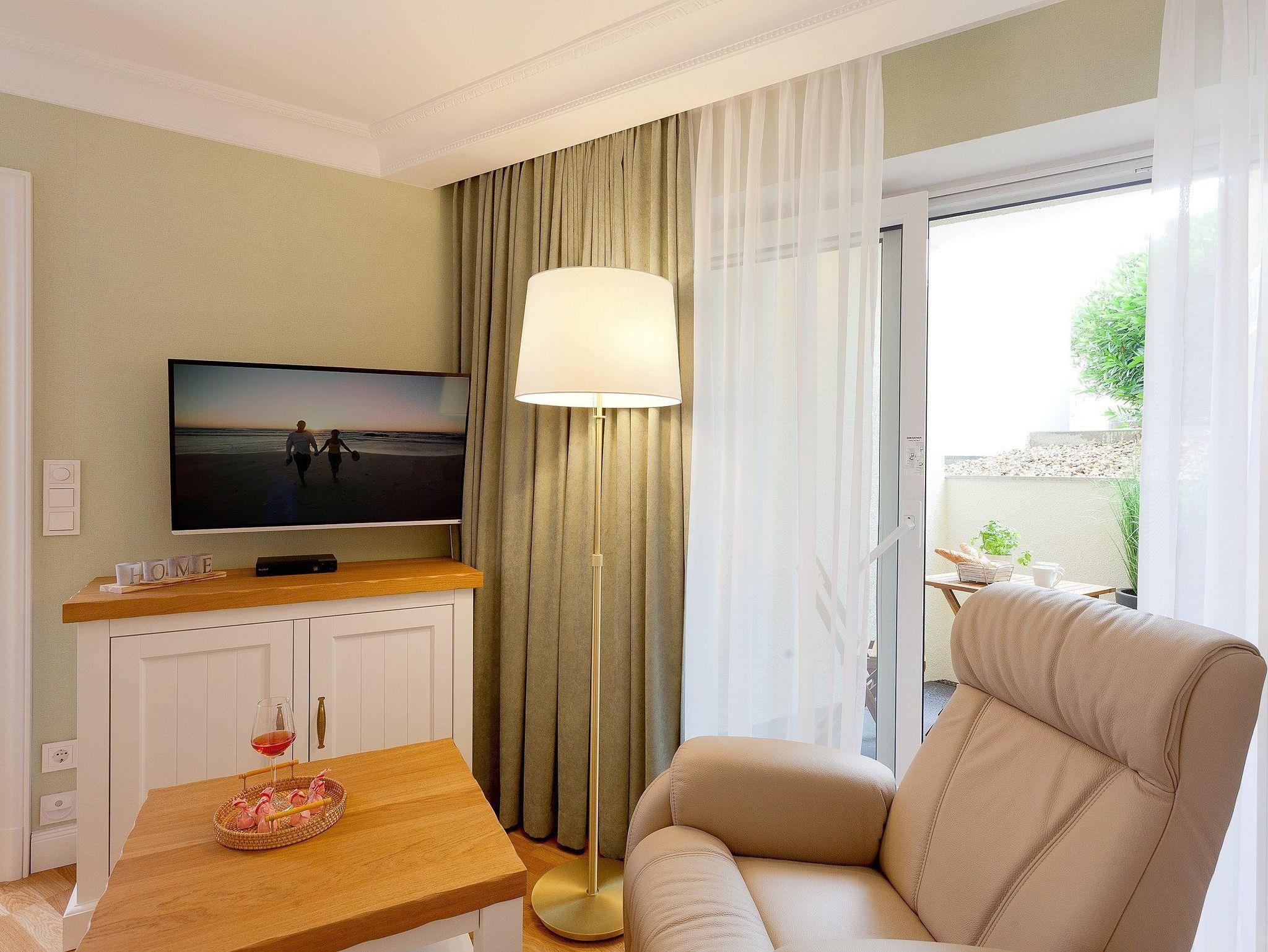 Das helle und großzügige Drei-Zimmer-Appartement im Gartengeschoss der Villa beeindruckt auf 80?Quadratmetern mit einer durchdachten Raumaufteilung, die sowohl Komfort als auch Privatsphäre garantiert. Ein eleganter Wohnbereich mit exklusivem Gaskamin, bequemer Couchgarnitur und Flat-TV schafft eine Wohlfühlatmosphäre, die das ganze Jahr über zum Entspannen einlädt. Die voll ausgestattete Küche, maßgefertigt von einem einheimischen Tischler, bietet Backofen, Mikrowelle, Kühlschrank mit Gefrierfach, Toaster, Wasserkocher und Kaffeemaschine sowie einen Essbereich für sechs Personen ideal für gemeinsame Familienmahlzeiten. Von der sonnigen Terrasse können Sie bereits die frische Meeresluft genießen. Echtholzparkett, langlebige Designer-Tapeten aus den USA und liebevolle Details unterstreichen den exklusiven Charakter des Appartements.