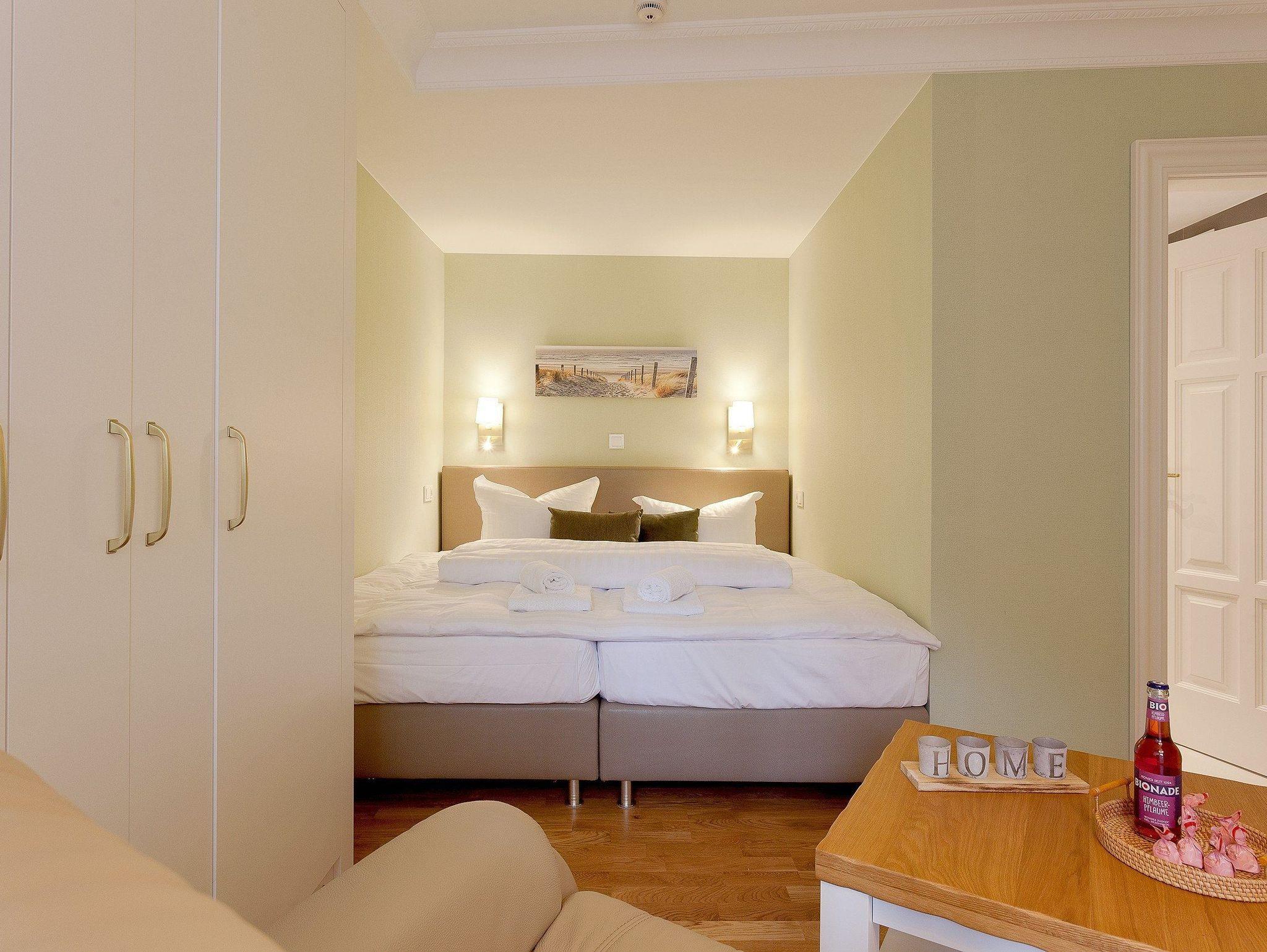 Die sechs Schlafplätze verteilen sich auf drei geschmackvoll eingerichtete Schlafzimmer: In den ersten beiden Schlafzimmer lädt Sie jeweils ein hochwertiges Boxspringbett (1. 200 x 200cm / zwei getrennte Matratze; 2. 180 x 200cm) zur Nachtruhe ein. Im dritten Schlafzimmer erwartet Sie eine bequeme Schlafcouch, welche sich im Handumdrehen für zwei Gäste als Schlafmöglichkeit umfunktionieren lässt. Jedes Schlafzimmer ist mit einem Flat-TV ausgestattet, und geräumige Kleiderschränke bieten ausreichend Stauraum für die ganze Familie. Damit Sie Ihre wohlverdiente Urlaubszeit bereits am Anreisetag in vollen Zügen genießen können ? haben wir das Bett für Sie und das für Ihre lieben Mitreisenden bereits bezogen und ein Duschtuch sowie ein kleines Handtuch bereitgelegt.