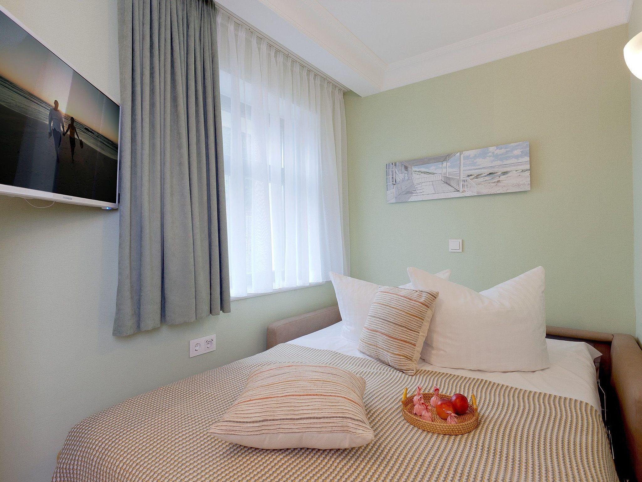 Im Schlafzimmer ist die Aufbettung mit einem Kleinkind bis 3 Jahre in einem Babyreisebett möglich. Das Babyreisebett können Sie gegen Gebühr hinzubuchen.