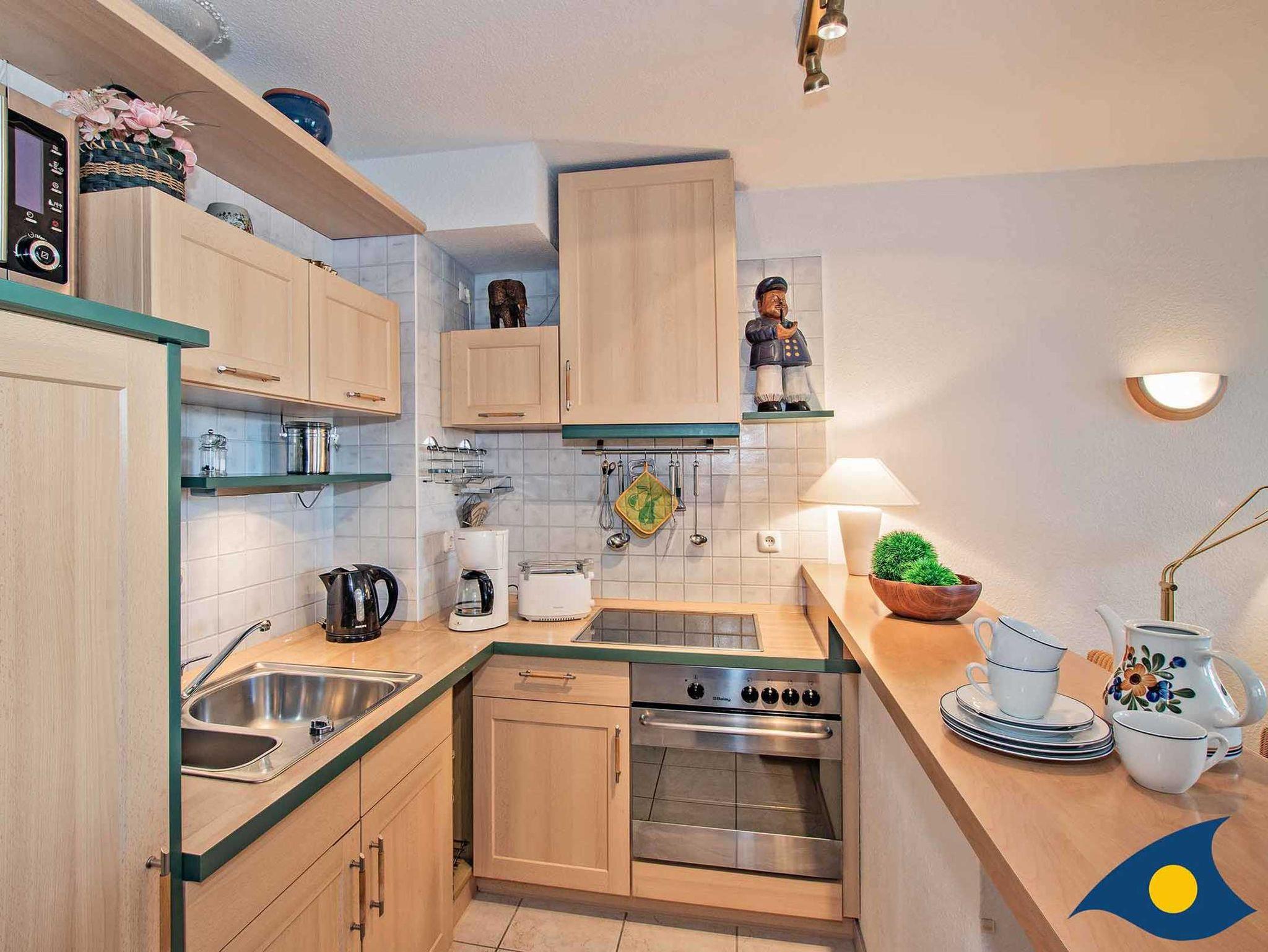 Zu diesem schönen Zweiraumappartement gehört ein 8 qm großer Balkon mit eingeschränktem Meerblick. Der kleine Tresen trennt den Küchenbereich vom Wohnzimmer. Ein bunter Stilmix und verschiedene Teppiche sorgen für eine gemütliche Atmosphäre. Vom Balkon aus kann man das Leben auf der bekannten Bansiner Bergstraße und die Aussicht bis zum Ostseestrand wunderbar genießen. Das bequeme Doppelbett sorgt für genügend Platz am Tag und einen erholsamen Schlaf in der Nacht.