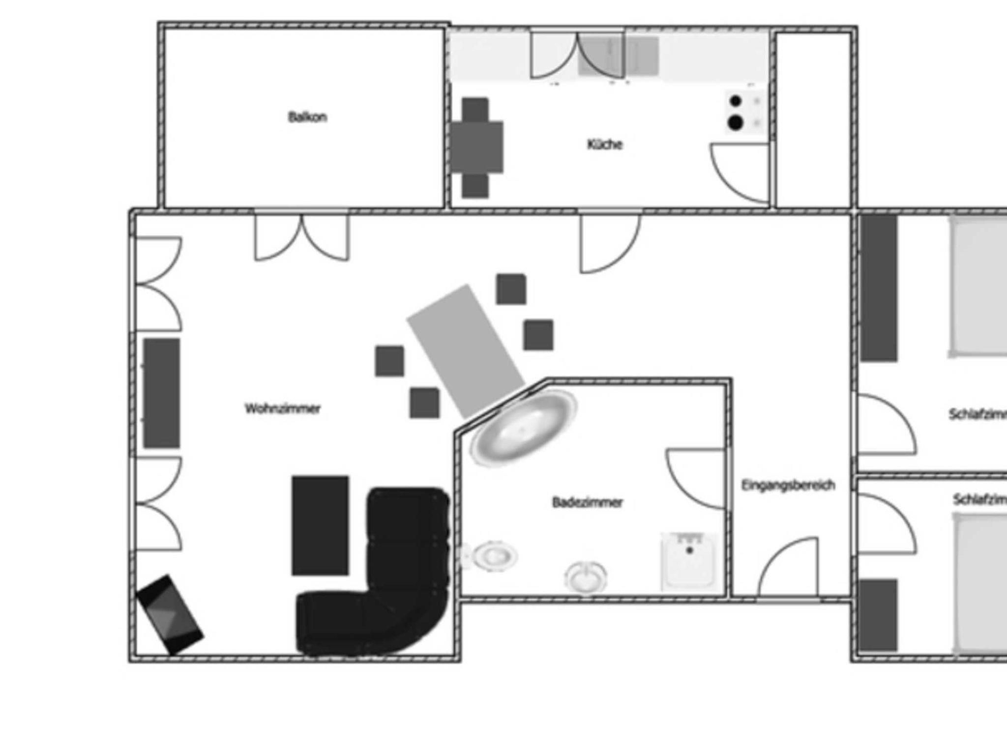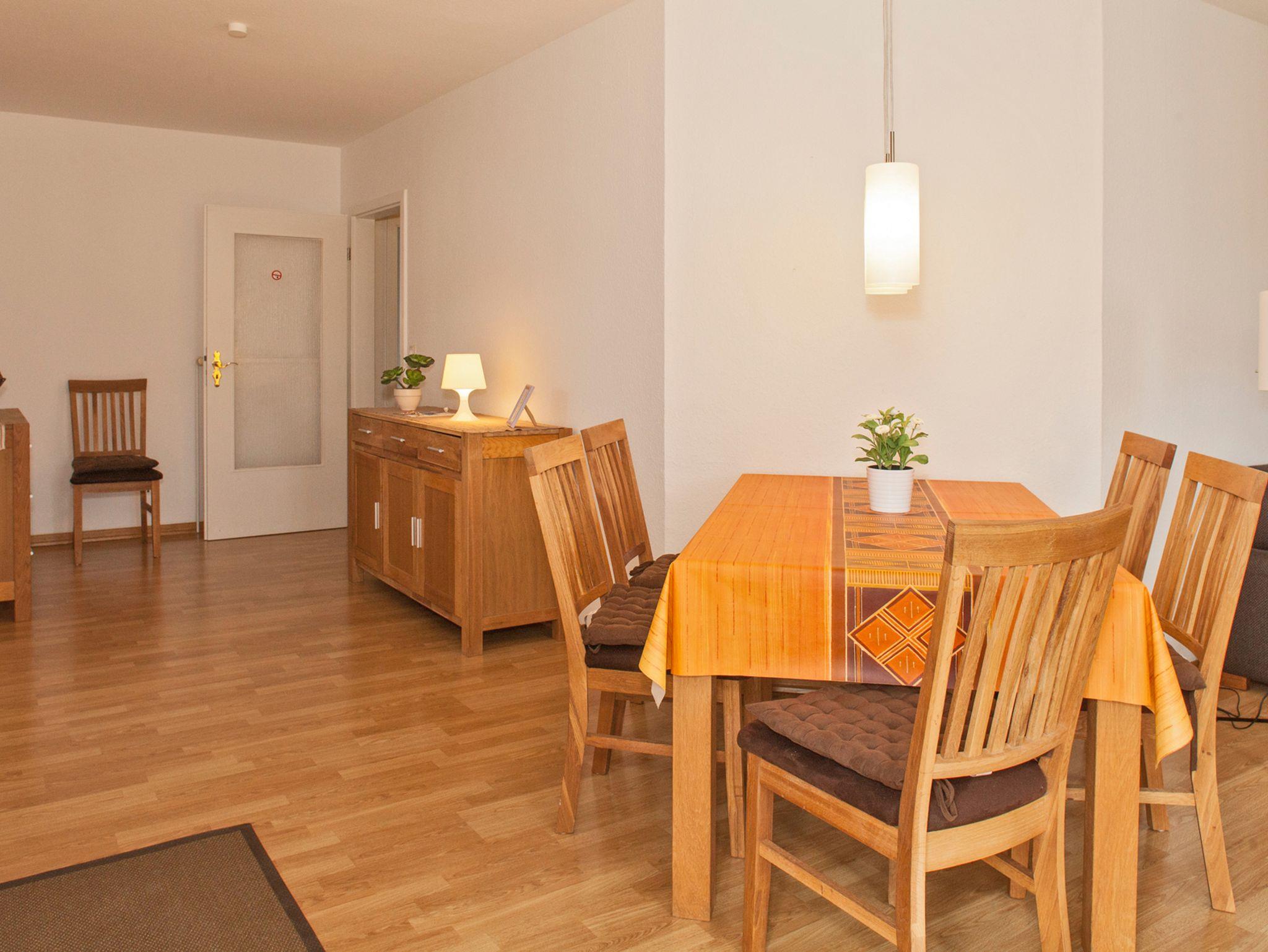 Die Wohnung verfügt über 2 separate Schlafzimmer mit jeweils einem Doppelbett, eine Küche mit Geschirrspüler, Kühlschrank, Gefrierfach, Ceranfeld und Backofen, ein geräumiges Wohnzimmer mit Essberiech, ein Badezimmer mit Badewanne und separater Dusche, Balkon mit Süd-West Ausrichtung und ein Fahrradkeller. Ein Parkplatz steht Ihnen hinter dem Haus zu Verfügung.