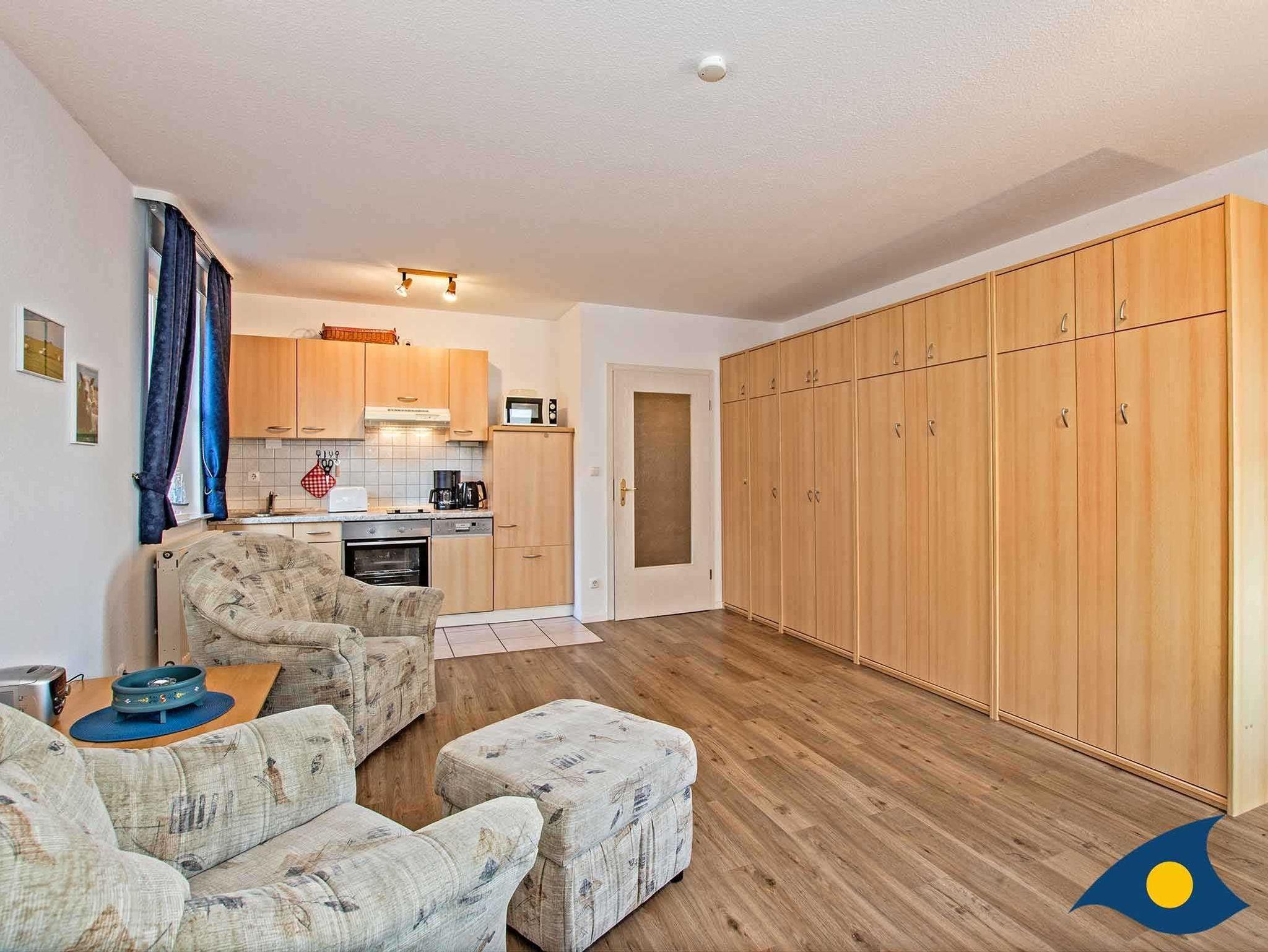 Zu diesem freundlich eingerichteten ***Einraumappartement gehört ein Südwestbalkon, auf dem Sie die Nachmittagssonne und den Blick auf den herrlichen Buchenwald wunderbar genießen können. Das moderne Schrankbett mit 2 bequemen Einzelbetten verschwindet am Tag ganz einfach und nimmt Ihnen so keinen Platz weg.