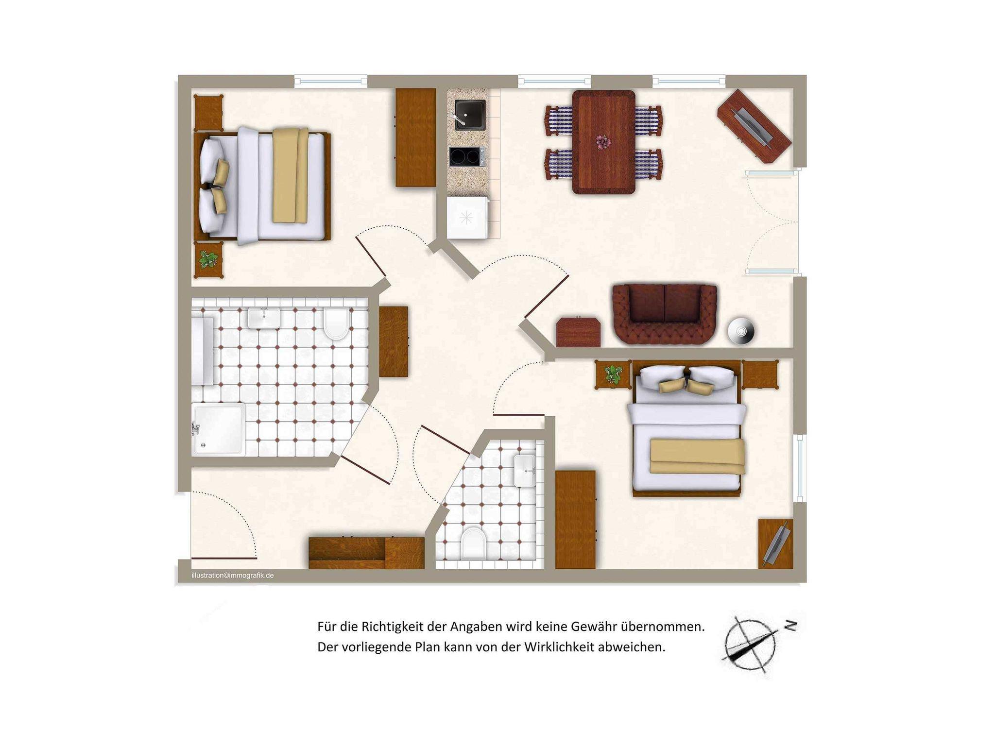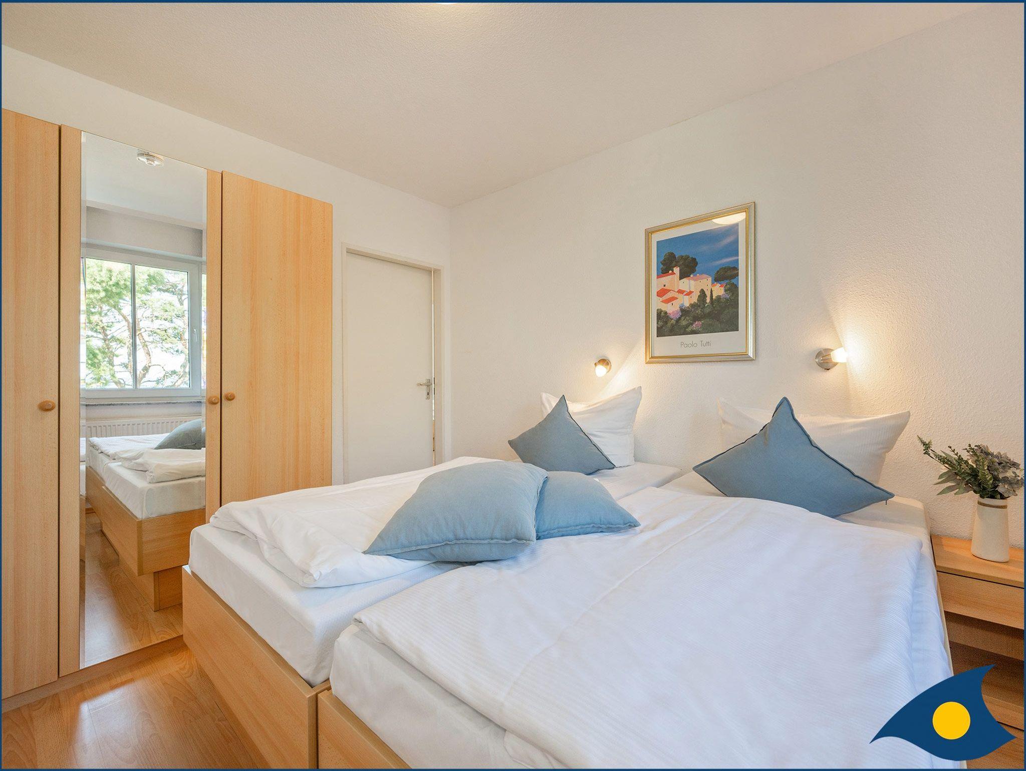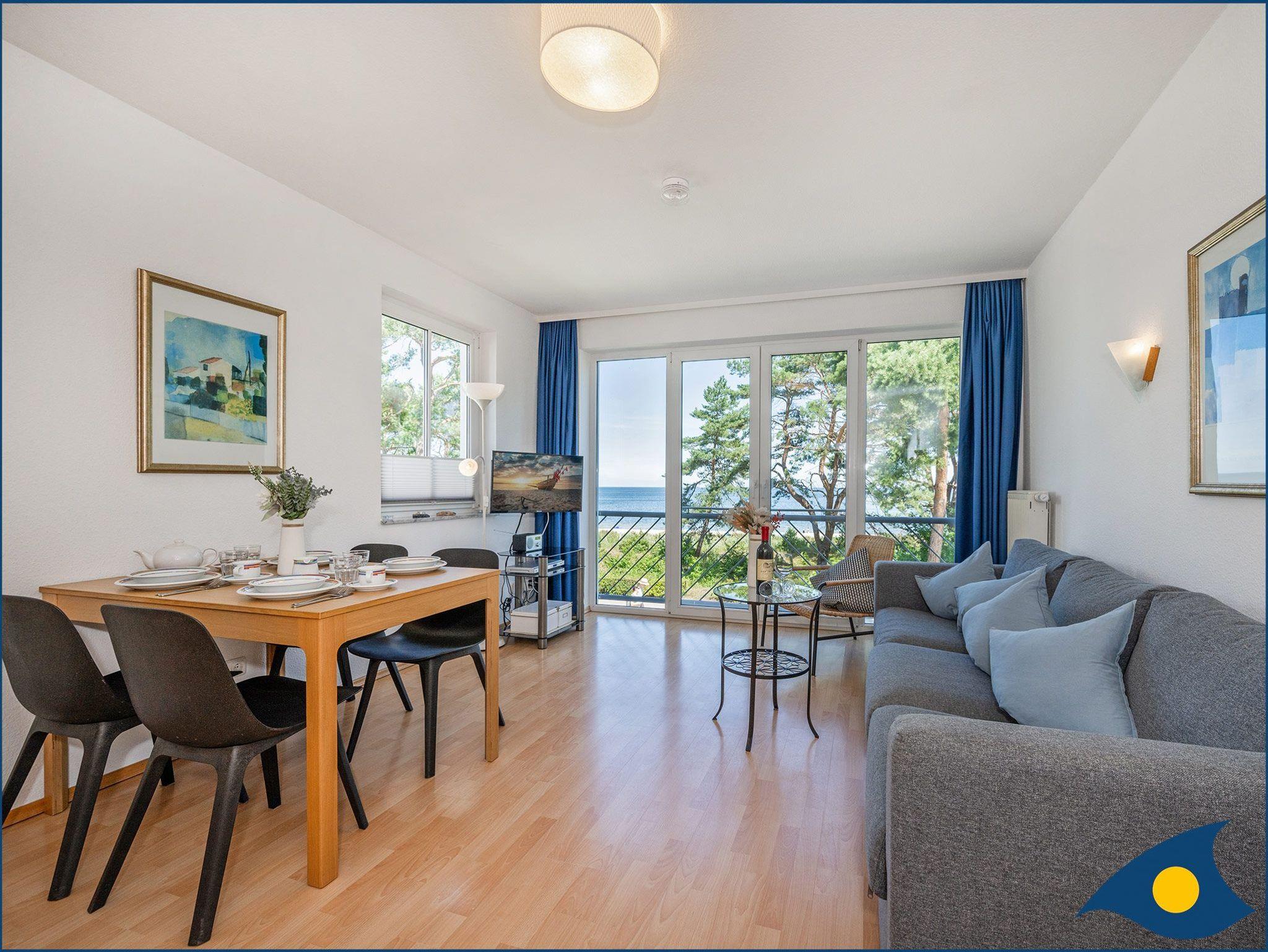 Dieses moderne Dreiraumappartement in der 3. Etage ist komfortabel ausgestattet und verfügt über zwei Schlafzimmer mit je einem Doppelbett. Die Wohnung bietet einen traumhaften Blick auf den Strand und die Ostsee.
