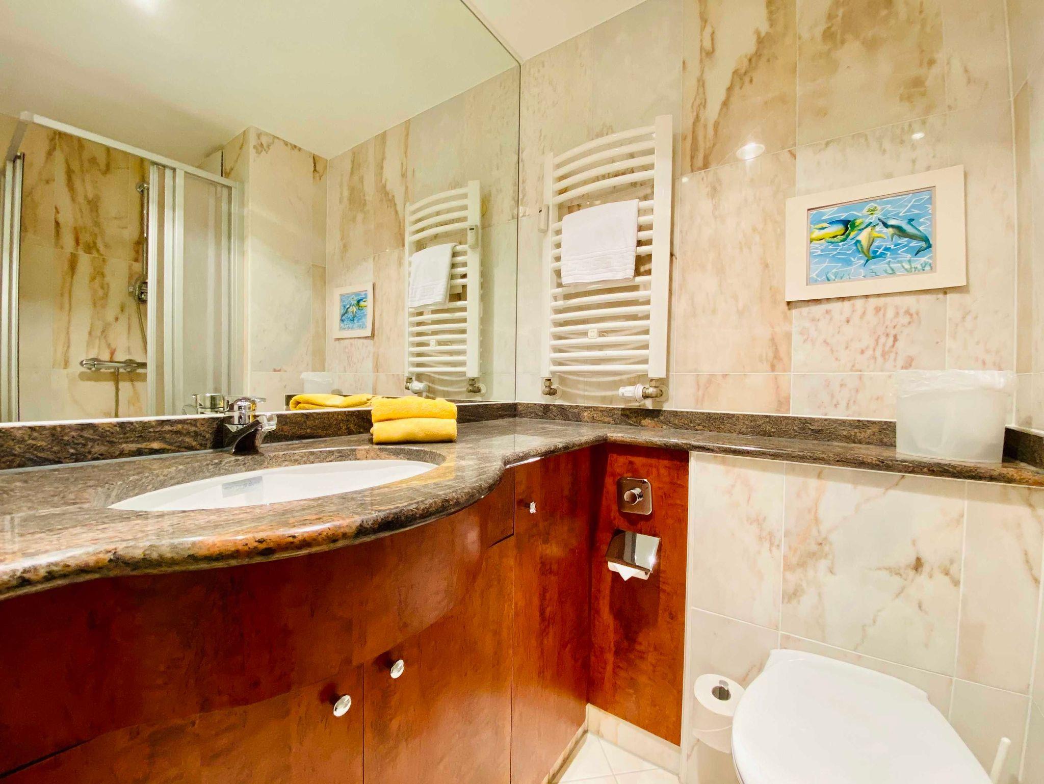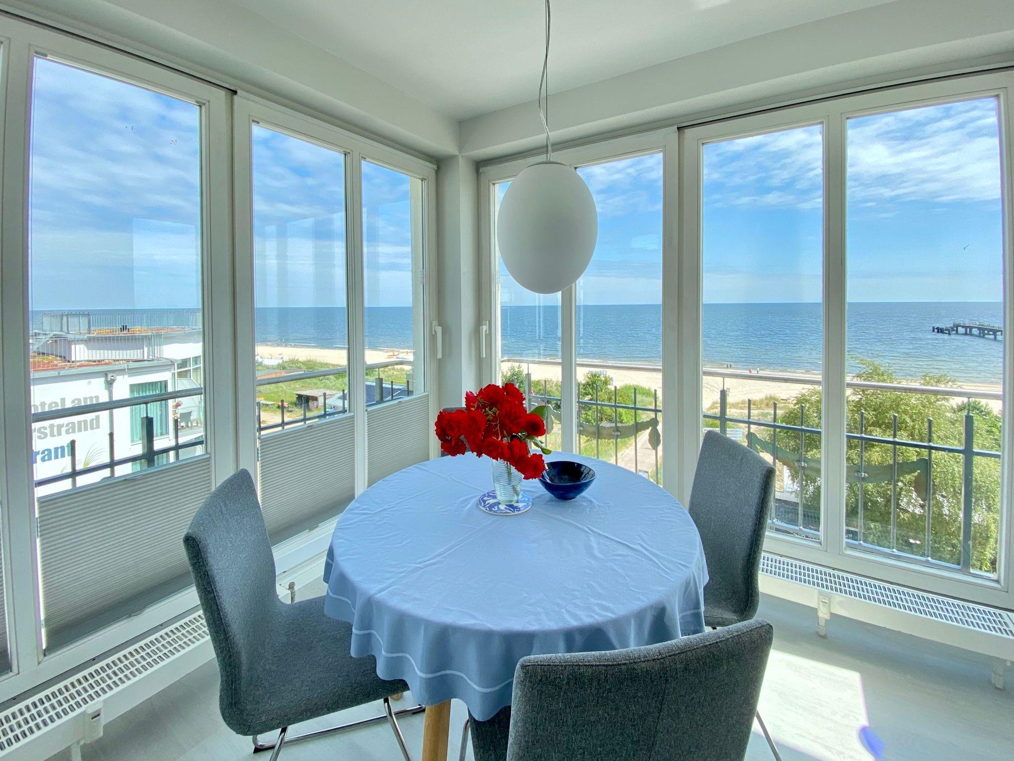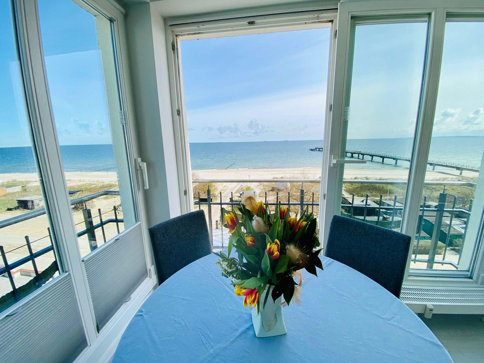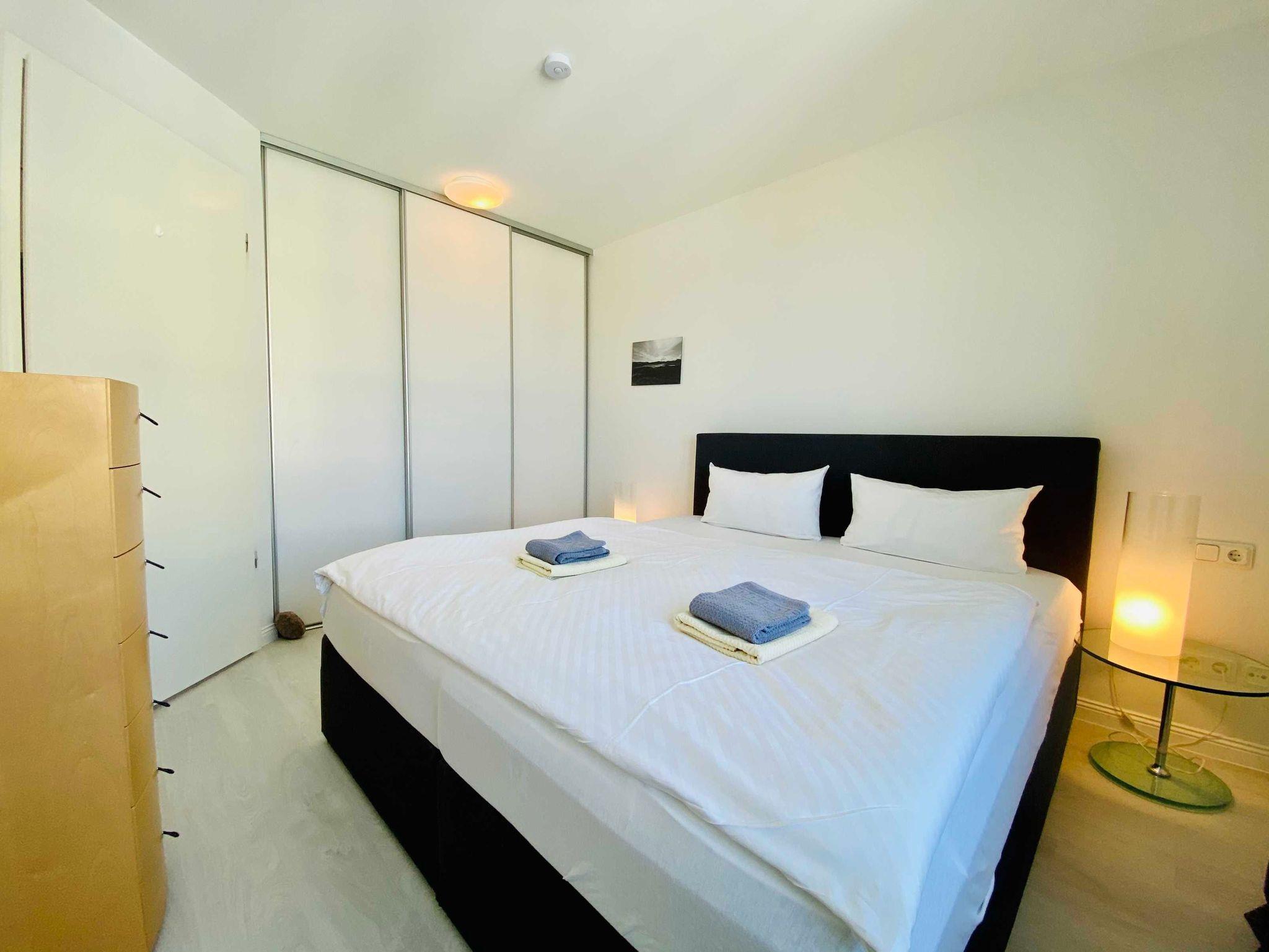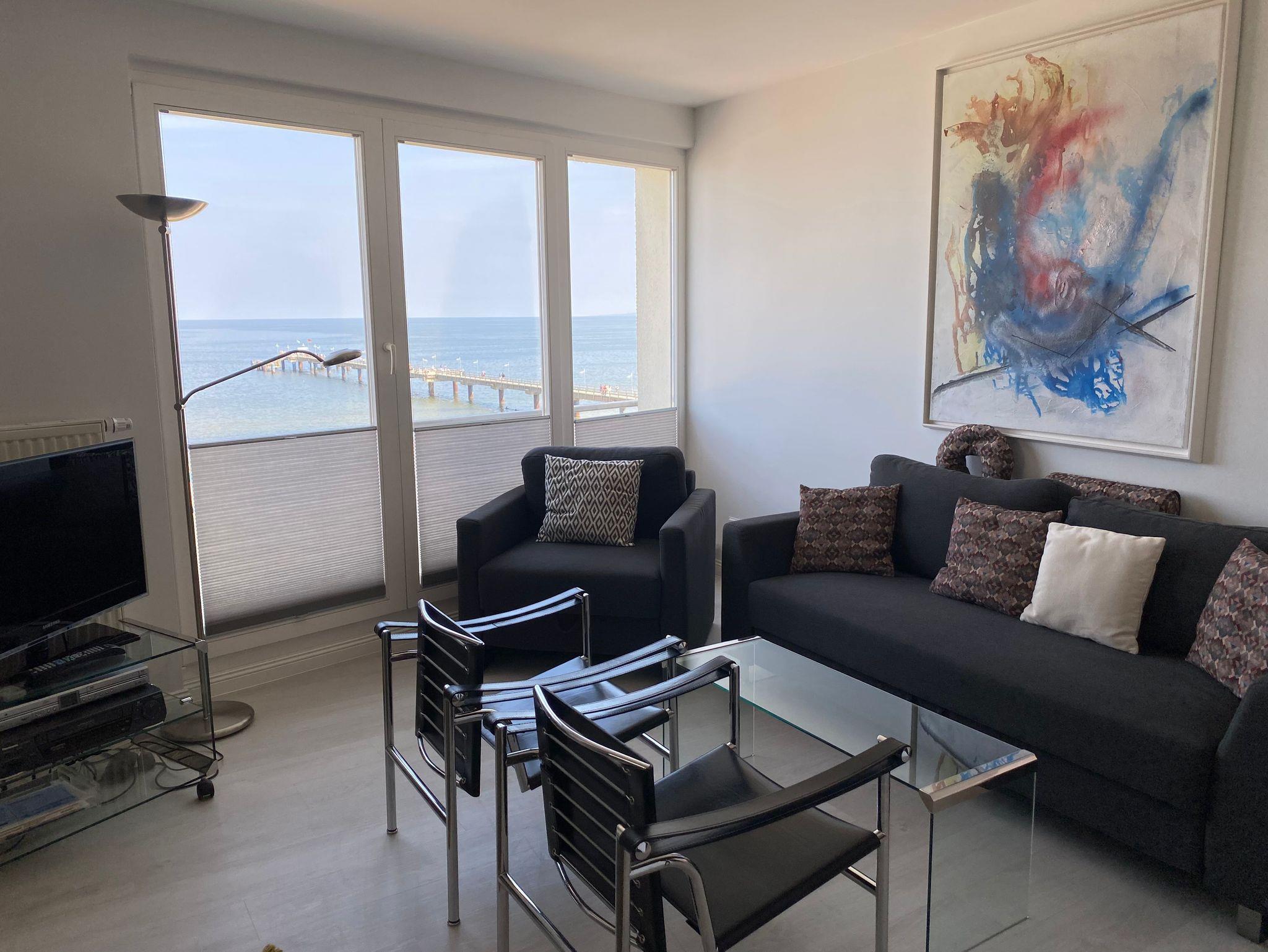 Die Ferienwohnung Meerblick liegt im 2 OG und ist mit einem Aufzug erreichbar. Das schöne Zweiraumapartment mit Panoramameerblick ist liebevoll und sehr persönlich eingerichtet. Zur Wohnung gehören neben dem großzügigen Wohnraum, das Schlafzimmer mit Boxspringebtt sowie eine kleine separate Komplettküche und zwei Bäder mit Dusche bzw. Badewanne und Waschmaschine. Ebenfalls steht Ihnen ein Tiefgaragenplatz bis 1,70m Fahrzeughöhe zu Verfügung.