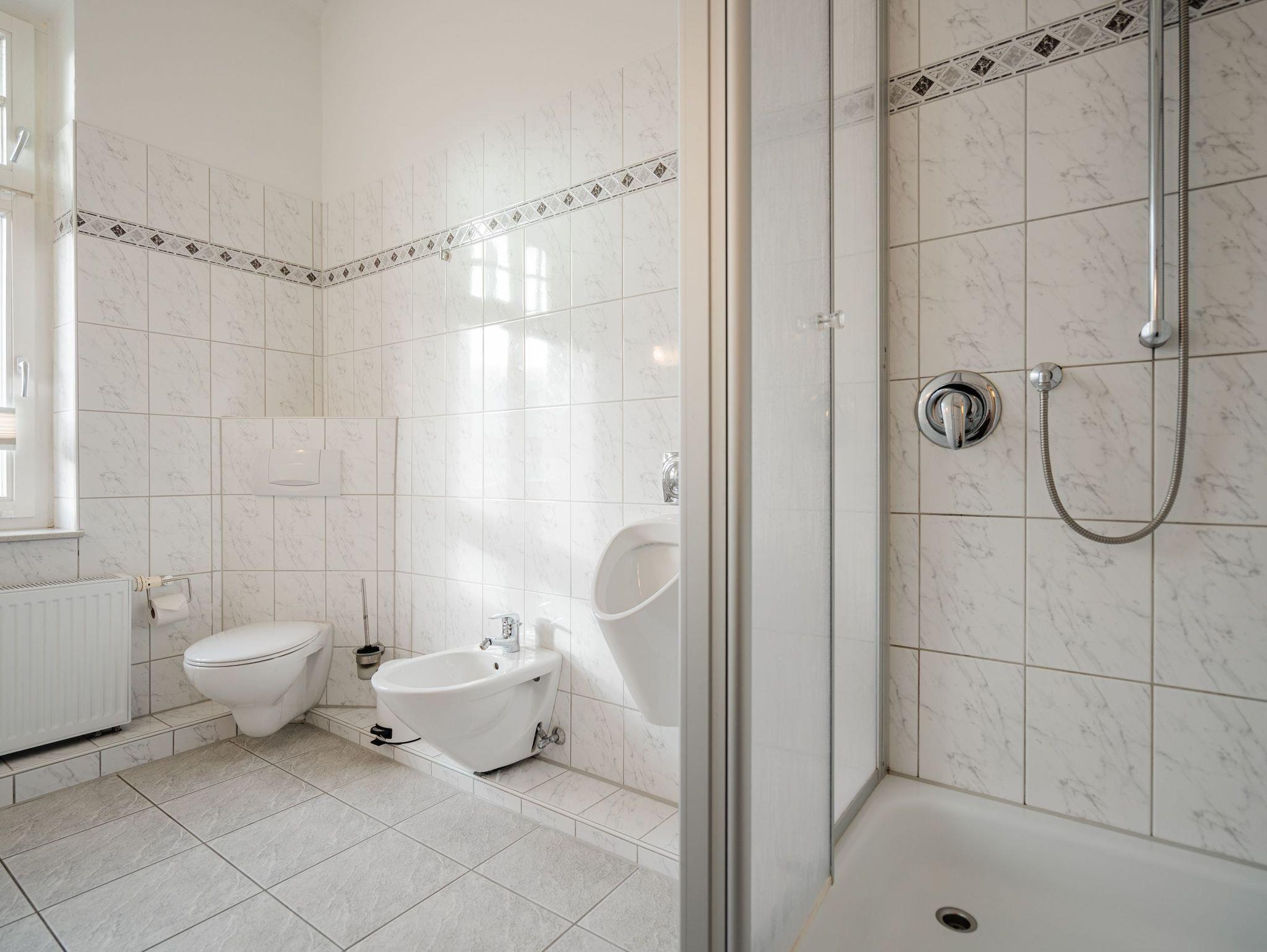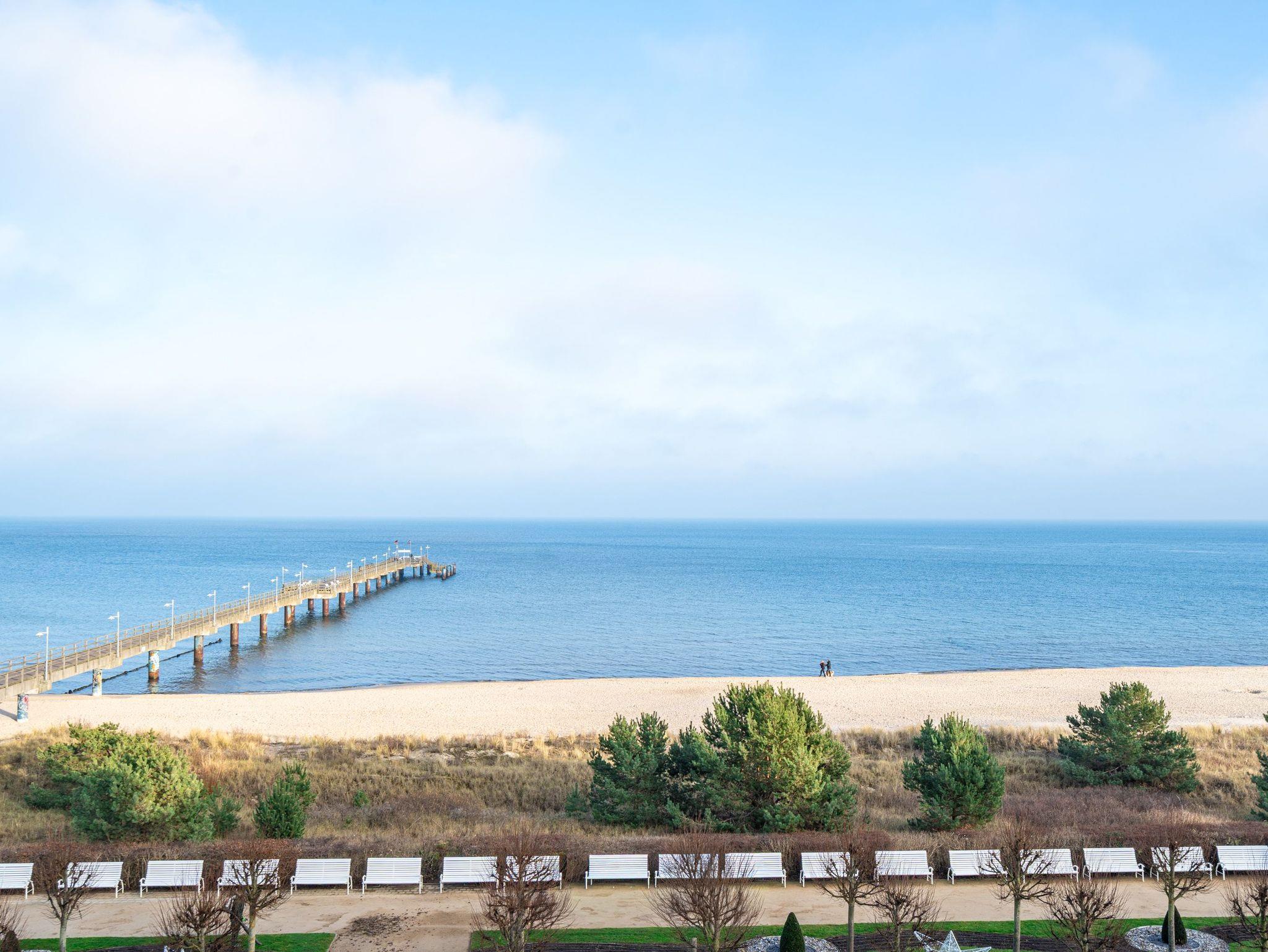 Ein atemberaubender Blick auf das Meer und die pommersche Bucht bietet sich hier - fantastische Aussichten also und dies nicht nur in Hinsicht auf die Blickachsen! Das Appartement 12 ist eine wunderschöne 3-Raum-Ferienwohnung und begrüßt Sie im 3. Obergeschoss der Villa Dora. Entstanden ist ein modernes Domizil, das durch seine wohnliche Gemütlichkeit besticht. Auf 70 qm finden bis zu 4 Personen genügend Platz für einen erholsamen Urlaub. Der lichtdurchflutete Wohnbereich ist mit einer bequemen Sitzgruppe und Flat-TV ausgestattet, hier findet auch der großzügige Essbereich seinen Platz. Die farbigen Akzente und der tolle Ausblick werden Sie sicher begeistern! Die Küche ist komplett ausgestattet und separiert. Für die Nacht ist ein Schlafzimmer mit Doppelbett (1,60m x 2,00m) vorhanden, es ist ein Durchgangszimmer zum zweiten kleinen Schlafzimmer mit einem Etagenbett (0,90m x 1,90m - ideal für Kinder). Ein großes Bad mit zwei Waschbecken, WC, Bidet und Dusche ergänzt die Wohnung. Auch der schöne Balkon mit Meerblick wird sicher schnell zu Ihrem Lieblingsplatz! Für Ihren Komfort sind die Betten bei der Anreise bezogen und Handtücher liegen bereit. Für kleine Gäste kann ein Kinderreisebett (findet im Kinderzimmer Platz) und ein Kinderhochstuhl bestellt werden. Für Ihren PKW steht Ihnen ein Parkplatz vor dem Haus zur Verfügung.