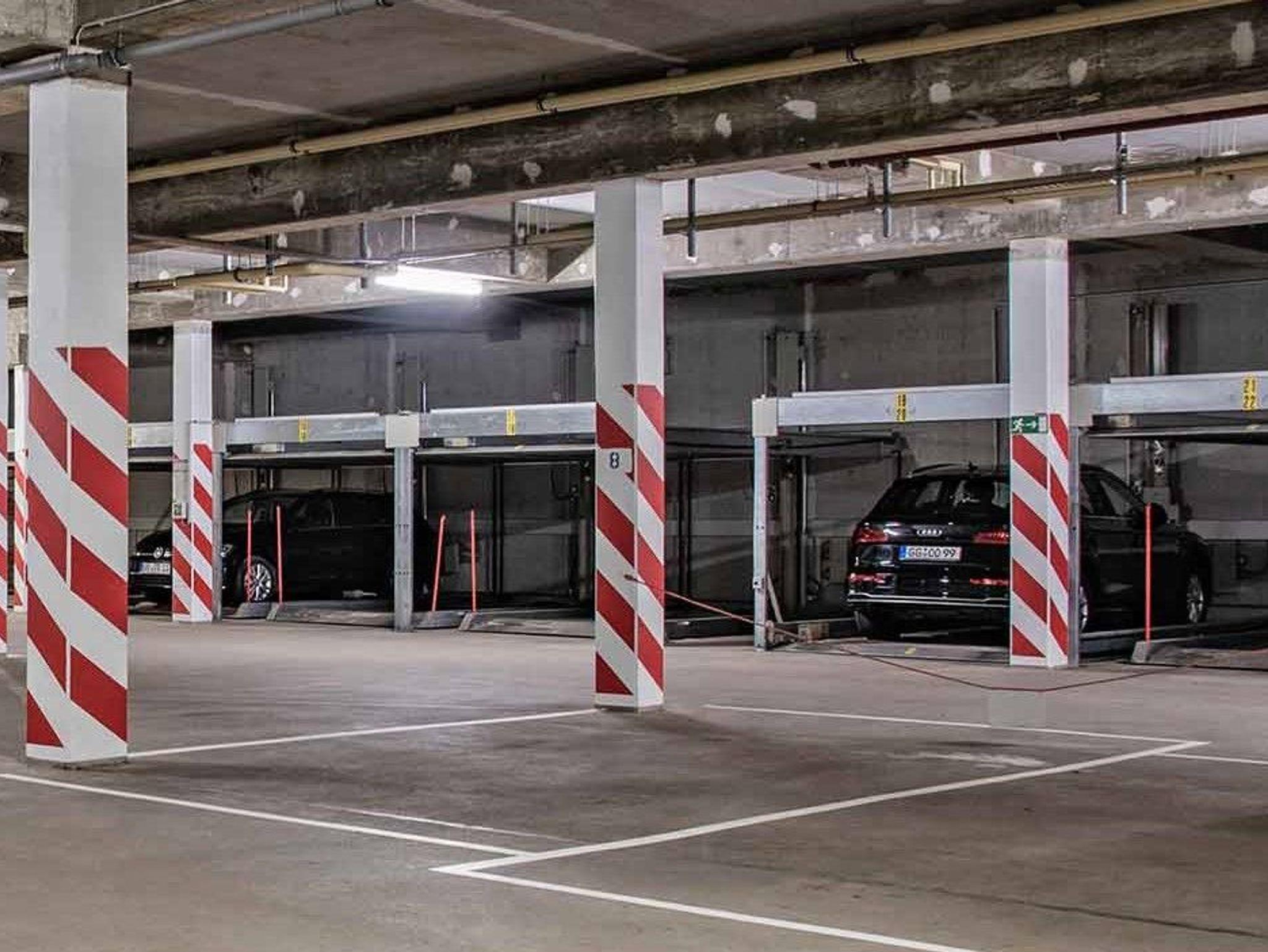 Dieser Wohnung ist ein Stellplatz in einem Parksystem der Tiefgarage zugeordnet (für PKW bis max. 1,70 m Höhe und 5,00 m Länge).