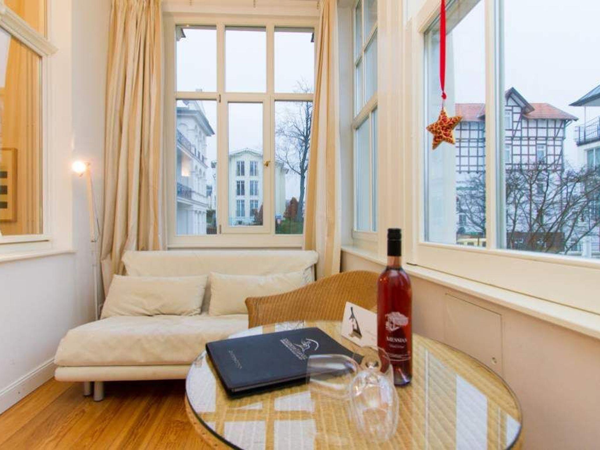 Die Ferienwohnung 2 in der Villa Artemis empfängt Sie im Hochparterre des Hauses und ist zur Seeseite gelegen. Auf 45 qm bietet Ihnen dieses 2-Raum Appartement eine separate Küche mit Essbereich, einen Wohnbereich in der Licht durchfluteten, verglasten Veranda und ein Schlafzimmer mit Doppelbett. Klare Linien, hochwertige Materialien, von der Bulthaup Küche über helle Pitch Pine Böden bis hin zum Flachbild Fernseher, Sie werden begeistert sein. Ein DVD-Player kann Ihnen auf Anfrage zur Verfügung gestellt werden.