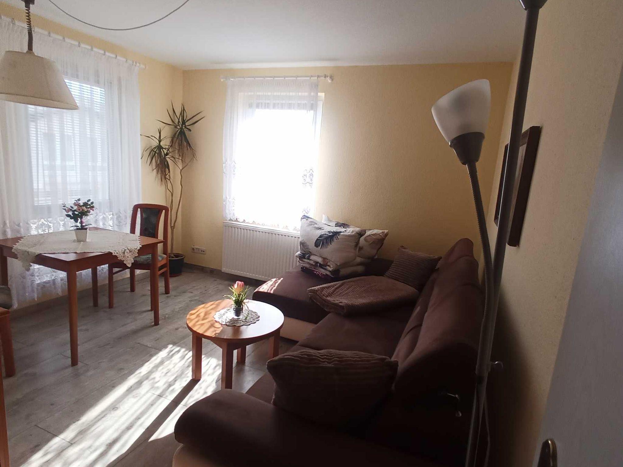 Die Wohnung (20 m²) besteht aus einem Wohnraum mit Doppelbettschlafcouch, Zentralheizung, Sat-TV/ Radio mit Pantyküche (2-E-Platten, Kühlschrank, Wasserkocher, Toaster, Kaffeemaschine usw.) Dusche /WC