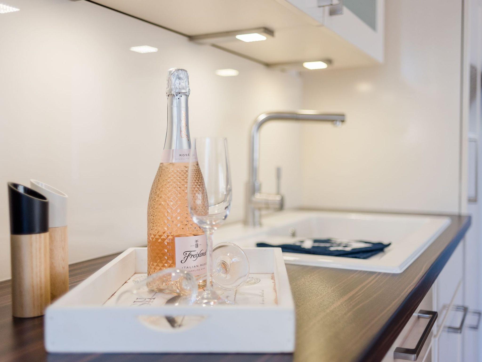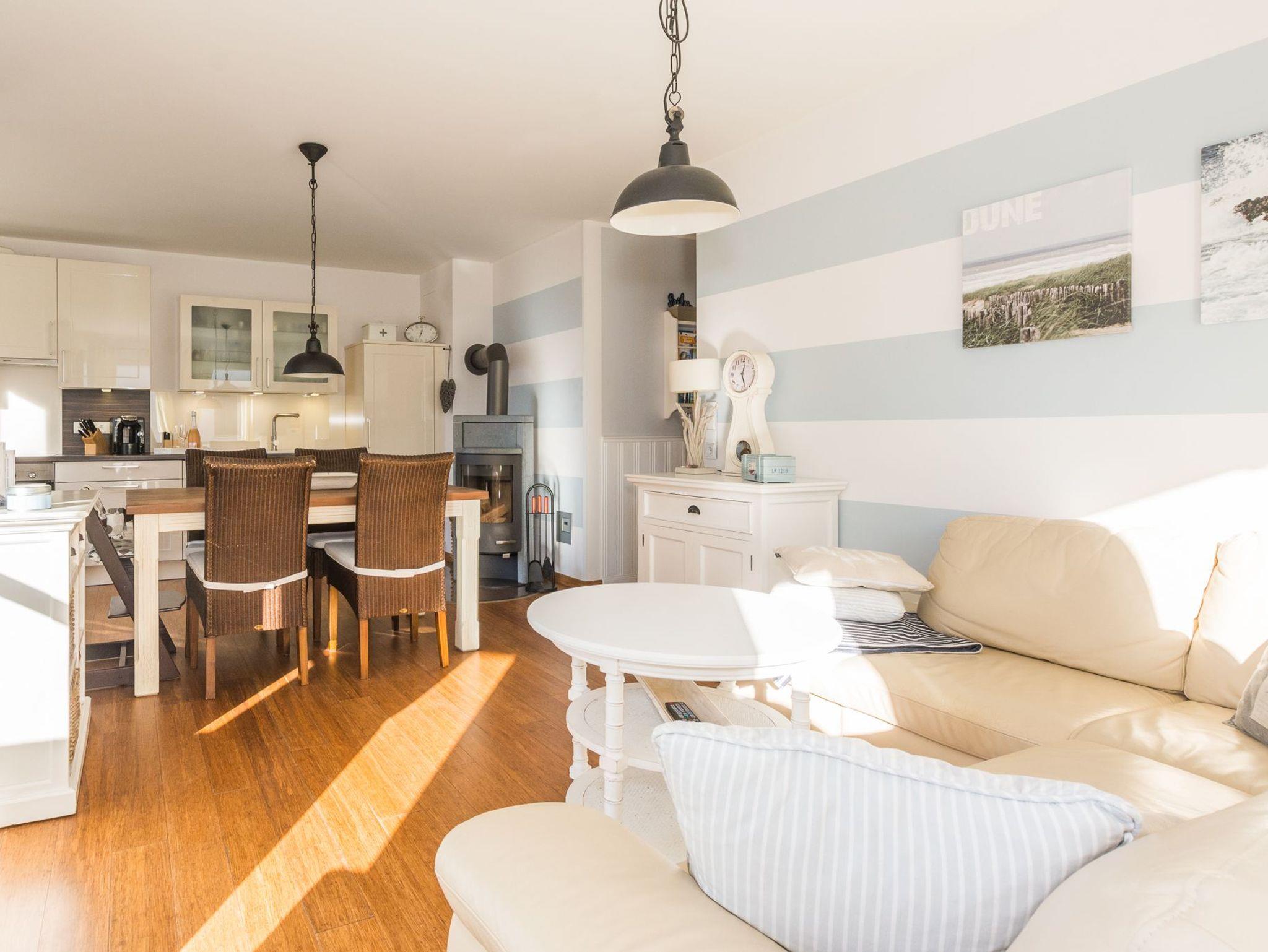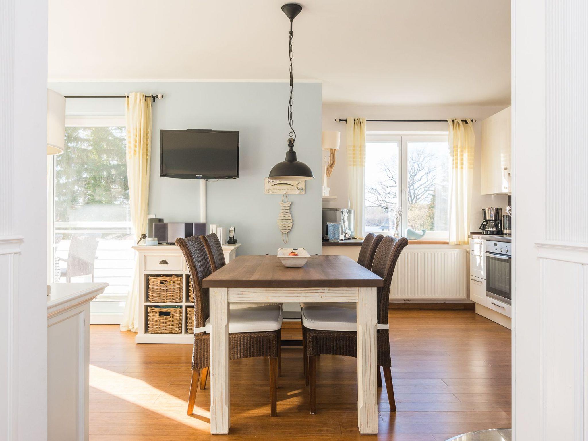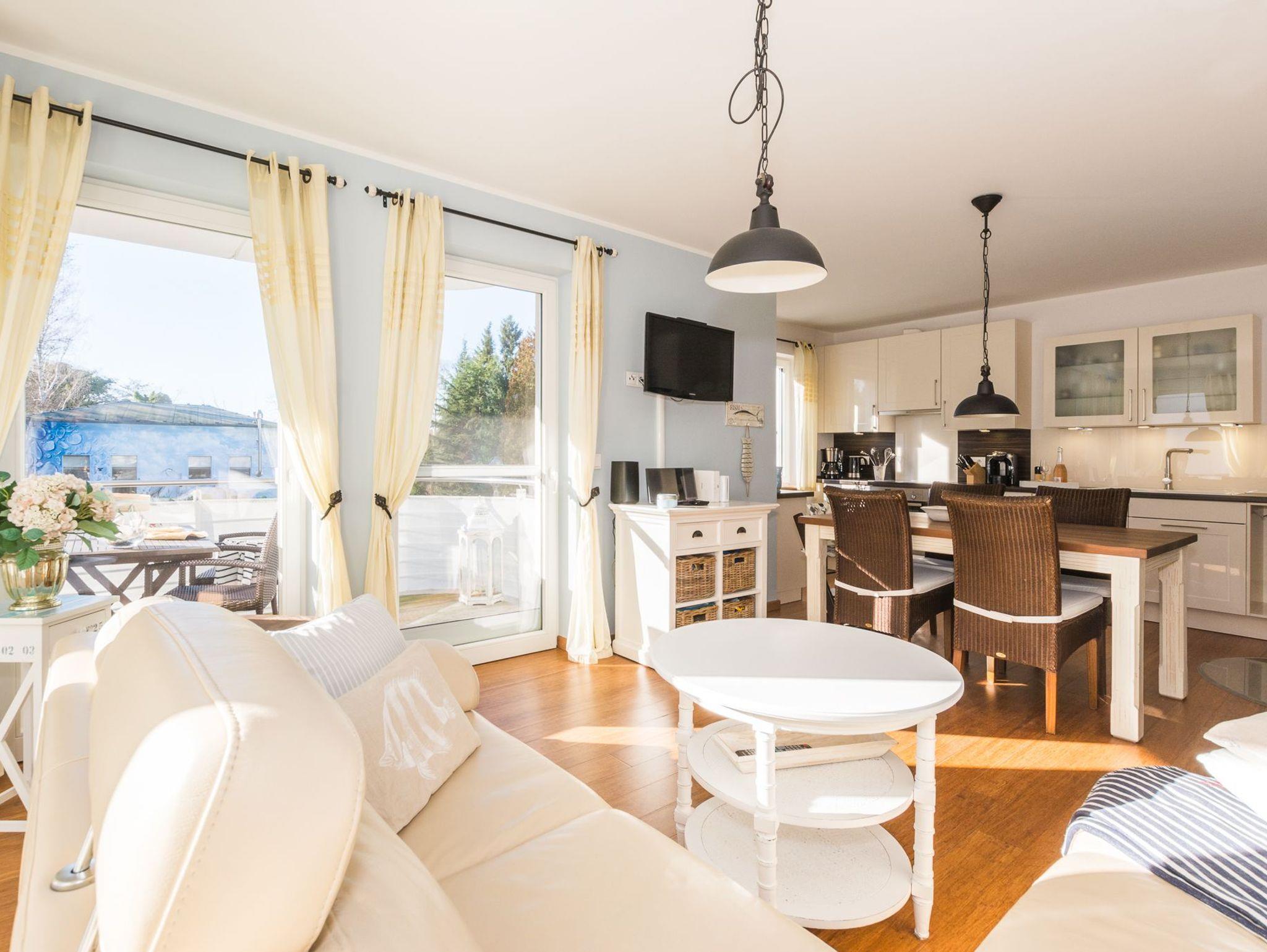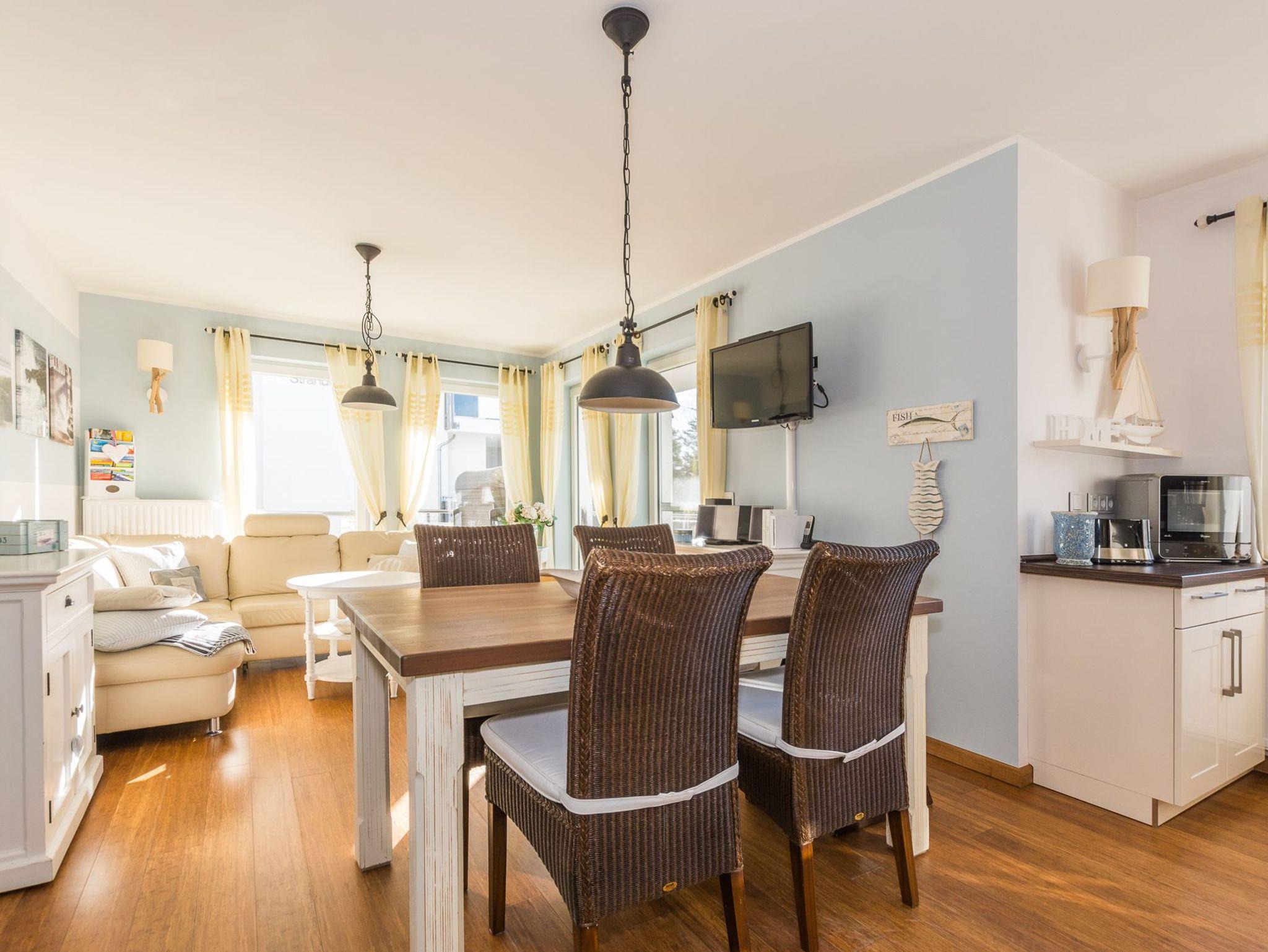 Ferienwohnung C1.3 Strandgut ? Urlaub mit Meeresflair und Komfort. Willkommen in der stilvollen Ferienwohnung Strandgut ? Ihrem Rückzugsort in der exklusiven Seeresidenz Atlantik, nur einen Wimpernschlag von der Ostsee entfernt. Auf großzügigen 68 m² im 1. Obergeschoss erwartet Sie ein geschmackvoll eingerichtetes 3-Raum-Appartement für bis zu 4 Personen, das keine Wünsche offenlässt. Der lichtdurchflutete Wohnbereich mit offener, voll ausgestatteter Küchenzeile bietet Ihnen alles, was das kulinarische Herz begehrt ? vom Cerankochfeld über Spülmaschine, Kühlschrank mit Gefrierfach, Mikrowelle bis hin zur Tassimo-Kapselmaschine. Von der Küche aus können Sie sogar einen Hauch Seeblick erhaschen. Die gemütliche Sofaecke mit Flat-TV, Blu-Ray-Player und Kaminofen lädt zum Entspannen ein ? ob an kühleren Abenden oder nach einem langen Strandtag. Der 9 m² große Ostbalkon mit Gartenmöbeln verspricht sonnige Stunden mit frischer Meeresbrise. Zwei komfortable Schlafzimmer sorgen für erholsame Nächte: eines mit einem Doppelbett (1,80 x 2,00 m), das zweite mit einem französischen Doppelbett (1,60 x 2,00 m) ? beide ausgestattet mit Flat-TV und Kleiderschrank. Ein modernes Duschbad mit Doppelwaschtisch und ein zusätzliches Gäste-WC bieten genügend Platz für alle Gäste. Ein besonderes Extra: In den Sommermonaten steht Ihnen ein fester Strandkorb am Strand kostenlos zur Verfügung. Für Ihr Fahrzeug ist ein Tiefgaragenstellplatz (Nr. 42, Einfahrtshöhe 2,00 m) reserviert ? bequem und sicher. Genießen Sie maritimes Wohnen mit Stil ? willkommen in Ihrem Feriendomizil Strandgut!