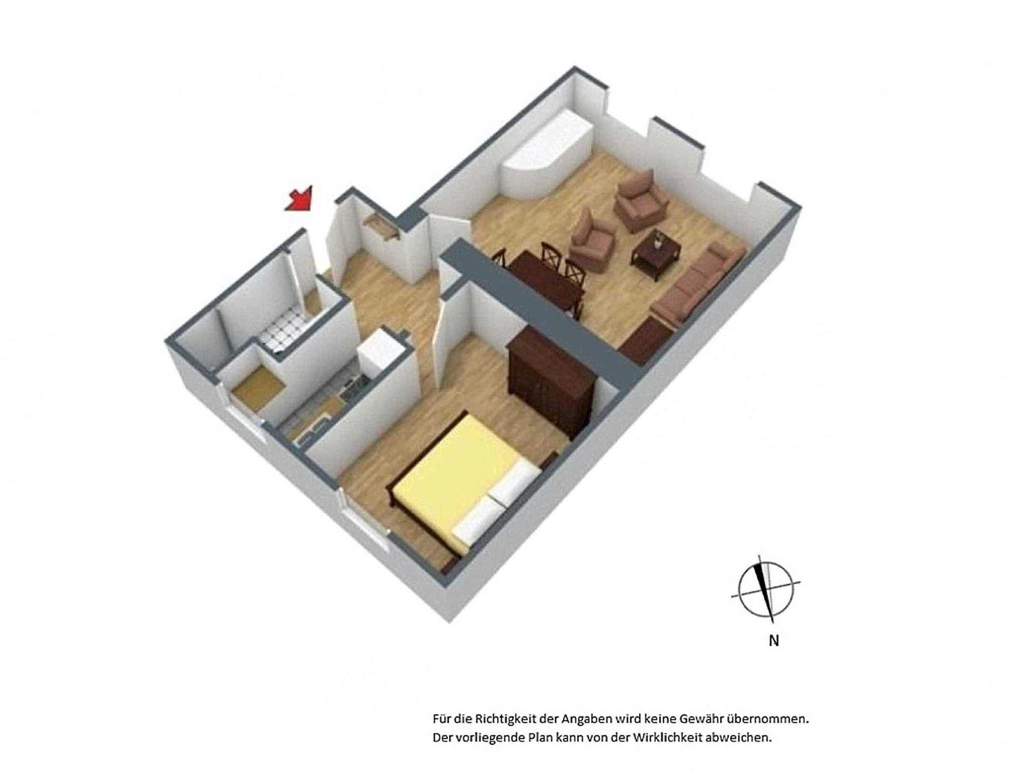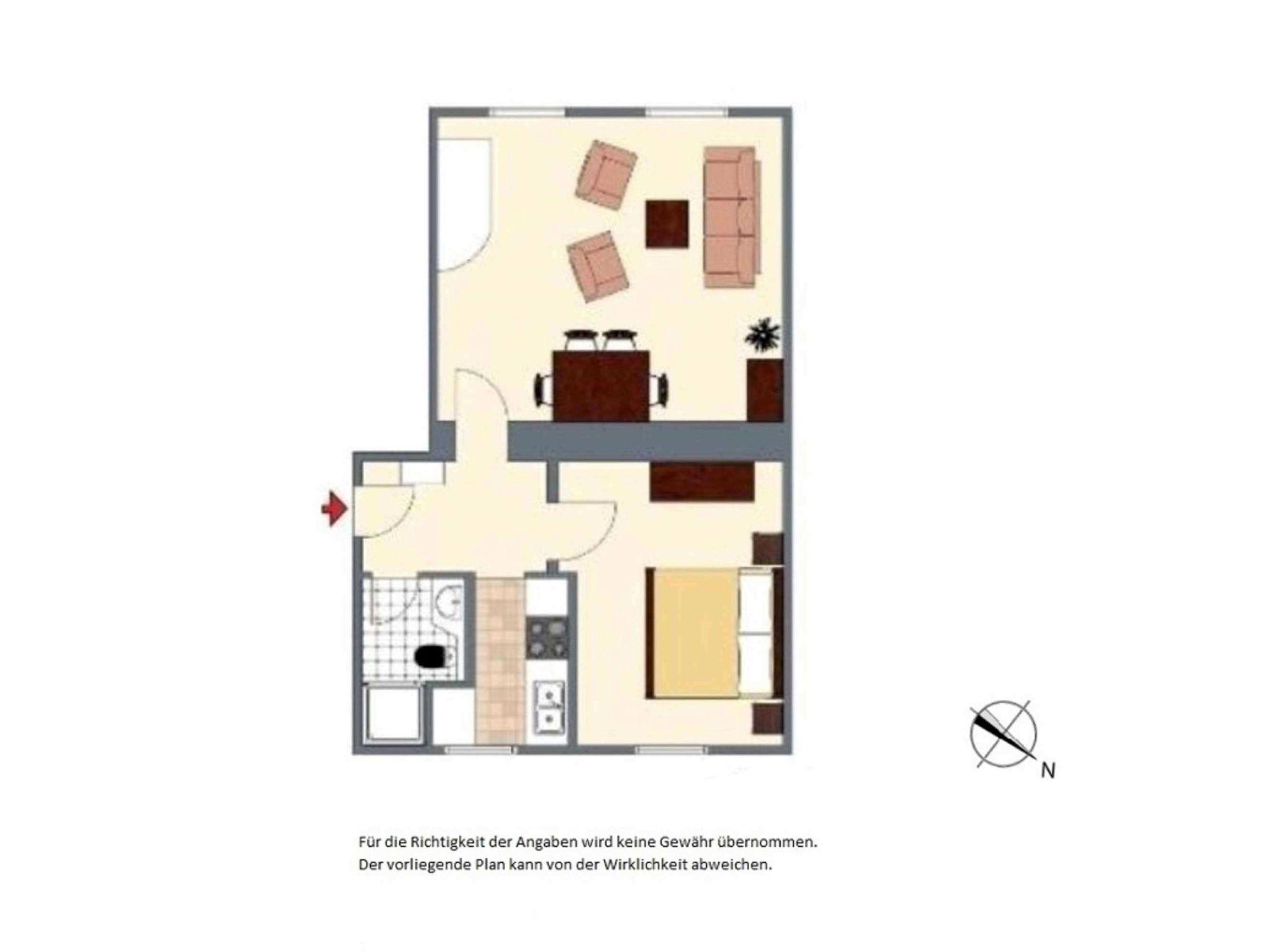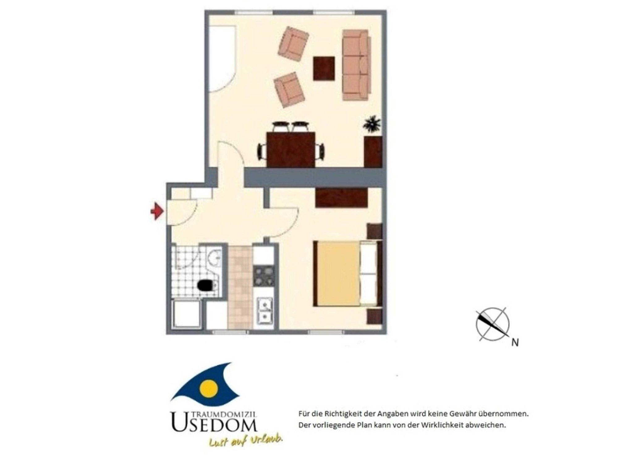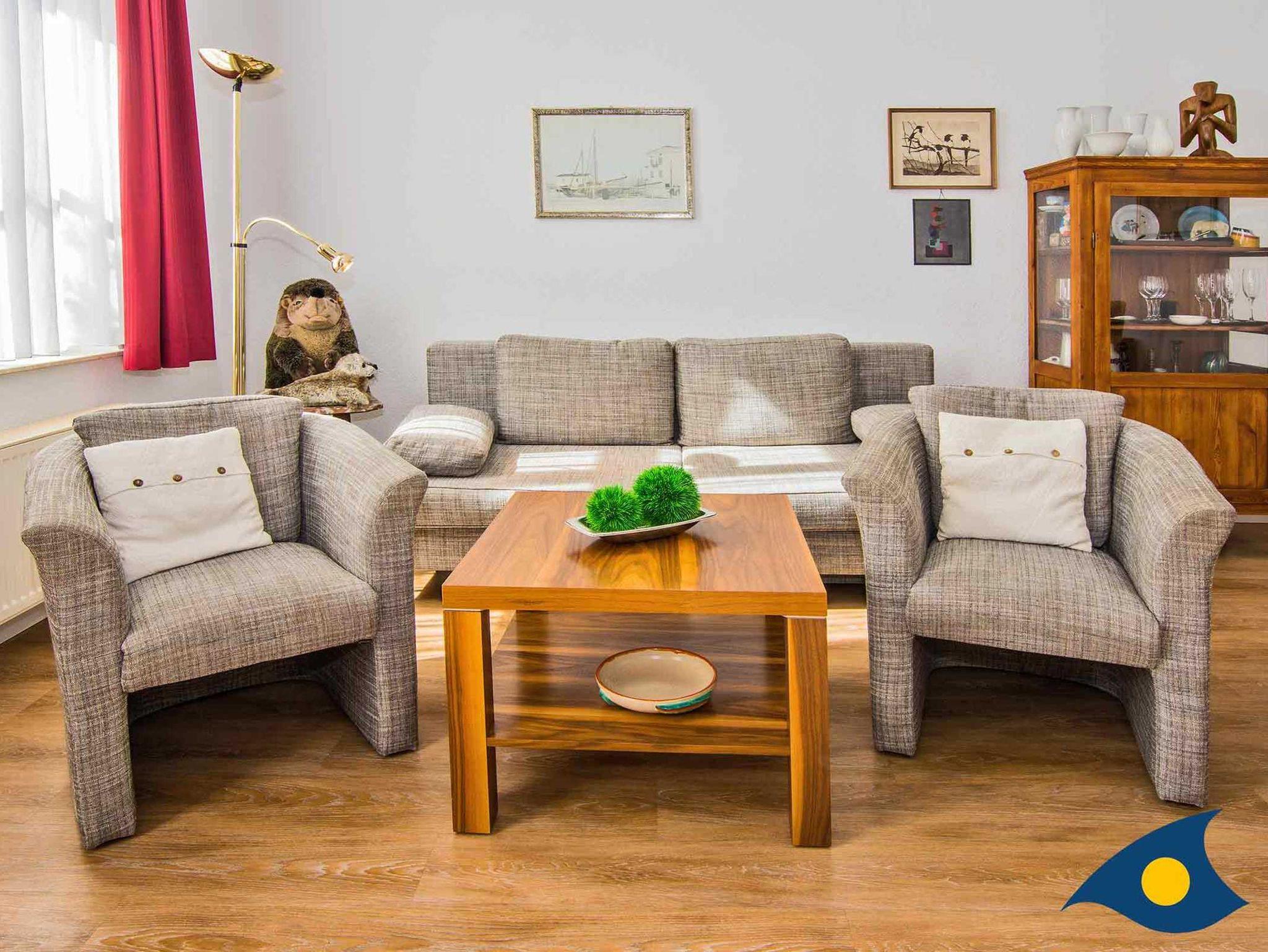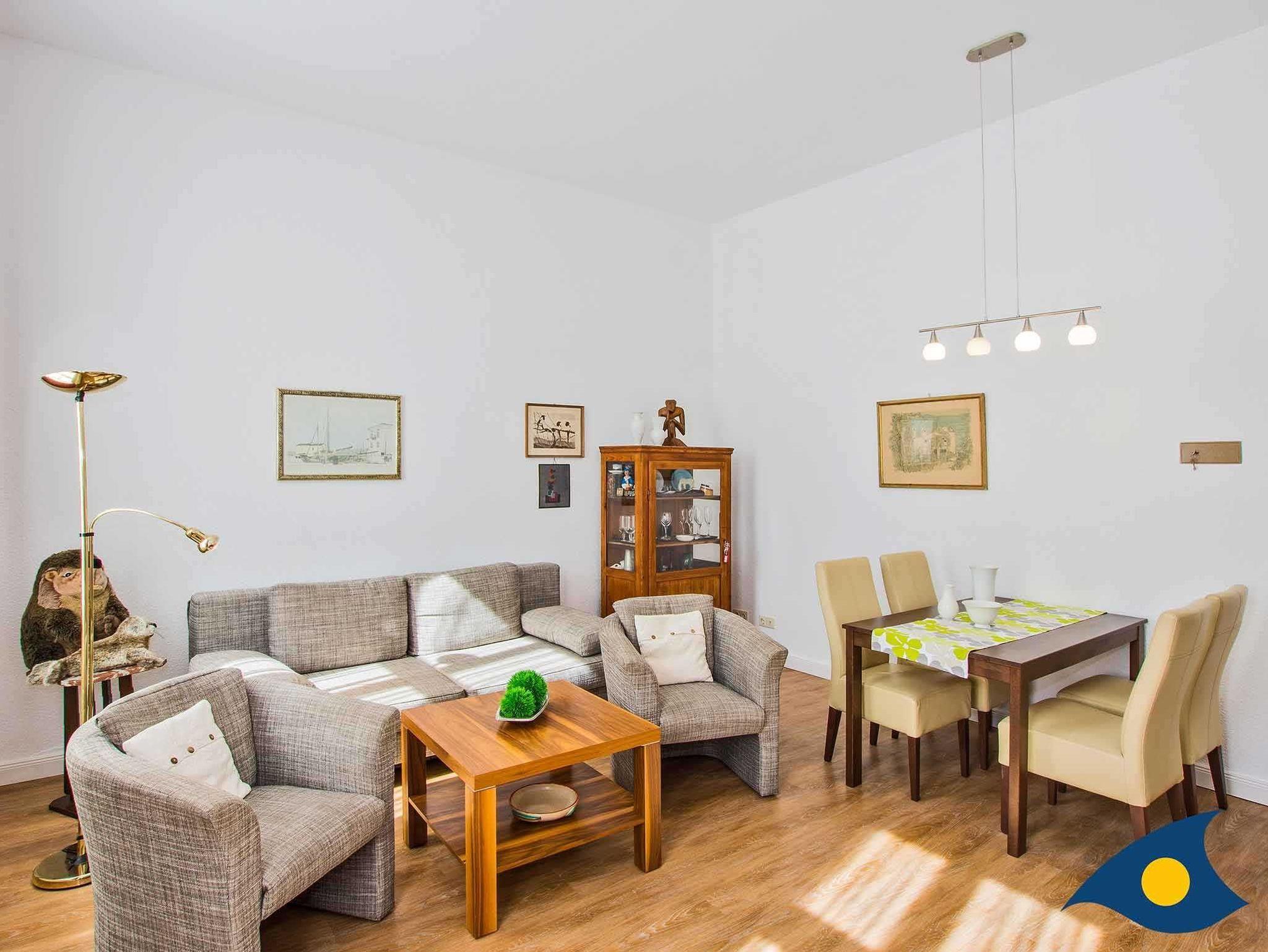 Die Zwei-Raum-Ferienwohnung mit 48 qm Wohnfläche befindet sich im Erdgeschoss des Hauses und ist über wenige Stufen bequem zu erreichen. Sie bietet Platz für 2 Erwachsene und bis zu 2 weiteren Personen (2 Kinder oder 1 Erwachsenen). Die Wohnung besteht aus einem geräumigen Wohn- und Esszimmer (inkl. einer Aufbettungsmöglichkeit für 3. und ggf. 4. Person) auf der Südseite und einem separaten Schlafraum zur anderen Seite des Hauses. Die separate Küche verfügt über einen Kühlschrank mit Kühlfach, Spülmaschine, Mikrowelle, sowie Herd und Backofen. Zur Ausstattung gehören außerdem SAT-TV und Radio. Ein PKW-Stellplatz am Haus und ein abschließbarer Fahrradraum stehen zur Verfügung.