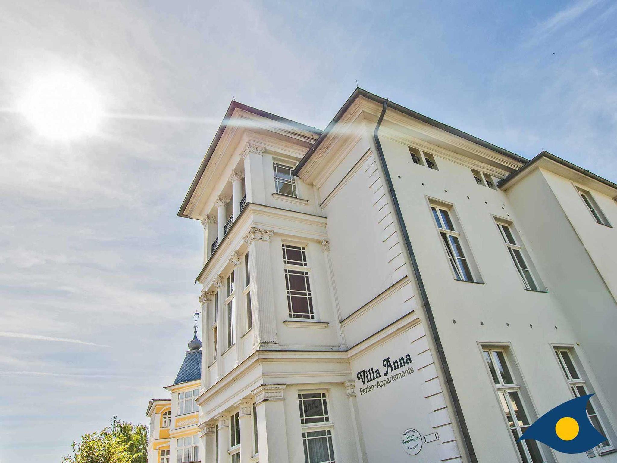 Die Villa Anna, erbaut um das Jahr 1900 im Stile der klassischen Bäderarchitektur, liegt im historischen Ortskern Bansin. Von hier aus sind es nur ca. 100 Meter zum Sandstrand wie auch zum Hochwald mit Buchen und Kiefern. Die Villa Anna ist der ideale Ausgangspunkt, um die Kaiserbäder sowie das wald- und binnenseereiche Hinterland zu erkunden.