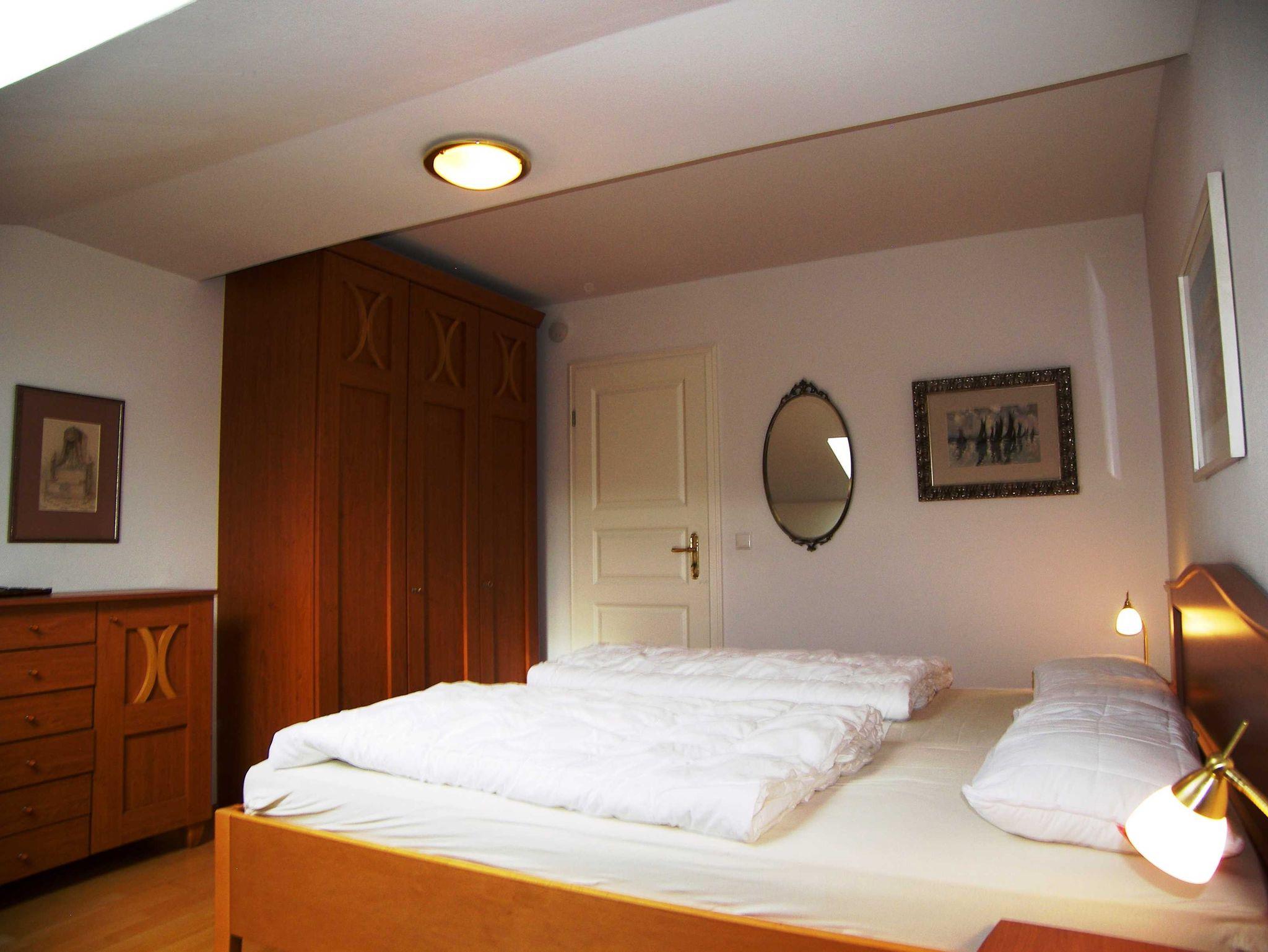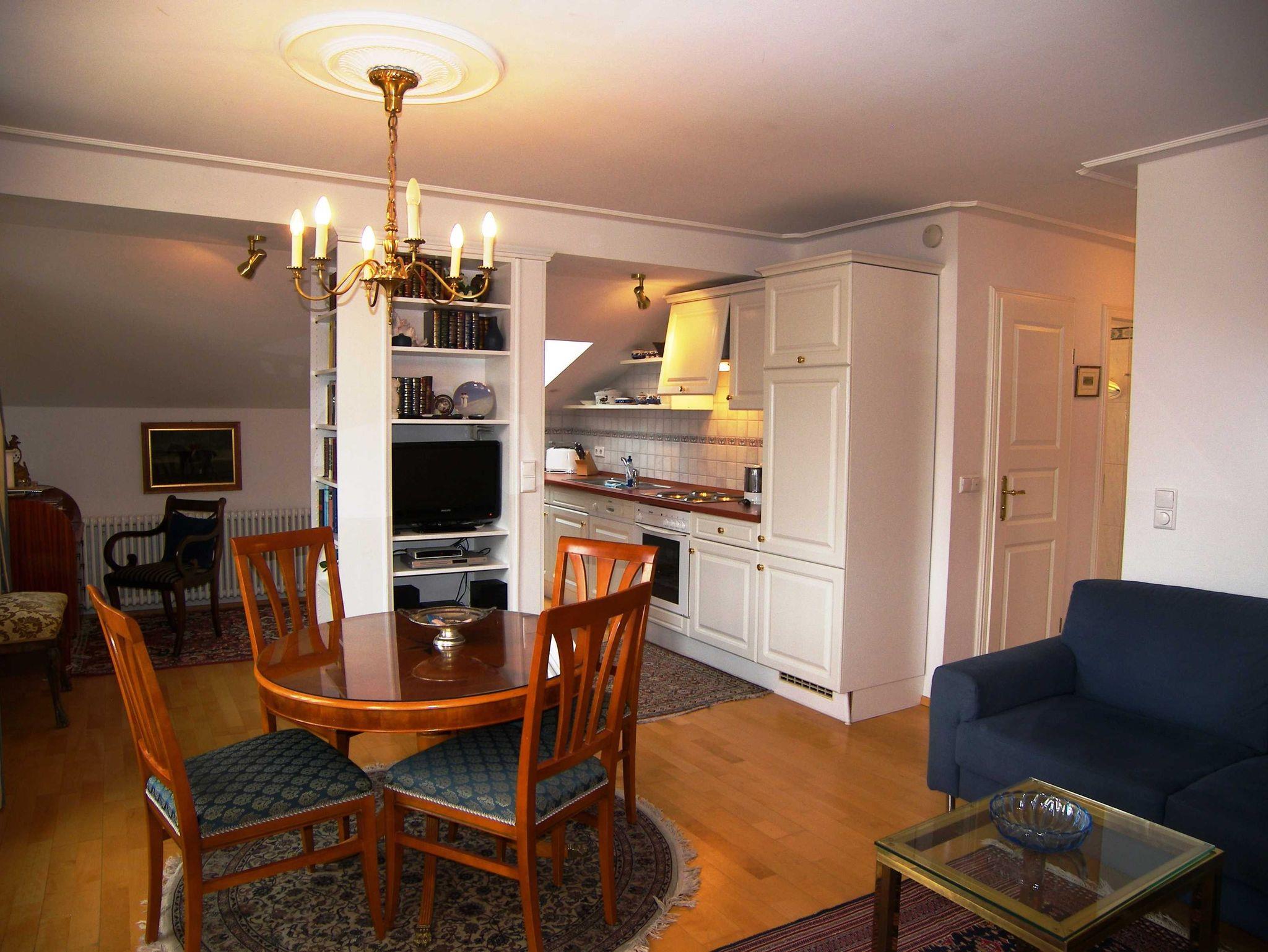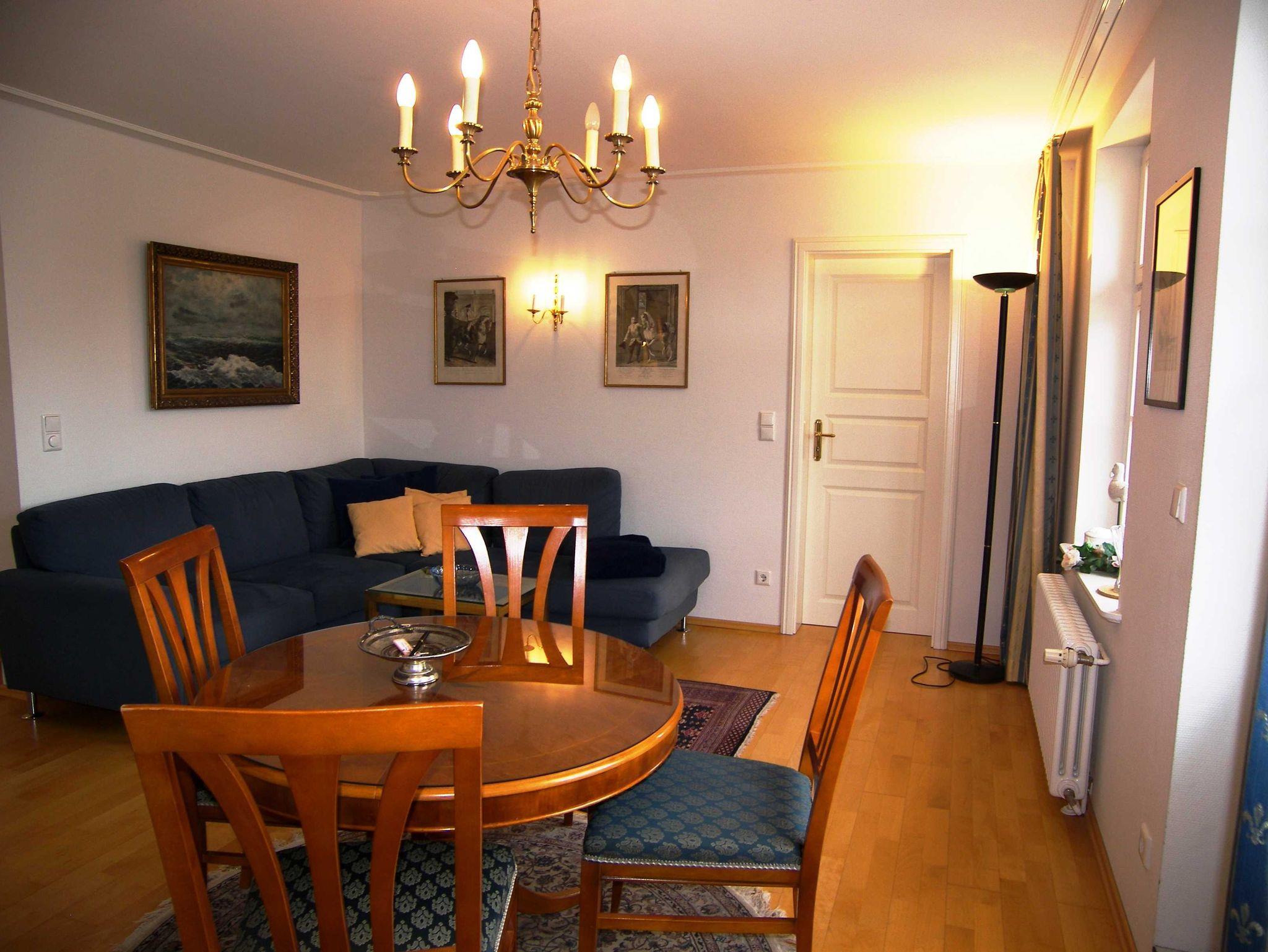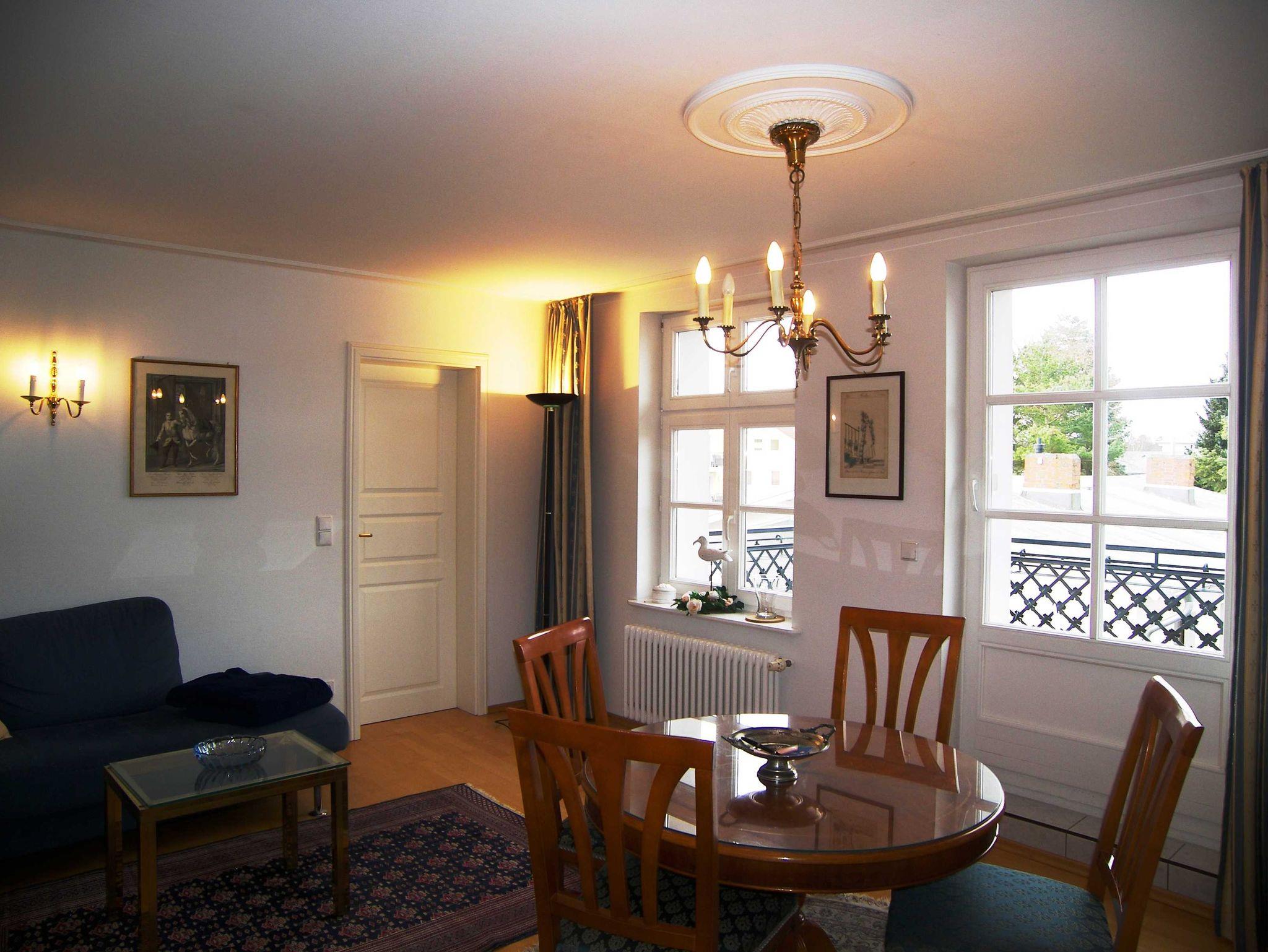 Die Wohnung ist exklusiv mit Stilmöbeln in Kirschbaum und Mahagoni, hochwertigem Bucheparkett, Stuckdecken und Kassettentüren eingerichtet. Der stillvolle Wohn- Essbereich ist mit einer Couch, Flachbild-TV und DVD-Player sowie einer Stereo-Anlage und Esstisch eingericht. Die offene Einbauküche ist mit Backofen, Spülmaschine, Kühlschrank mit Gefrierfach, Kaffeemaschine, Wasserkocher und Toaster ausgestattet. Das erste der beiden Schlafzimmer ist mit einem Doppelbett ausgestattet, das zweite mit zwei Einzelbetten. Im hochwertigen Bad mit Glasdusche müssen sie außerdem auf Haartrockner und Schminkspiegel nicht verzichten. Die Wohnung besitzt einen sonnigen Balkon mit entsprechenden Möbeln. W-LAN steht Ihnen kostenfrei zur Verfügung.