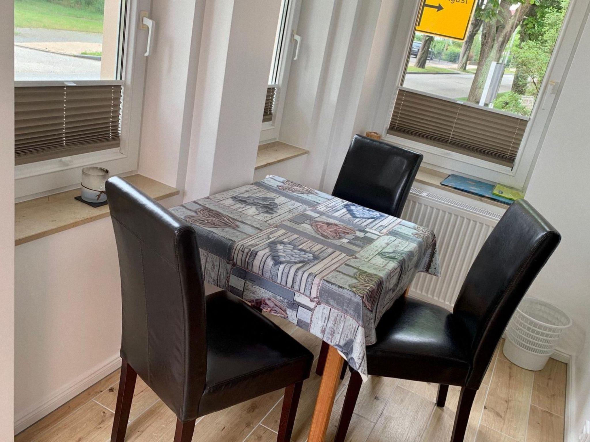 Your holiday accommodation has a living room/bedroom, kitchen, bay window with dining area and a bathroom. The bed in the bedroom consists of a double bed measuring 0.80 x 2.00 m. You can store the clothes you have brought with you in a wardrobe. The kitchen is equipped with a 2-ring ceramic hob, fridge, coffee machine, toaster and kettle. The bathroom has a shower, WC, washbasin and hairdryer. Linen and towels are included in the price - Your car can be parked in one of the free parking spaces in our courtyard. Of course you can also wash and dry your laundry in our launderette. You are welcome to bring your dog with you, but it must be kept on a lead.