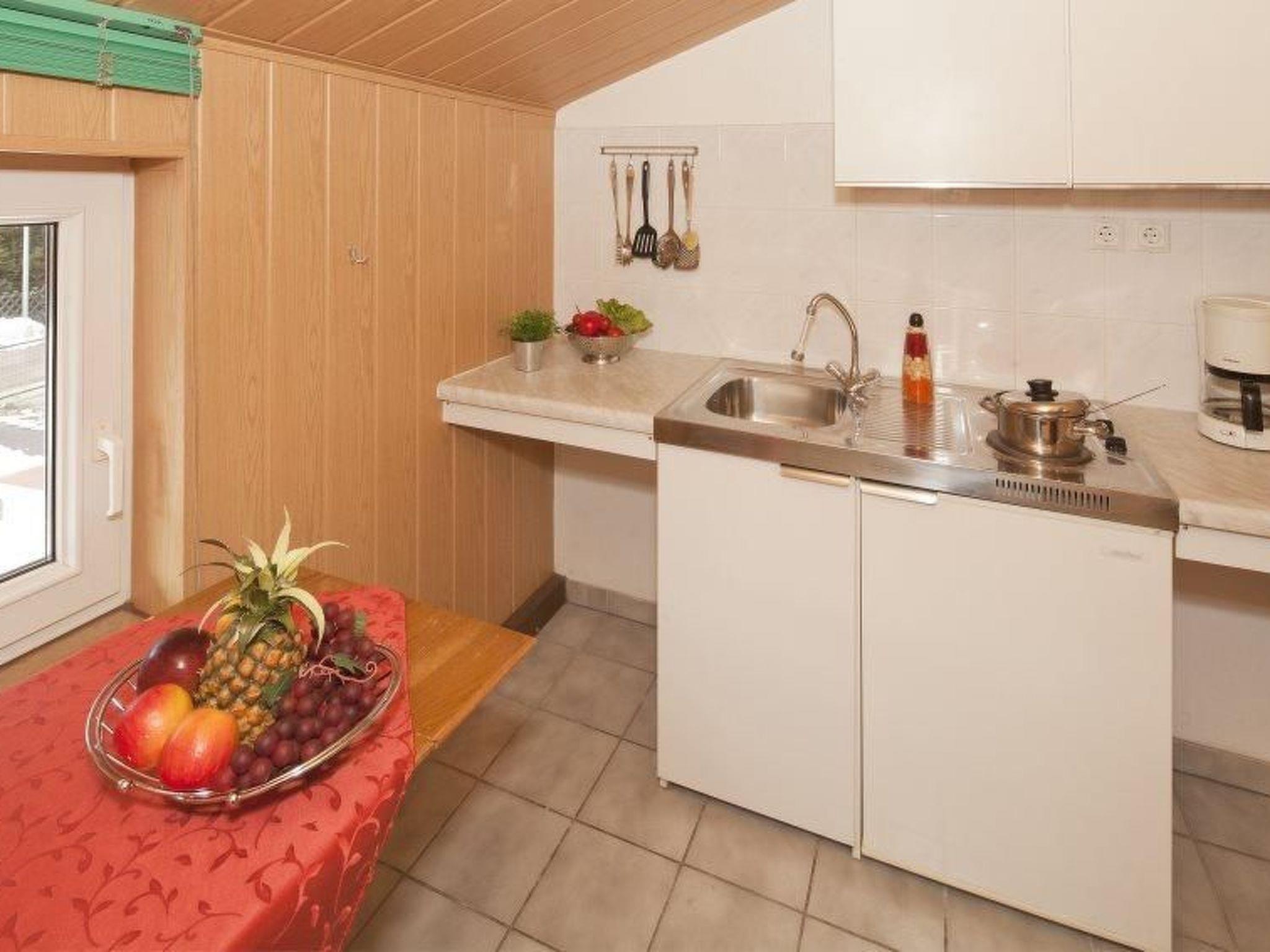 Your holiday accommodation has a bedroom, a living room, a little pantry kitchen and a bathroom. The bedroom is furnished with two single beds (80 x 190cm) and a wardrobe for your luggage. You can sit together at the dining table. The kitchen is equipped with a stove, coffee machine, fridge, toaster and kettle. The living room has a TV. The bathroom comprises a shower, a toilet and a washbasin. Bed linen and towels are included in the rental price. There is central heating. You can share use of the coin-operated washing machine and dryer.