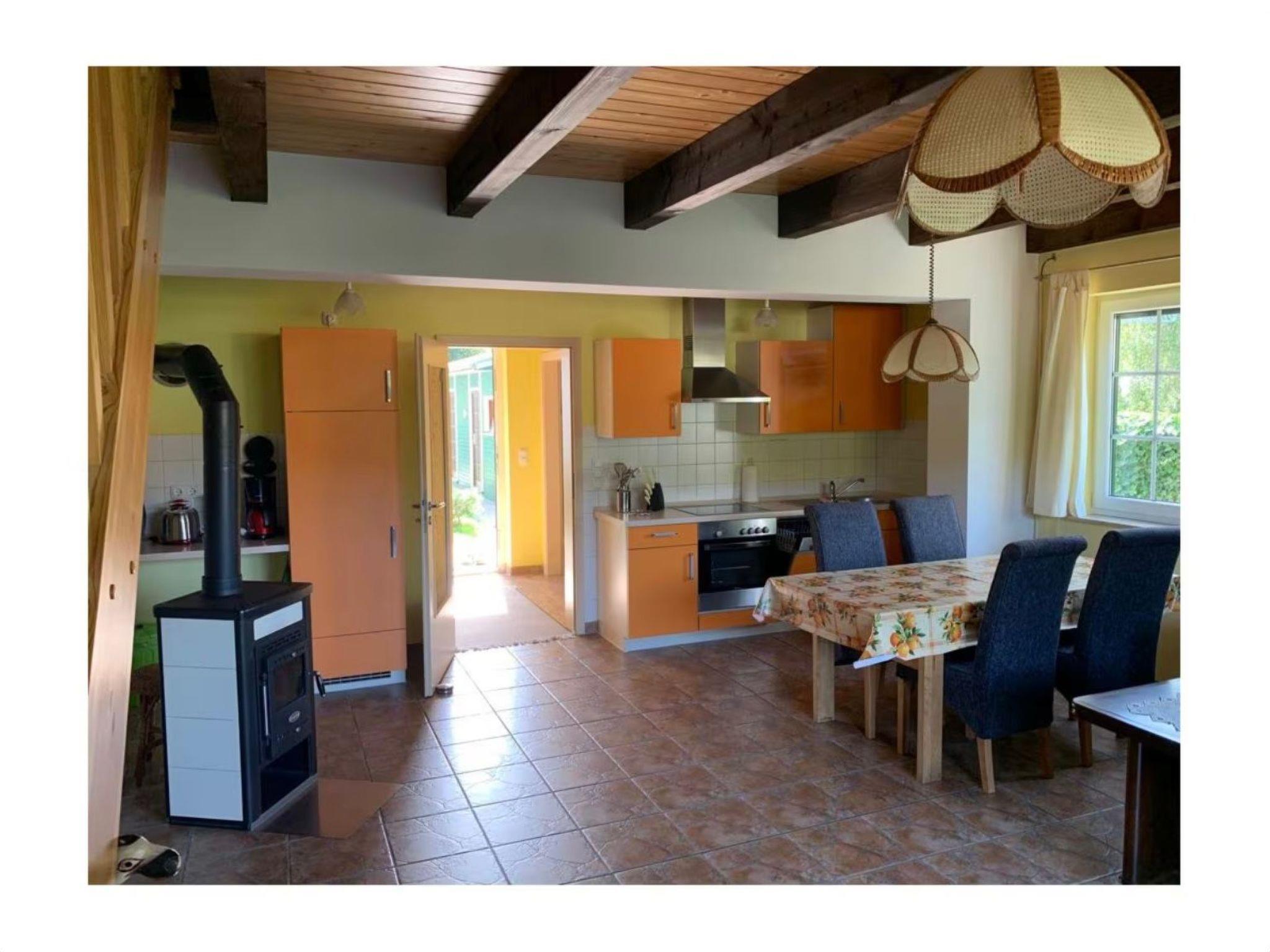 The ground floor offers a 35m2 living room with an integrated kitchen and a wood-burning stove, a bathroom with shower and a storage room. In the kitchen you will find - apart from the basic equipment - a freezer compartment, a dishwasher, a microwave, a toaster and an oven. The upper floor consists of two bedrooms and a guest WC. One of the bedrooms is furnished with a double bed (two mattresses 90x200cm), the other bedroom with 2 separate beds (90x200cm). External blinds are fitted to all windows in the house. You can use a washing machine and tumble dryer across the street for doing your laundry (for a fee). WLAN is available. Please note that there is ONE car parking space per house, which is not suitable for pickups or additional trailers