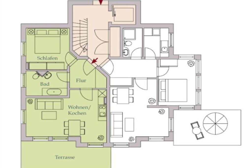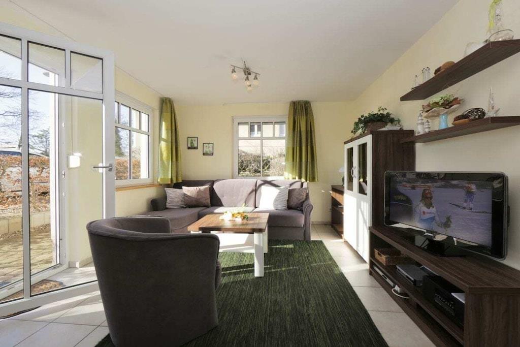 Die 46 qm große Nichtraucher-Ferienwohnung im Erdgeschoß mit Terrasse zur Süd-/ Westseite ist komfortabel ausgestattet und verfügt über einen Schlafraum mit einem Doppelbett. Der Wohnraum verfügt über TV, Radio, CD-Player, DVD-Player sowie eine komplett ausgestattete Küche mit einem Essplatz für 4 Personen. Das Bad ist mit Dusche und WC ausgestattet. Auf dem Grundstück befindet sich eine abschließbare Unterstellmöglichkeit für Fahrräder. Ein PKW-Stellplatz ist der Ferienwohnung auf dem Grundstück zugeordnet.