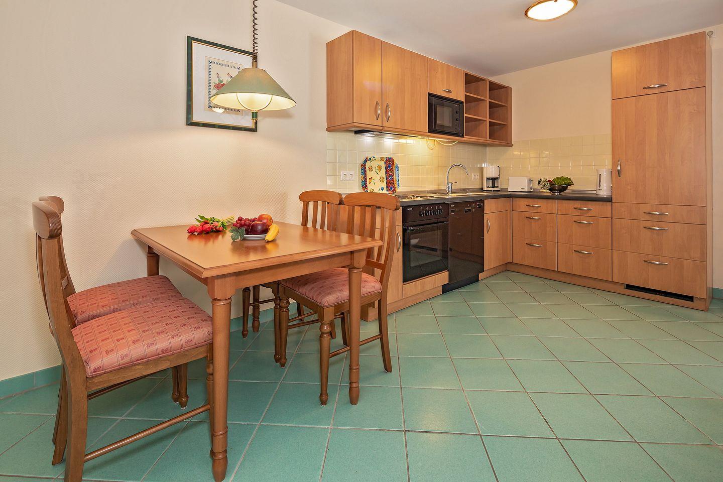 Im Haus ist ein Lift vorhanden. Gegen Gebühr könnt ihr Waschmaschine und Trockner im Haus nutzen. Ein Bügelbrett und Bügeleisen stehen im Waschraum für euch bereit. In der Anlage befindet sich eine Sauna, die euch täglich ab 17.00 Uhr zur kostenfreien Verfügung steht. Der Saunabereich im Großen Seehof ist im Zeitraum vom 02.03.2026 bis voraussichtlich Ende Mai 2026 aufgrund von Sanierungsarbeiten nicht nutzbar.