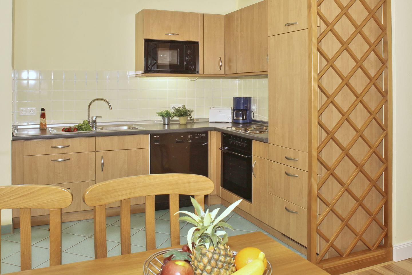Gegen Gebühr könnt ihr Waschmaschine und Trockner im Haus nutzen. Ein Bügelbrett und Bügeleisen stehen im Waschraum zur gemeinschaftlichen Nutzung für euch bereit. In der Anlage befindet sich eine Sauna, die euch täglich ab 17.00 Uhr zur kostenfreien Verfügung steht. Haustiere sind in dieser Wohnung nicht gestattet. Der Saunabereich im Großen Seehof ist im Zeitraum vom 02.03.2026 bis voraussichtlich Ende Mai 2026 aufgrund von Sanierungsarbeiten nicht nutzbar.