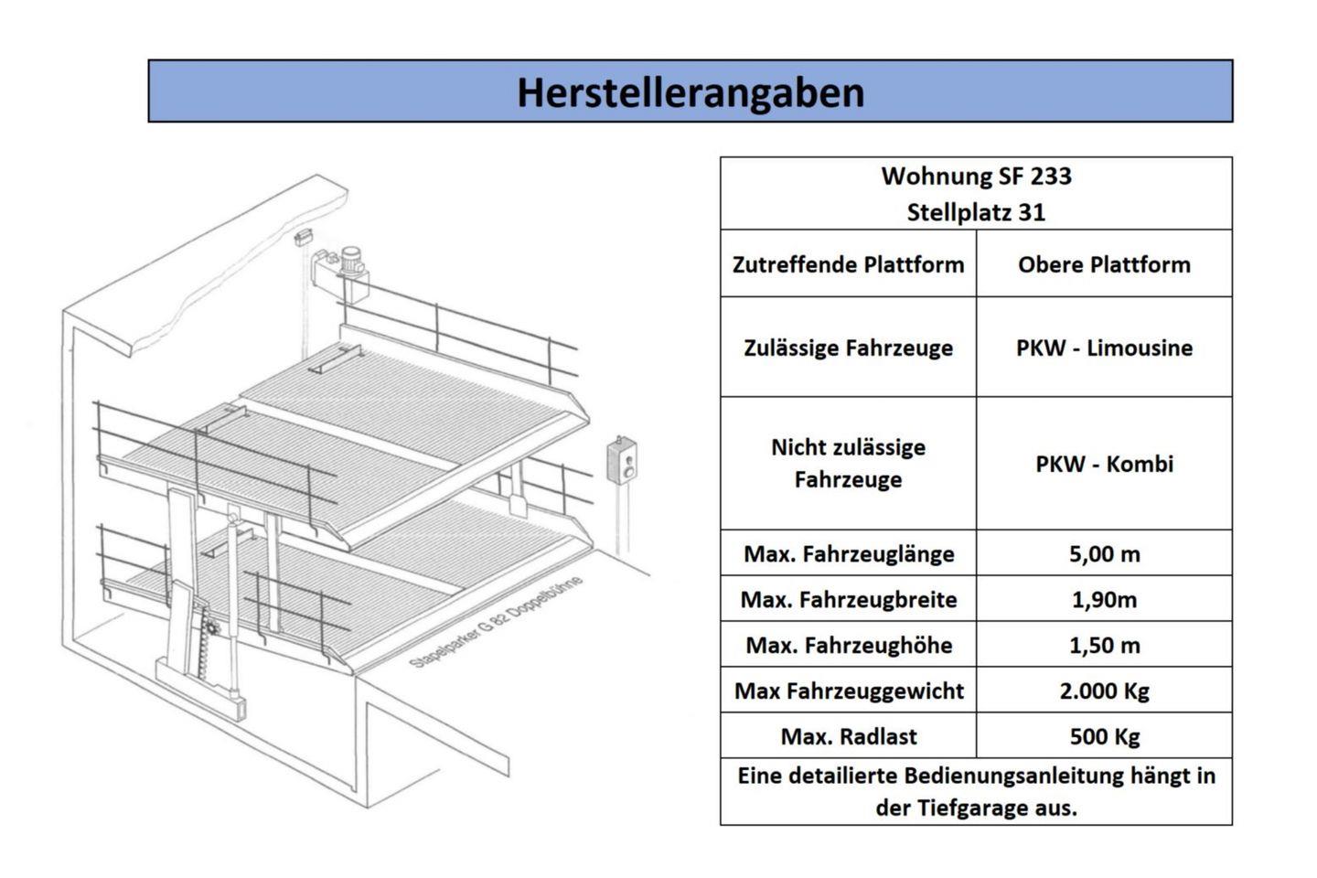Ihr könnt einen PKW-Stellplatz in der hauseigenen Tiefgarage mit Doppelparksystem gegen Aufpreis hinzubuchen. Bitte gleicht die Maße eures PKW mit den Herstellerdaten sorgfältig im Vorfeld ab (siehe „Bildergalerie“). Alternativ kann euch die Gästebetreuung einen Stellplatz in der Tiefgarage Seepark, ca. 900 m entfernt, unter der Telefonnummer 038378-465020 reservieren (gegen Entgelt und nach Verfügbarkeit).