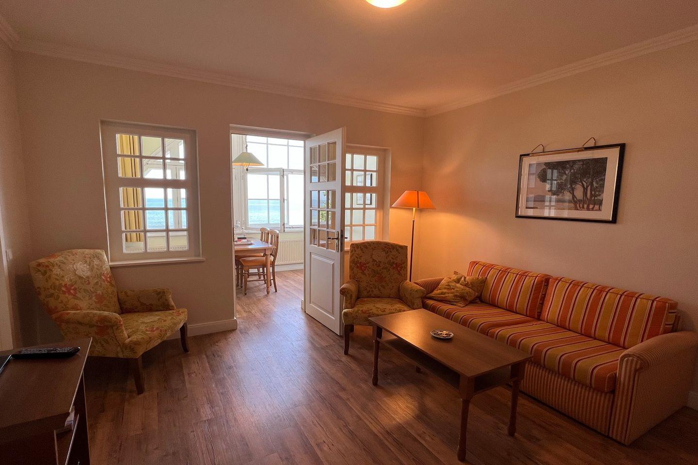 Das Apartment mit 3 Zimmern, 75 qm und zwei Wintergärten mit wunderschönem Meerblick auf die Ostsee bietet Platz für bis zu 6 Personen.