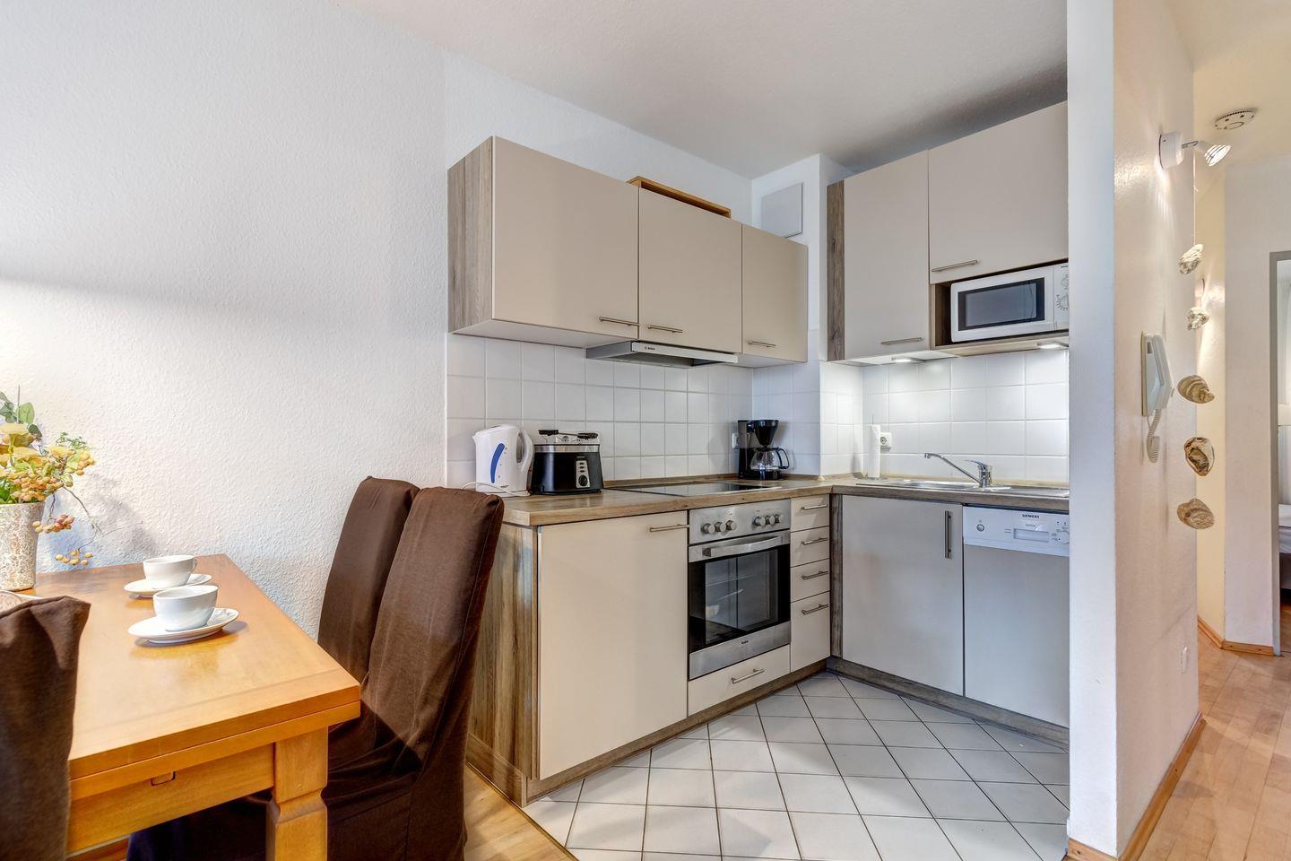 Durch die gut ausgestattete Küche im offenen Wohn-Ess-Bereich steht einer Selbstverpflegung nichts im Wege. Das Badezimmer ist mit einer Dusche und WC ausgestattet.