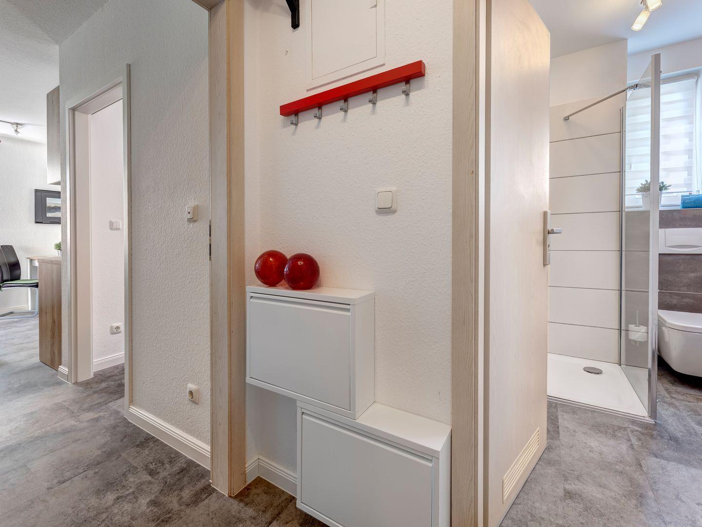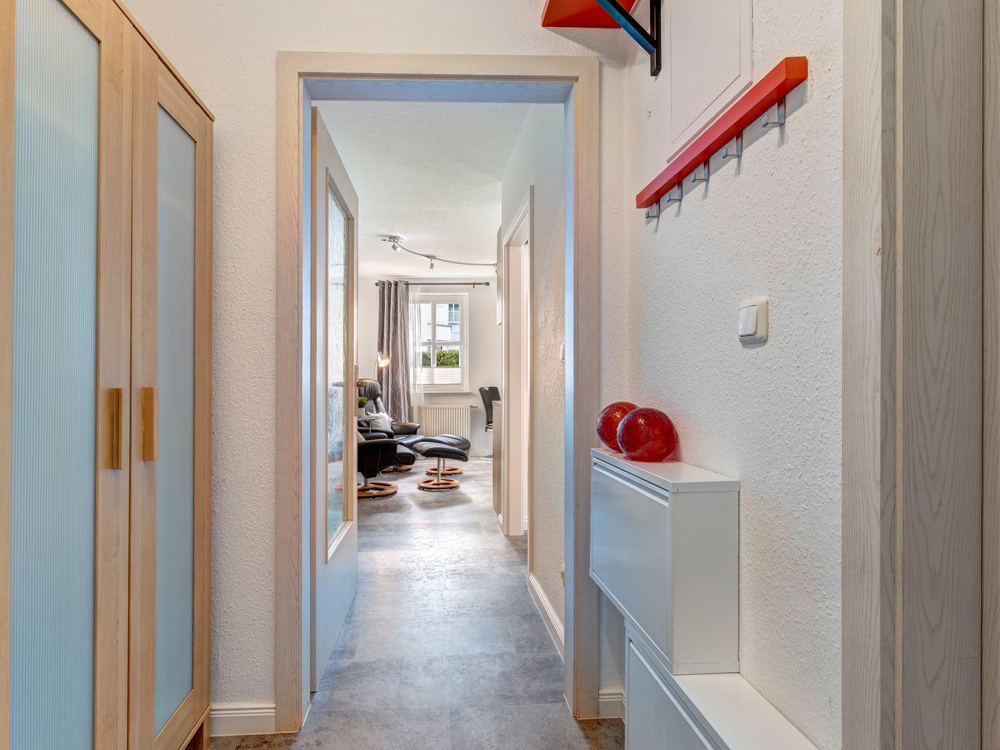 Zu der von Ihnen gemieteten Wohnung gehört ein Stellplatz in der Tiefgarage der Anlage. Über den Fahrstuhl erreichen Sie bequem alle Etage der Anlage. Die Anlage verfügt über einen für die 2. Reihe eingeschränkten Seeblick. Bis zum Strand sind es nur 50m. Der Strandabgang über die Bergstraße befindet sich unmittelbar vor dem Objekt.