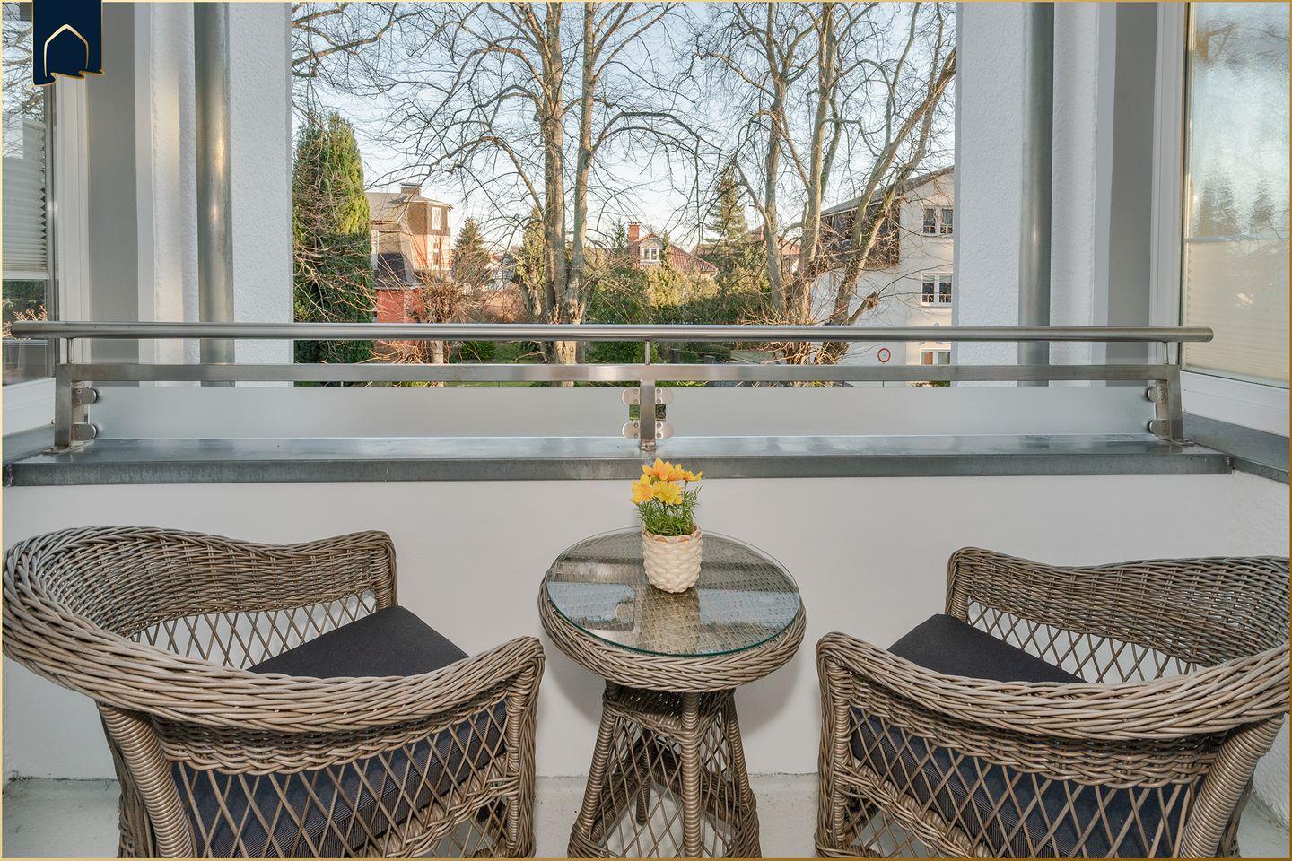 Die Wohnung verfügt über einen eigenen Balkon, der zum Entspannen einlädt und einen angenehmen Rückzugsort bietet. Alle Fenster sind mit Sichtschutz ausgestattet, was für Privatsphäre und ein angenehmes Wohngefühl sorgt.