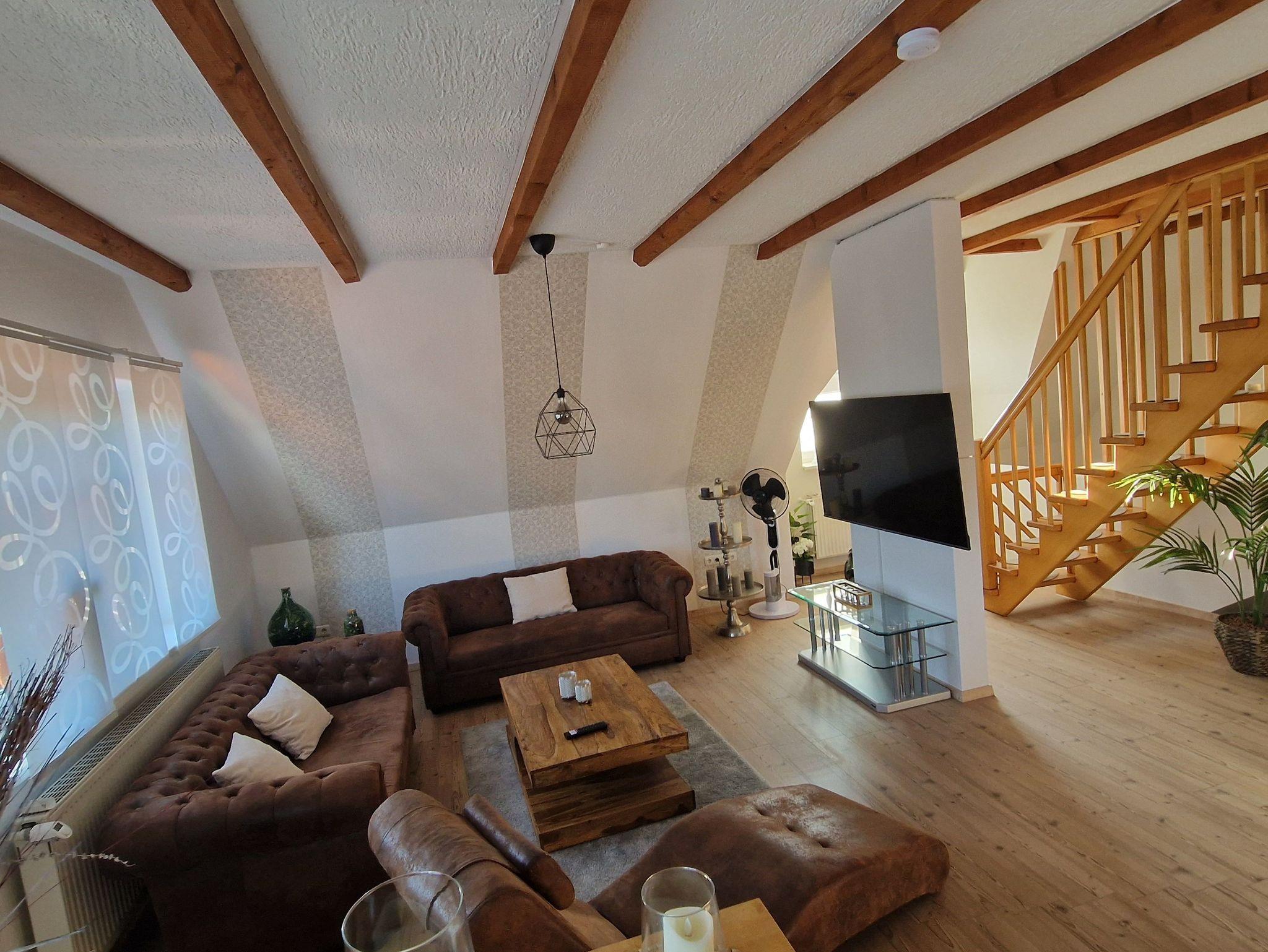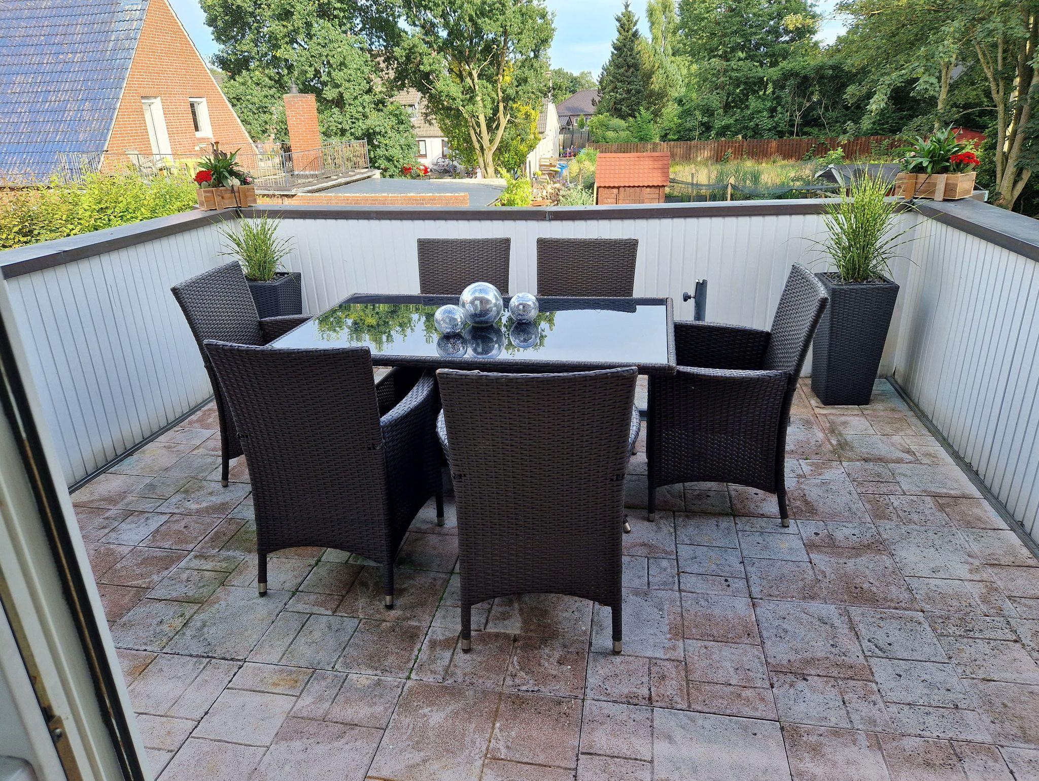 Die Ferienwohnung ist modern eingerichtet und voll ausgestattet. Auf 120qm finden bis 6 Personen eine gemütliche Unterkunft zum Wohlfühlen vor. Ein Babybett steht ebenfalls zur Verfügung. Der große Süd-Balkon lädt zum Verweilen ein. Bettwäsche, Handtücher und WLAN sind vorhanden.