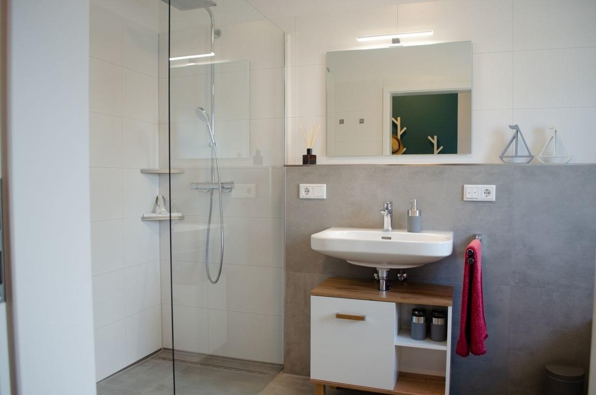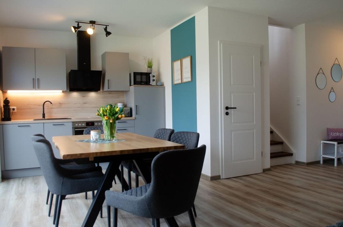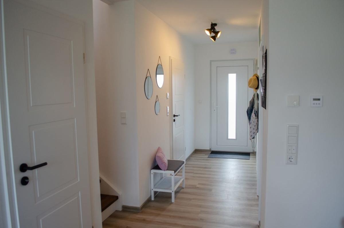 Unsere Ferienwohnung ist hochwertig und modern eingerichtet und bietet alle Annehmlichkeiten, die einen erholsamen Urlaub versprechen. So sind die dreifachverglasten Kunststofffenster mit elektrischen Außenjalousien versehen. Weitere Annehmlichkeiten sind Fußbodenheizung, Lüftungsanlage mit Wärmerückgewinnung, eine große Schiebetür im Wohnzimmer sowie weiße Innentüren. Weiterhin haben Sie in der gesamten Wohnung WLAN (Glasfaser).