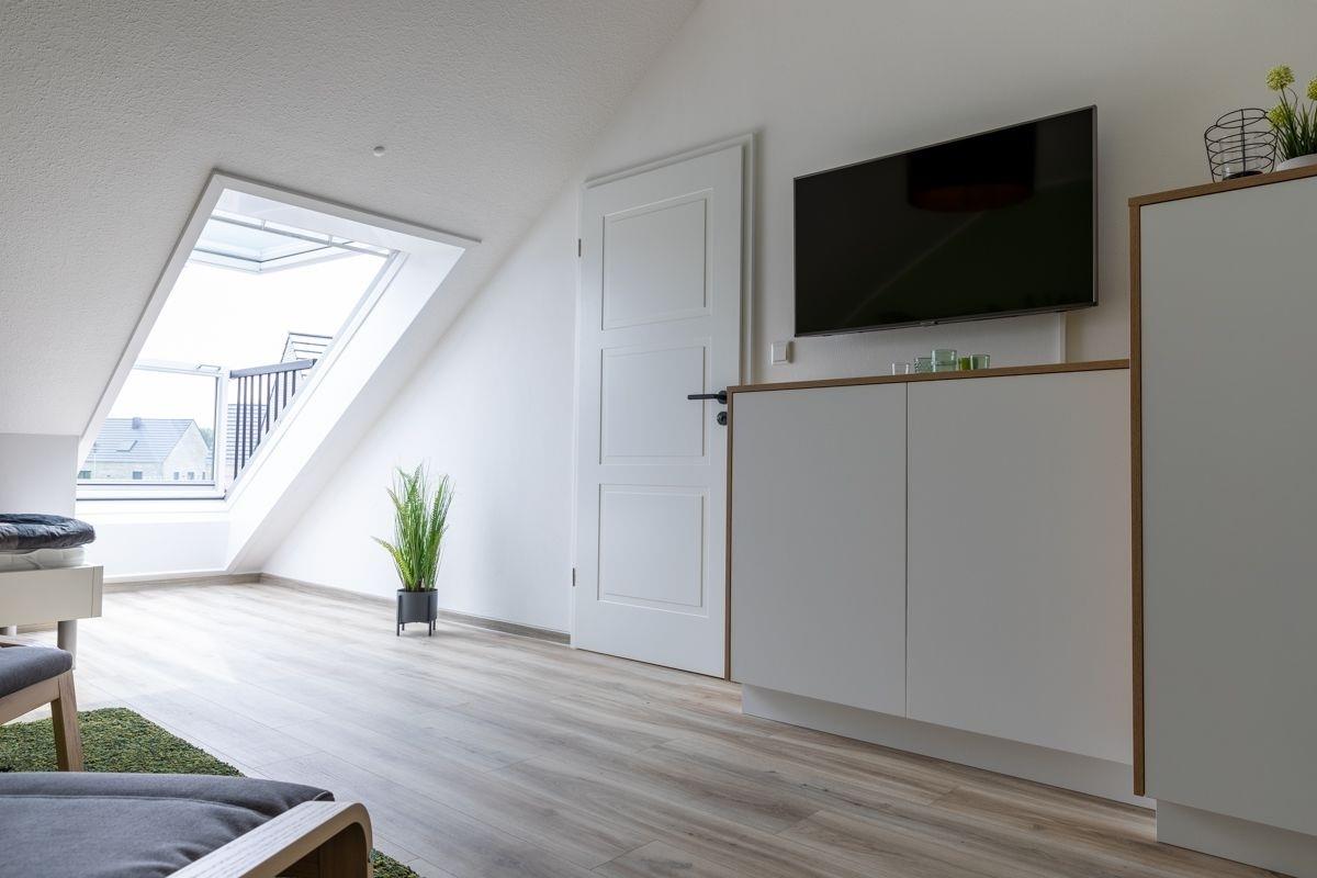 Die Wohnung bietet einen hellen, offenen Wohn- und Essbereich, zwei gemütliche Schlafzimmer mit TV, eine private Sauna und eine überdachte Terrasse mit Weber-Gasgrill - ideal zum Entspannen und Genießen.