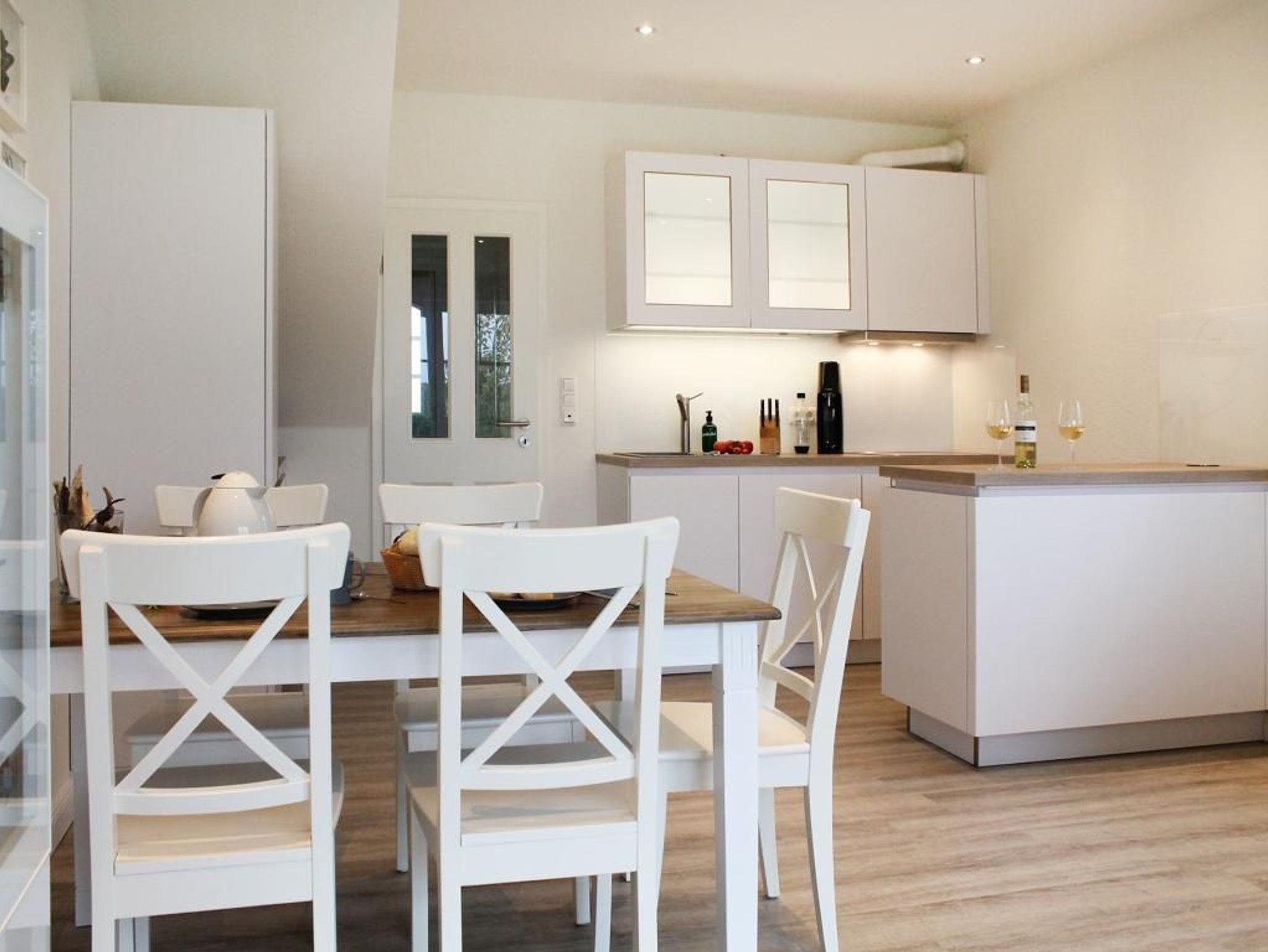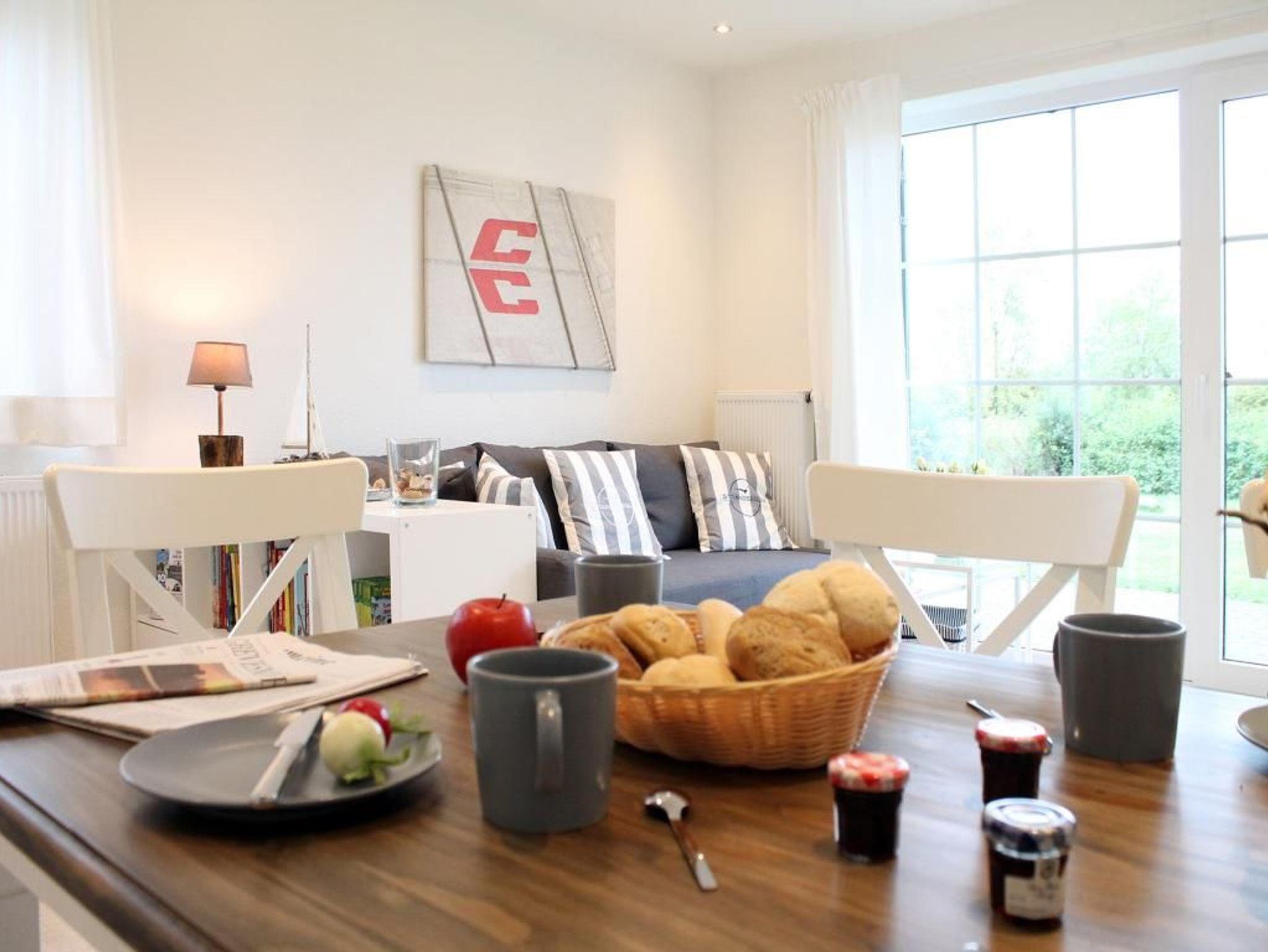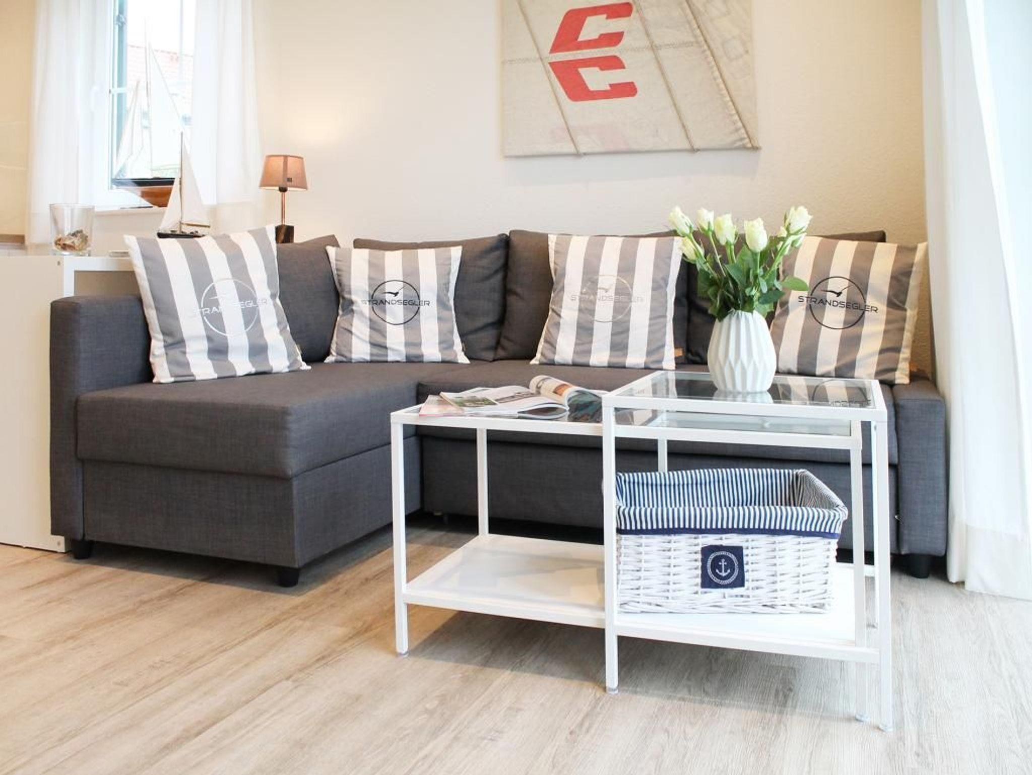 Auf einer großzügigen Wohnfläche von 70 qm empfängt Sie das charmant eingerichtete 3-Zimmer-Reihenendhaus - Strandsegler -mit hochwertiger Ausstattung, sonniger, saisonal möblierter Terrasse und eigenem Garten. In nur 500 Metern erreichen Sie den weitläufigen Naturstrand mit kleinen Badebuchten. Wohn- und Essbereich: Gemütliches Sofa, ausziehbar als Schlafgelegenheit für 2 Personen. Flachbildfernseher, Blu-ray-Player und Musikanlage mit Bluetooth-Funktion für Unterhaltung. Küche: In den Wohnbereich integrierte, sehr moderne Küchenzeile mit Induktionsherd, Backofen, Dunstabzug, Spülmaschine, Wasserkocher, Kaffeemaschine, Toaster und weiteren Annehmlichkeiten. Großer Esstisch für gemeinsame Mahlzeiten. Schlaf- und Badbereich: Zwei separate Schlafzimmer im oberen Geschoss, jeweils mit Doppelbett, Kleiderschrank oder Kommode. Tageslicht-Duschbad mit WC, Fön und Handtuchheizung. Zusätzliches Tageslicht-Gäste-WC sowie eine Waschmaschine auf der Wohnebene. Belegung und Ausstattung: Das familienfreundliche Haus ist für bis zu 6 Personen geeignet. Zwei kostenfreie PKW-Stellplätze stehen während Ihres Aufenthalts zur Verfügung. Im Außenbereich lädt eine sonnige Terrasse mit Gartennutzung zum Verweilen ein.