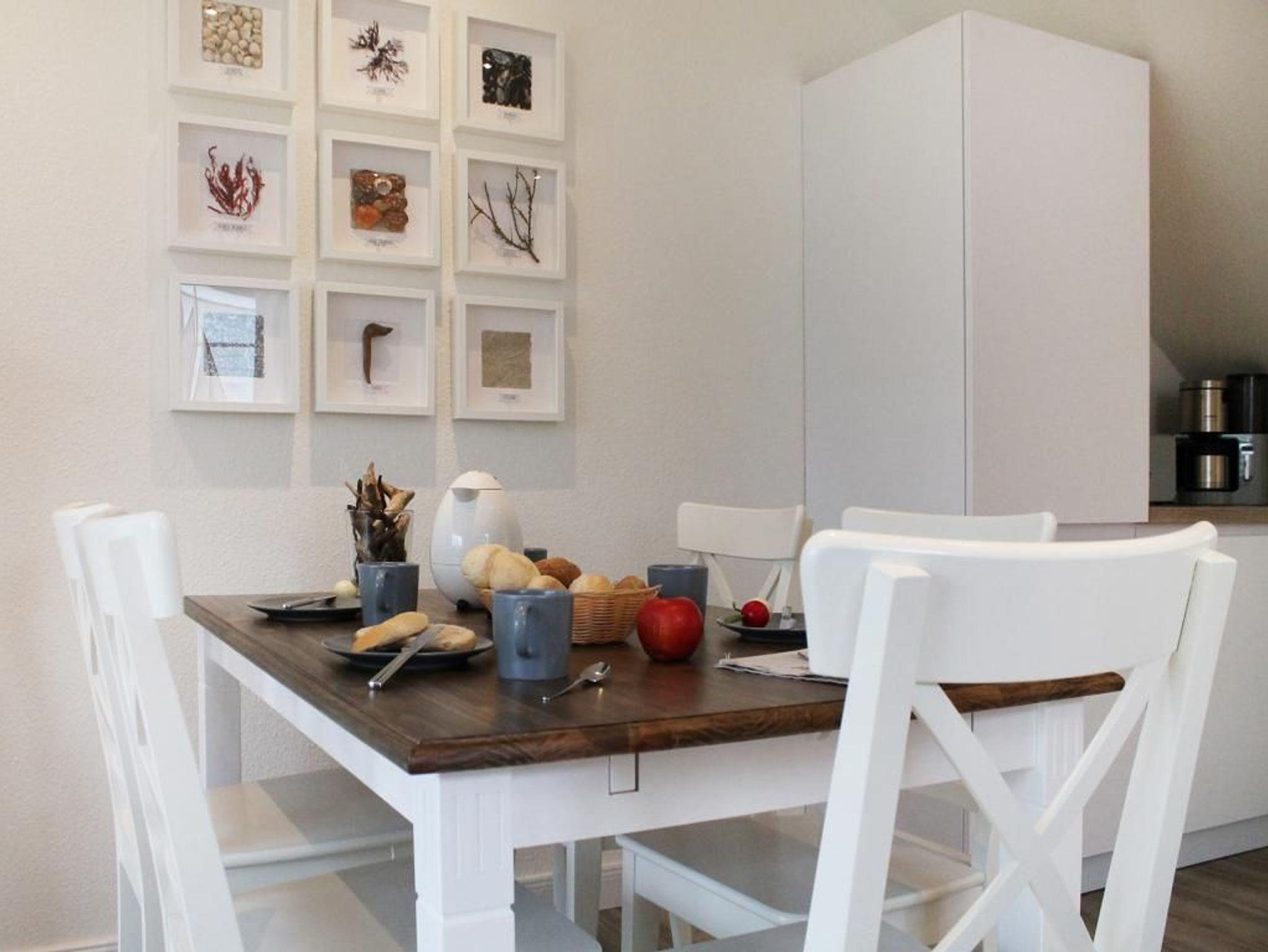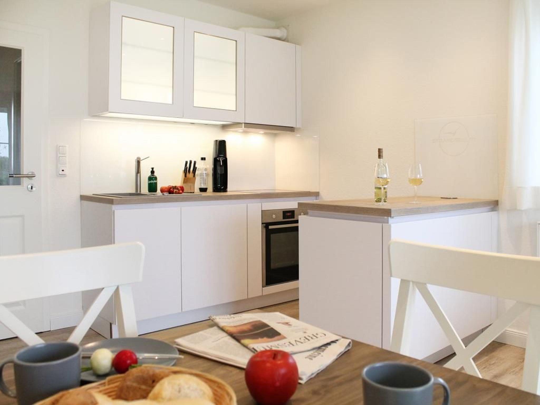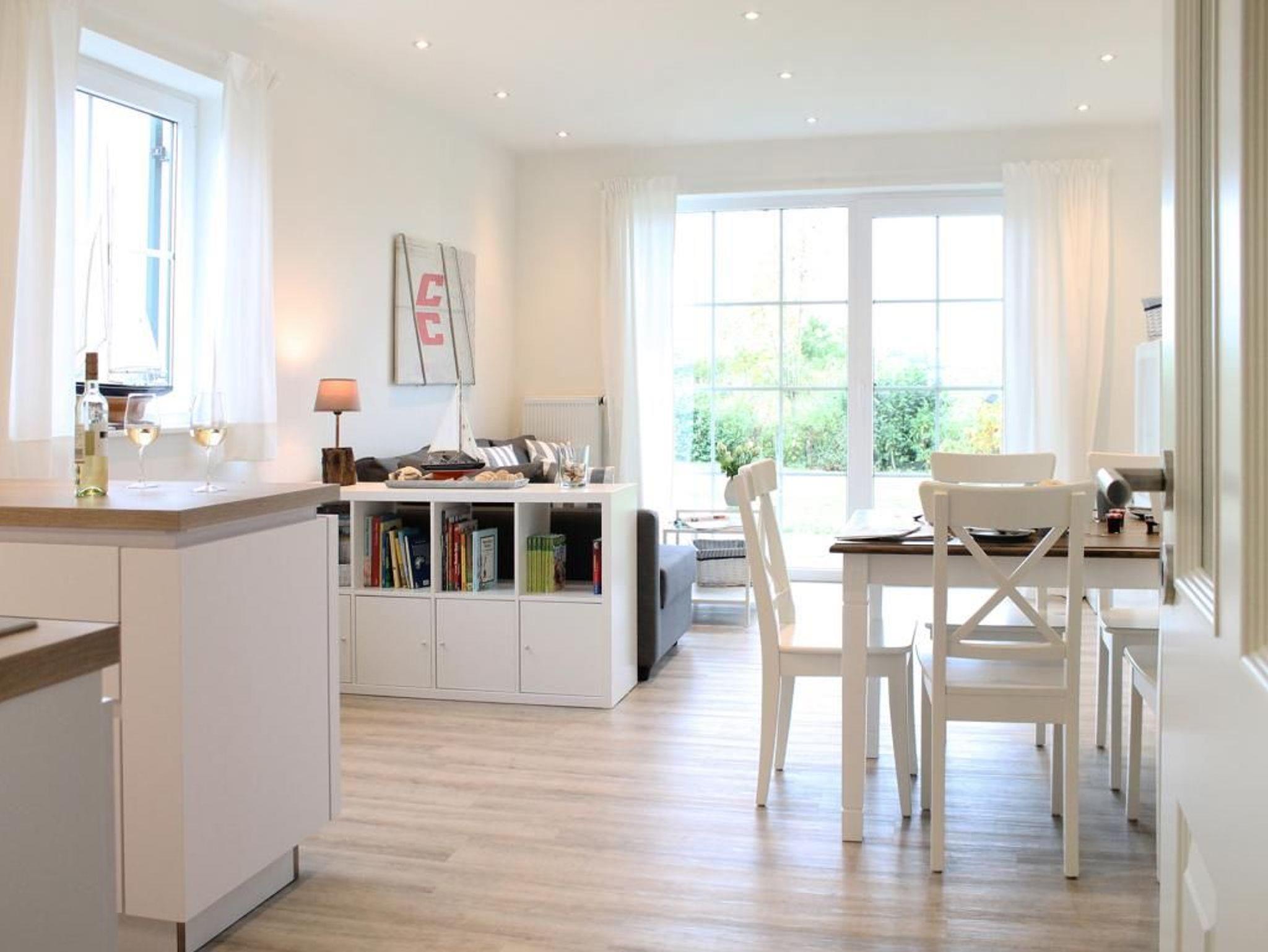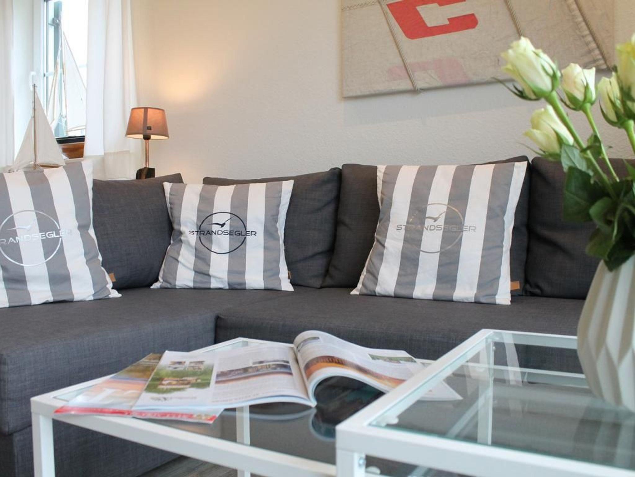 Auf einer großzügigen Wohnfläche von 70 qm empfängt Sie das charmant eingerichtete 3-Zimmer-Reihenendhaus - Strandsegler -mit hochwertiger Ausstattung, sonniger, saisonal möblierter Terrasse und eigenem Garten. In nur 500 Metern erreichen Sie den weitläufigen Naturstrand mit kleinen Badebuchten. Wohn- und Essbereich: Gemütliches Sofa, ausziehbar als Schlafgelegenheit für 2 Personen. Flachbildfernseher, Blu-ray-Player und Musikanlage mit Bluetooth-Funktion für Unterhaltung. Küche: In den Wohnbereich integrierte, sehr moderne Küchenzeile mit Induktionsherd, Backofen, Dunstabzug, Spülmaschine, Wasserkocher, Kaffeemaschine, Toaster und weiteren Annehmlichkeiten. Großer Esstisch für gemeinsame Mahlzeiten. Schlaf- und Badbereich: Zwei separate Schlafzimmer im oberen Geschoss, jeweils mit Doppelbett, Kleiderschrank oder Kommode. Tageslicht-Duschbad mit WC, Fön und Handtuchheizung. Zusätzliches Tageslicht-Gäste-WC sowie eine Waschmaschine auf der Wohnebene. Belegung und Ausstattung: Das familienfreundliche Haus ist für bis zu 6 Personen geeignet. Zwei kostenfreie PKW-Stellplätze stehen während Ihres Aufenthalts zur Verfügung. Im Außenbereich lädt eine sonnige Terrasse mit Gartennutzung zum Verweilen ein.