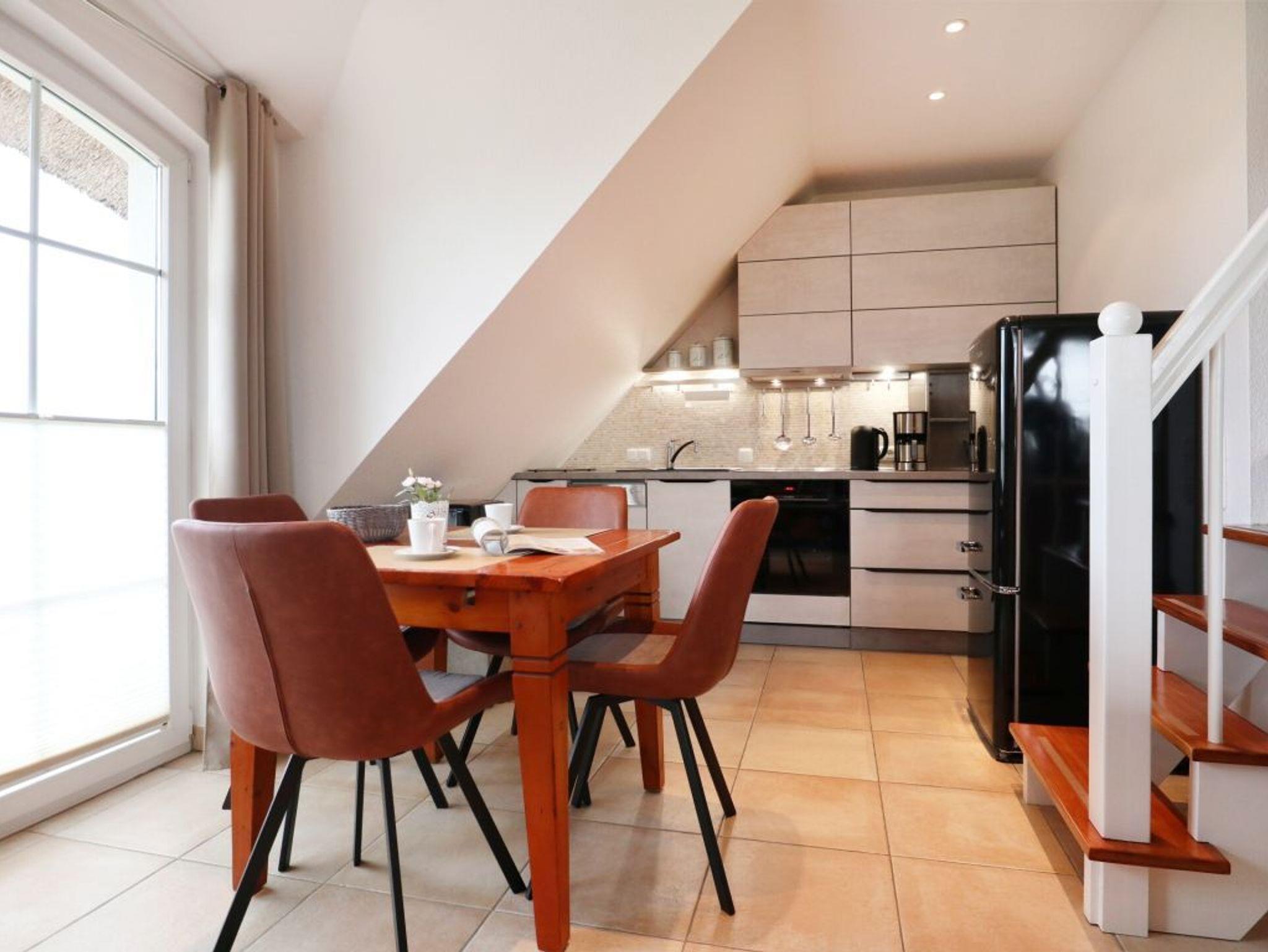 Das Ferienappartement befindet sich in der 1. Etage im wunderschönen Reetgedeckten 4- Familienhaus in Traumlagemit Blick auf die Lübecker Bucht. Der weiße Sandstrand liegt 800m vom Ferienhaus entfernt.