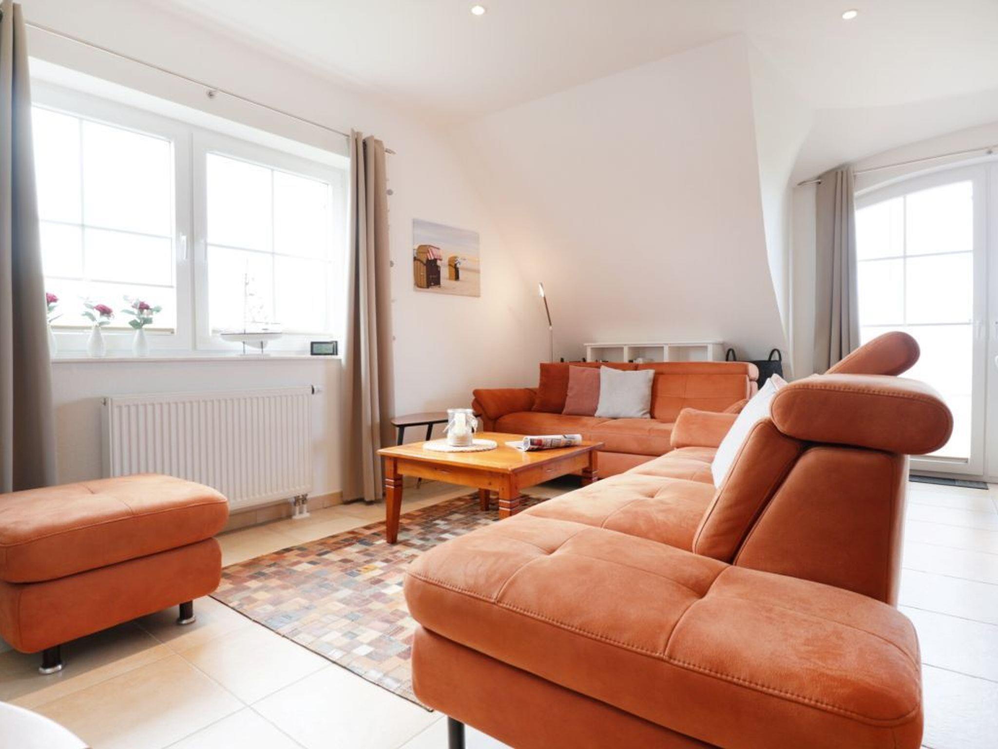 Die hochwertig ausgestattete Maisonette-Wohnung bietet mit ihren 65 qm genügend Platz für bis zu 4 Personen. Das Wohnzimmer mit Gas-Kaminofen, SAT-TV und integrierter Küche empfängt sie in auf 1. Ebene. Des Weiteren befinden sich dort ein Schlafzimmer, Badezimmer mit ebenerdiger Dusche und ein Abstellraum. Über eine Raumspartreppe gelangen sie zu dem weiteren Schlafzimmer auf der 2. Ebene, dass mit einem weiteren TV mit DVD und einer HiFi-Anlage ausgestattet ist. Ein Gäste-WC ist auf der Ebene vorhanden. Der Balkon der Wohnung in Süd-/ Westlage bietet Ihnen den ganzen Tag Sonne.