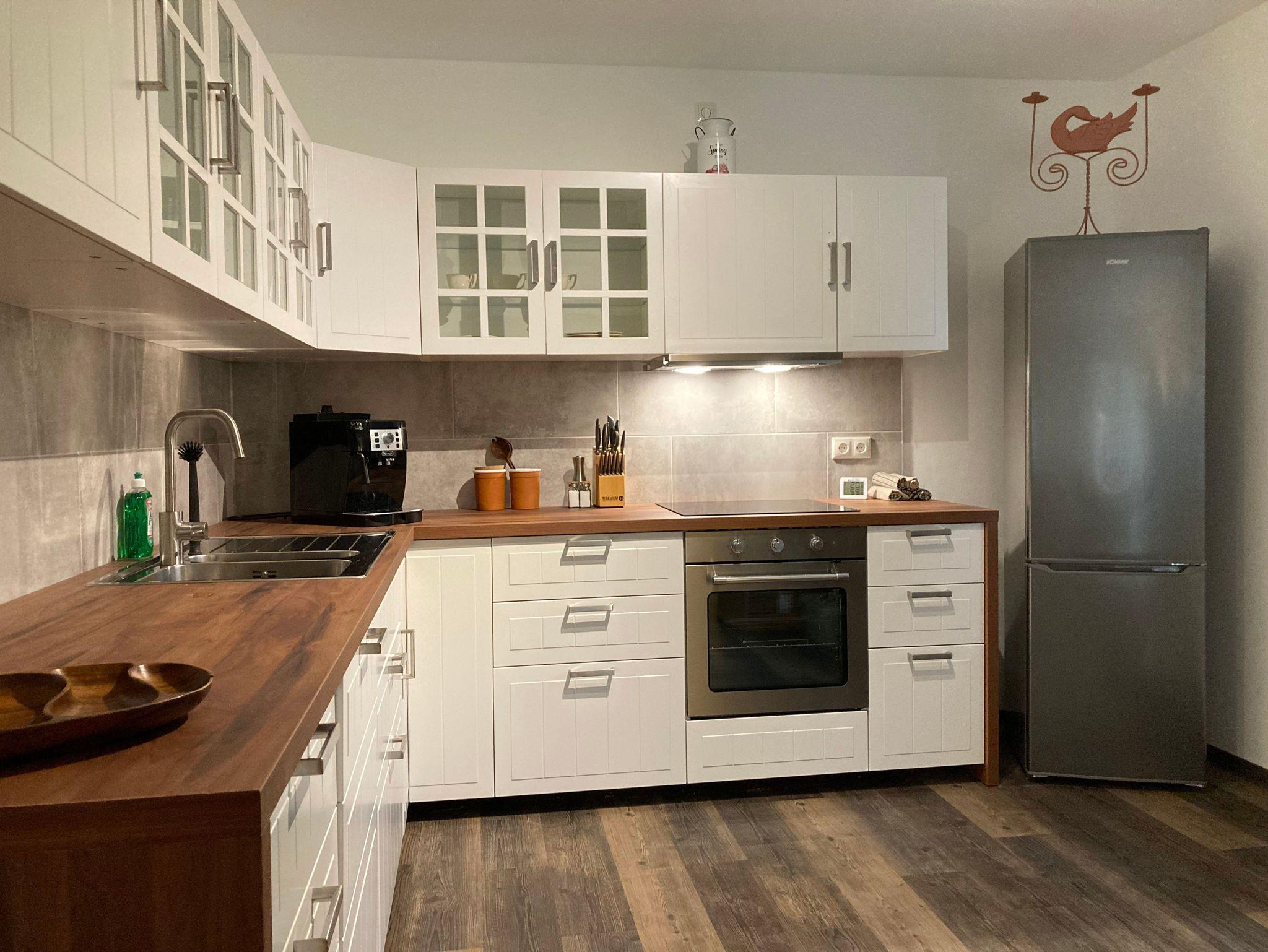 Das Haus hat 3 Schlafzimmer fur je 2 Personen, ein Badezimmer mit Dusche und Wanne, einen großzugigen Wohn- und Essbereich im Parterre und eine Gastetoilette. Auch liegt hinter dem Haus ein eigener Garten und daneben der Parkplatz in der Einfahrt.
