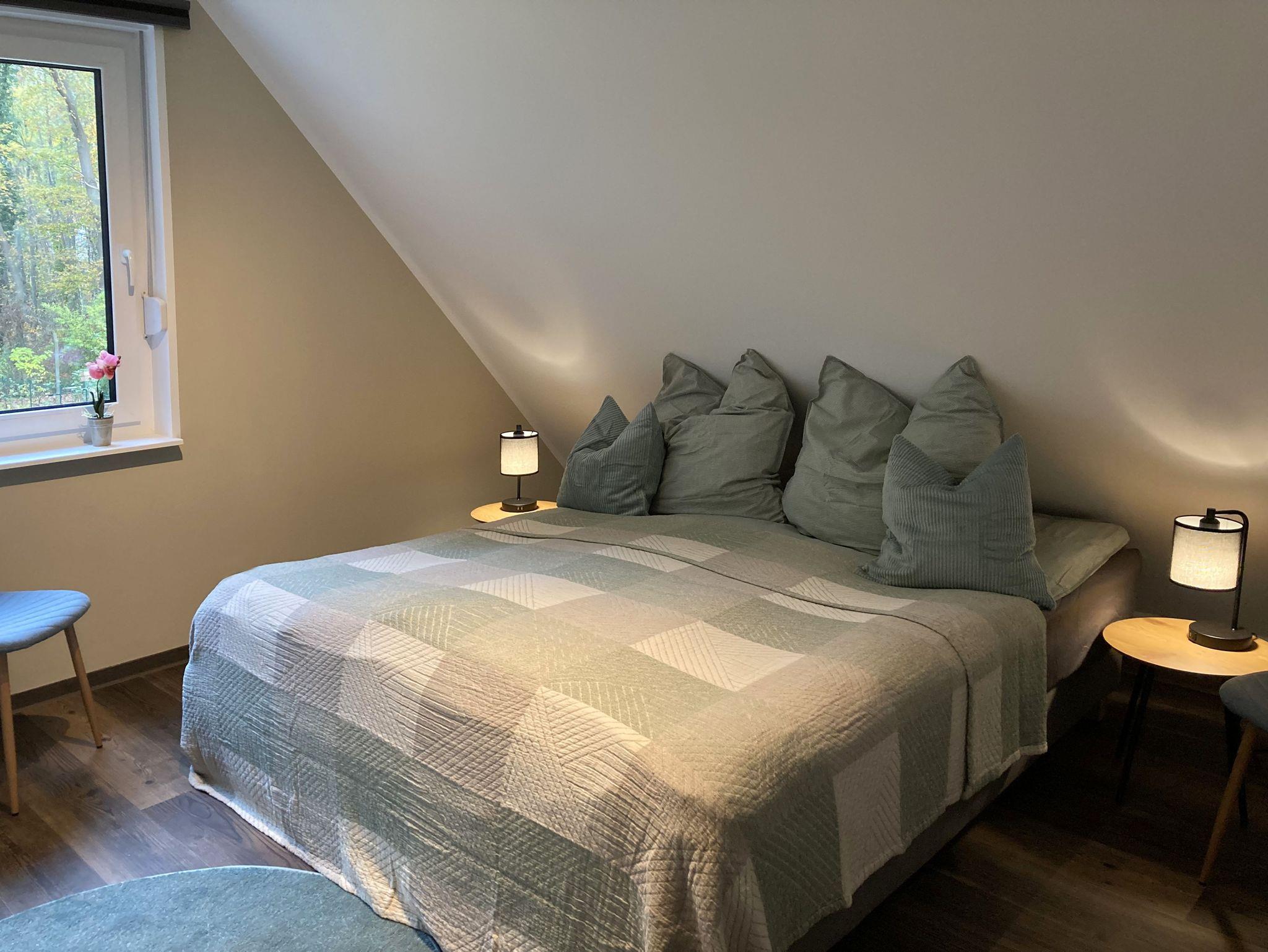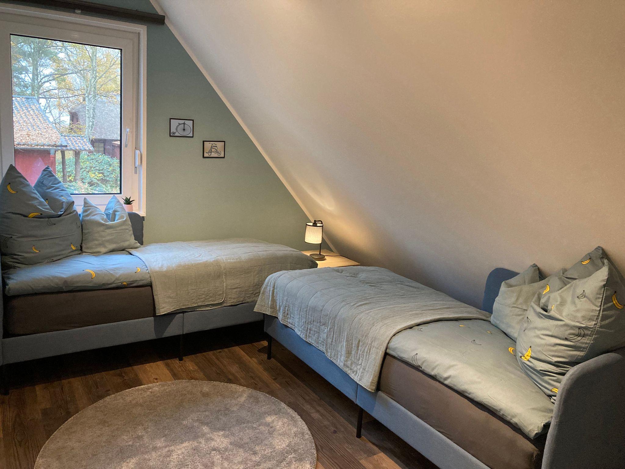 Das Haus hat 3 Schlafzimmer fu¨r je 2 Personen, ein Badezimmer mit Dusche und Wanne, einen großzu¨gigen Wohn- und Essbereich im Parterre und eine Ga¨stetoilette. Auch liegt hinter dem Haus ein eigener Garten und daneben der Parkplatz in der Einfahrt.