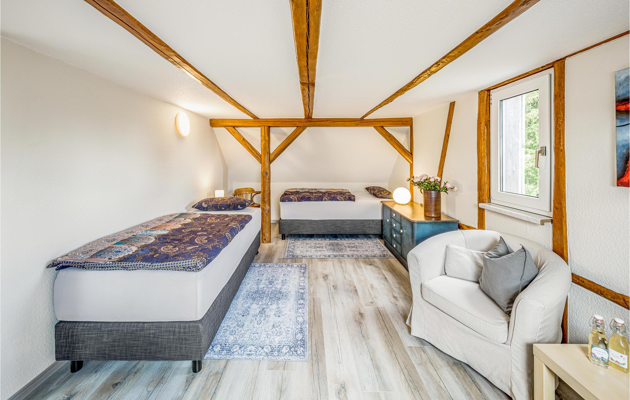 Velkommen til den stille landsby Barigau, hvor I kan nyde et afslappende ophold i dette karakterfulde hus, som har plads til den store familie, vennegrupper eller et firmaarrangement. De tre etager består af smagfulde lokaler, synligt bindingsværk og god indretning, der kommer gæster i alle aldre til gode. Nyd samværet i fællesrummene, sæt jer godt til rette på siddepladserne og glæd jer til spilleaftener, for der er et godt udvalg af brætspil på stedet.