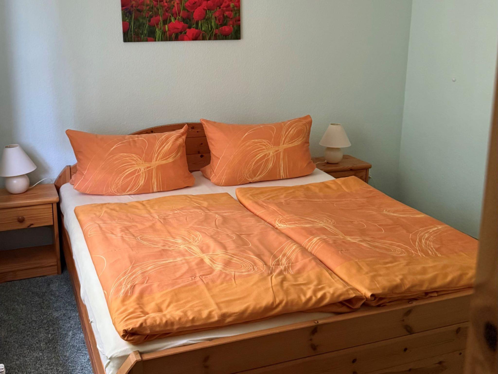 Die Ferienwohnung besteht aus einem großzügig angelegten Wohnraum, der zur komplett eingerichteten Küche offen ist, 2 getrennten Schlafräumen mit einem Doppelbett bzw. 2 Einzelbetten. Das Badezimmer ist mit Dusche und WC ausgestattet.